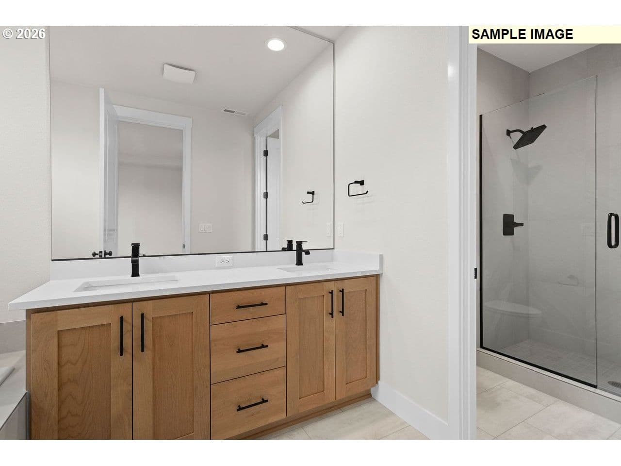 Move in ready, brilliantly crafted primary on main on an 8020sf lot! Builder incentives available! This home is on a large corner lot, across from protected green space. The 2096 Plan features a large vaulted open main floor with two car garage plus shop. Laundry, office/guest bedroom with full bath and open great room, and a primary suite complete the main level. The second floor layout has two bedrooms and a full bathroom. Standard features include a large kitchen island, gas range cooking, A/C, forced air heating, beautiful trim work, soaking tub in primary bathroom, 9 ft ceilings on main floor with 8 ft doors, 8 foot ceilings upstairs, covered back deck, fully fenced and landscaped yard with irrigation. Upgrades included: laminate flooring, gourmet kitchen layout, tile shower, quartz counters in kitchen and bathrooms, full tile backsplash, a gas fireplace, plus landscaping and irrigation in both front and backyard. Welcome home to Ramble Creek, a brand-new community in a pristine wooded setting with walking trails, parks, a playground, creek and tall trees, all within easy access to I-5 and I-205. Exterior Photos are of the actual home, interior are samples. Please come by for a tour, open daily 10-5! Check in at the Model Home located at 4519 NE 183rd Street Vancouver, WA 98686
