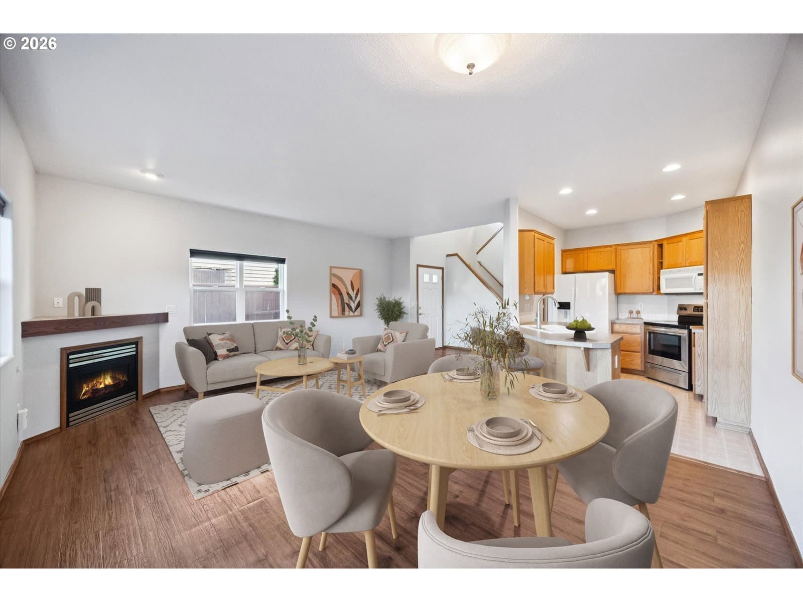 Easy proximity to Downtown Gladstone, Gladstone schools, newer HVAC & roof, quiet culdesac, 2 car garage, and an ideal floor plan & ensuite - this one has it all! The open living, dining, and kitchen sweep you into the main level before flowing easily onto the fully fenced backyard patio, perfect for outdoor evening meals. Upstairs features 3 BD and 2 BA, including an expansive primary suite with vaulted ceilings, an attached bathroom, and a walk-in closet. Fully move-in ready with a 5 year old furnace, 2 year old central AC, fresh interior paint, and 4 year old roof across the complex. With a Walkscore of 73 and a Bikescore of 82, this location lets you make Gladstone your own private enclave, and the 2 car garage and full driveway mean you'll always have space for vehicles if you need to make a longer trip. Detached home living at condo prices!