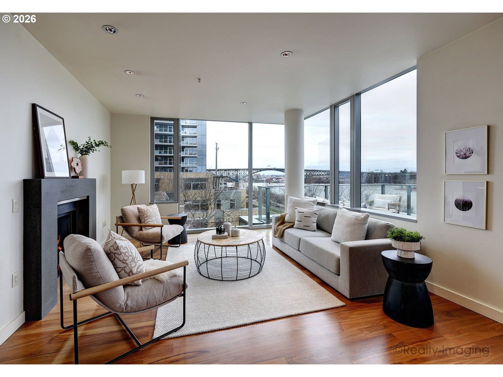 Walk into this premier luxury residence in South Waterfront and be immediately captivated by light-filled, voluminous spaces and stunning, uninterrupted river views. Floor-to-ceiling windows on the east, north, and west bathe the home in natural light from sunrise to sunset—while moonrises over the river add unforgettable evening drama.From the expansive riverfront terrace, enjoy sweeping views of Ross Island and Mt. St. Helens framed by the Ross Island Bridge. Watch birds in flight, children playing in the park, runners and cyclists along the river path, boats and paddlers below—and each dusk, the flocks of crows heading north. This home offers lifestyle moments from every room. The gracious floor plan includes a serene primary suite with a custom walk-in closet, a versatile second bedroom with a wall bed and built-in workspace, and a separate utility room with extensive custom storage.Waterfront amenities enrich daily life: a seasonal Farmers Market, parks, restaurants, riverfront walking and biking paths, and the streetcar with easy connections to MAX. Nearby OHSU facilities include doctors’ offices, a fitness center, and the Tram to the main hospital campus. Atwater Place—Portland’s Gold LEED–certified, highly regarded building—offers exceptional management, 24-hour concierge and security, beautiful grounds with a reflection pool, a Bocce Ball court, bike storage, and a vibrant community with social events and off-campus excursions.I love living here—and you will too.