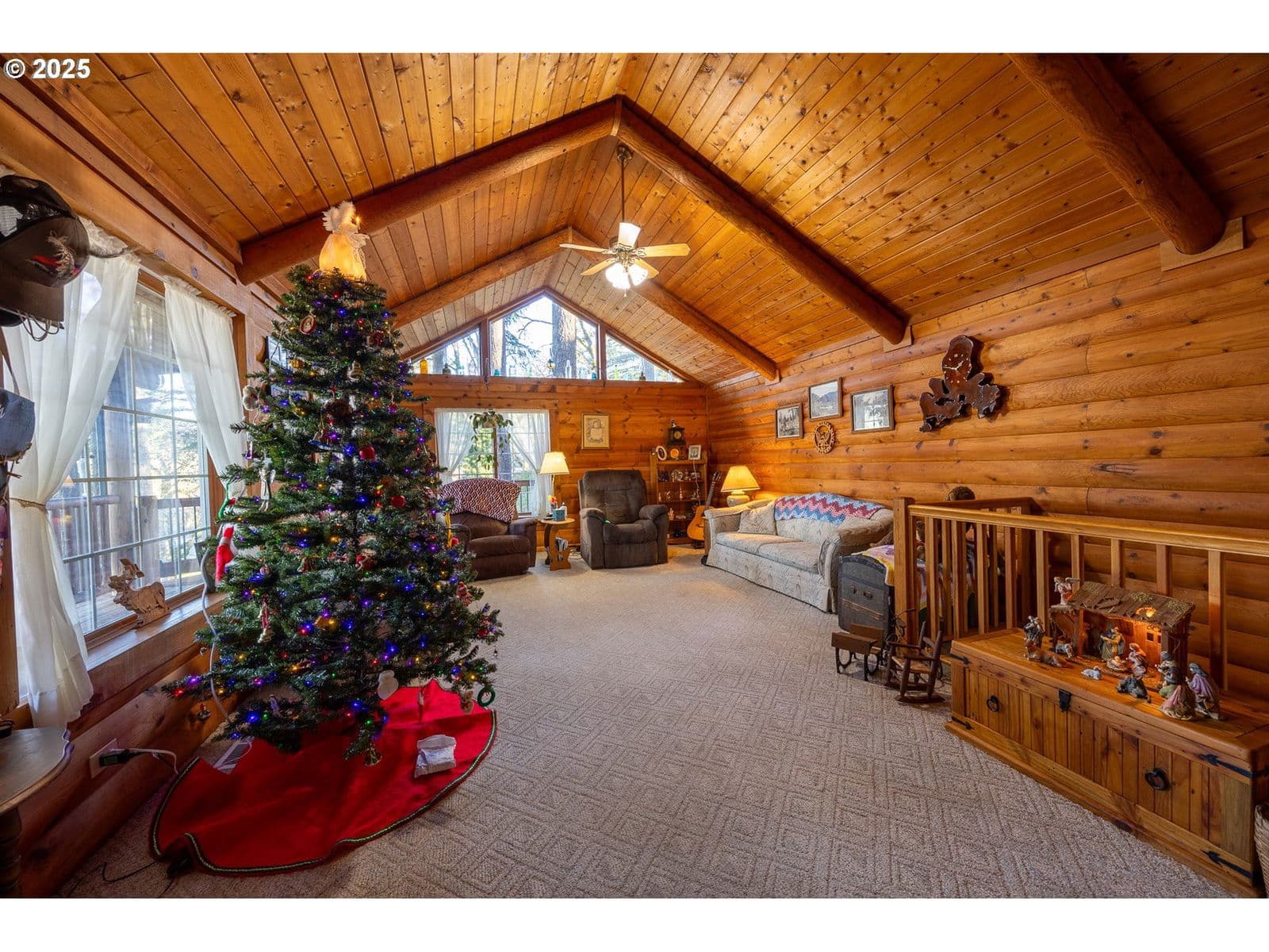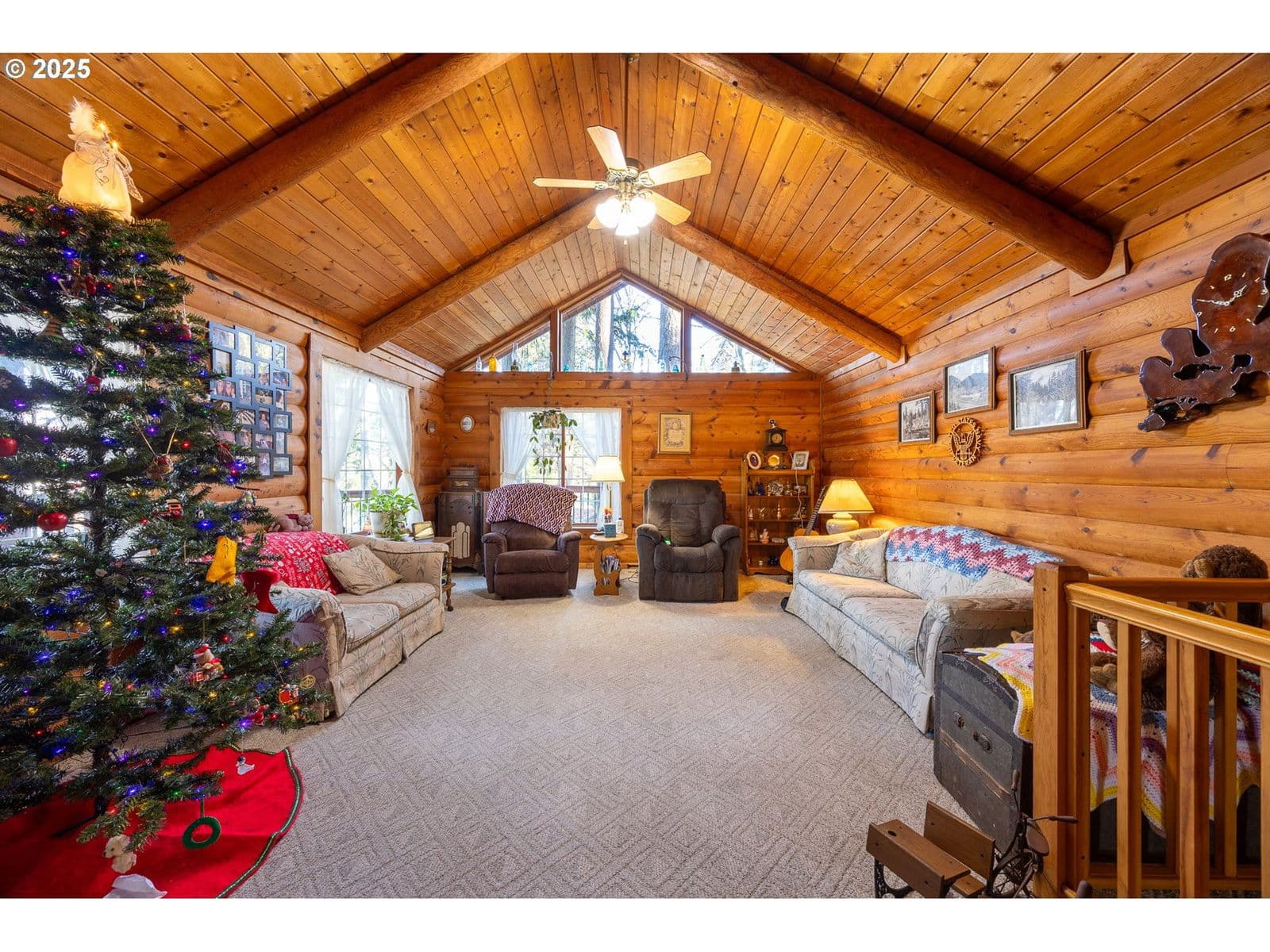 Escape to your own woodland sanctuary with this charming log cabin nestled among beautiful mature trees in the heart of Glide. Warm, inviting, and full of rustic character, this home blends classic cabin charm with modern comfort. Step inside to soaring vaulted ceilings and an open living area that feels both spacious and cozy. An efficient heat pump keeps the home comfortable year-round, while natural wood accents create the perfect mountain-cabin atmosphere. The finished basement offers incredible versatility with its full bath and separate exterior entrance—ideal for a guest suite, private studio, home office, or additional bedroom. Second lot featuring a 2,440 sq. ft. workshop can also be included, see MLS# perfect for hobbies, storage, or business use. With plenty of space to build a second home or create expansive RV parking, the possibilities are endless. Whether you're seeking a peaceful full-time residence, a vacation retreat, or a property with room to grow, this Glide log cabin delivers the perfect blend of comfort, nature, and potential.
