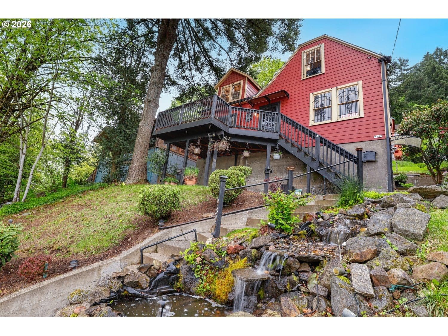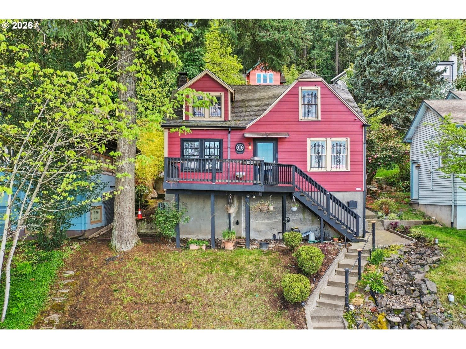 Set at the base of Forest Park, this classic home sits just blocks from several trailheads. Offering mountain views and overlooking the Willamette River. The three-level layout provides flexible living options, including a lower-level family room with its own exterior entrance. There are three true bedrooms, plus a non-conforming fourth for additional sleeping space. Upstairs, a bonus area is ideal for an office, workout space, or relaxing while taking in river and mountain views. Outside, enjoy the covered deck with privacy curtains, an outdoor fireplace, and a cascading water feature. OPEN Saturday, 4/25, 11-1 [Home Energy Score = 3. HES Report at https://rpt.greenbuildingregistry.com/hes/OR10246502]