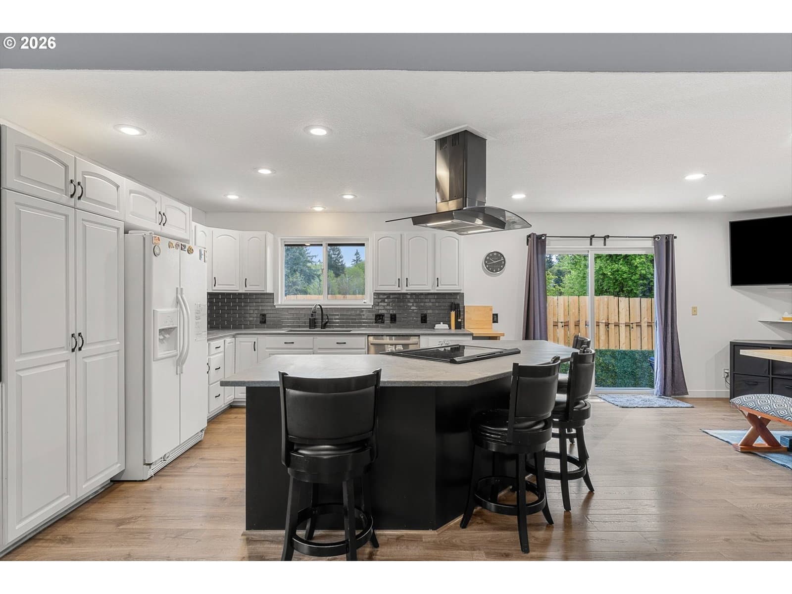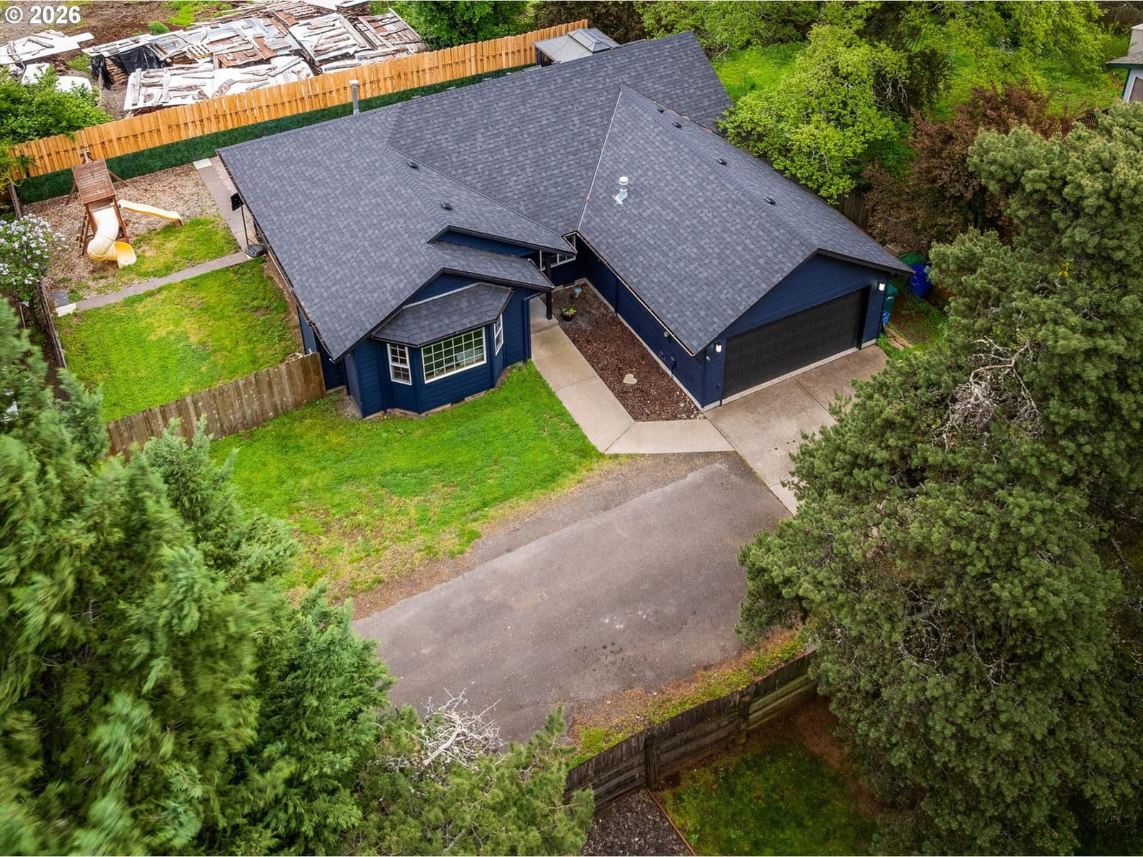 Tucked down a private drive, this beautifully updated Milwaukie home has everything you’ve been waiting for. This one-story home checks all the boxes with 3 bedrooms, 2 bathrooms, an open concept living area, a 2-car garage, and a large yard for entertaining. The living area boasts vaulted ceilings and a gas fireplace- perfect for those cozy nights in. Entertaining is a breeze with the open-concept kitchen and dining area that leads out to the large patio and yard. The backyard includes a beautiful stamped concrete patio, Trex-covered patio stairs, grass, and a play structure. The one-level layout makes daily living easy. Seamlessly move from the garage into your mud/laundry room, into your hallway, to the bedrooms. The primary bedroom faces the quiet backyard with an ensuite bathroom and access to the back patio. Updates include a new roof and water heater in 2024, a kitchen remodel and LVT flooring in 2020, Fresh exterior paint and patio in 2022, and back fence in 2026. The hot tub does not convey with the home, but the seller will leave the patio cover.