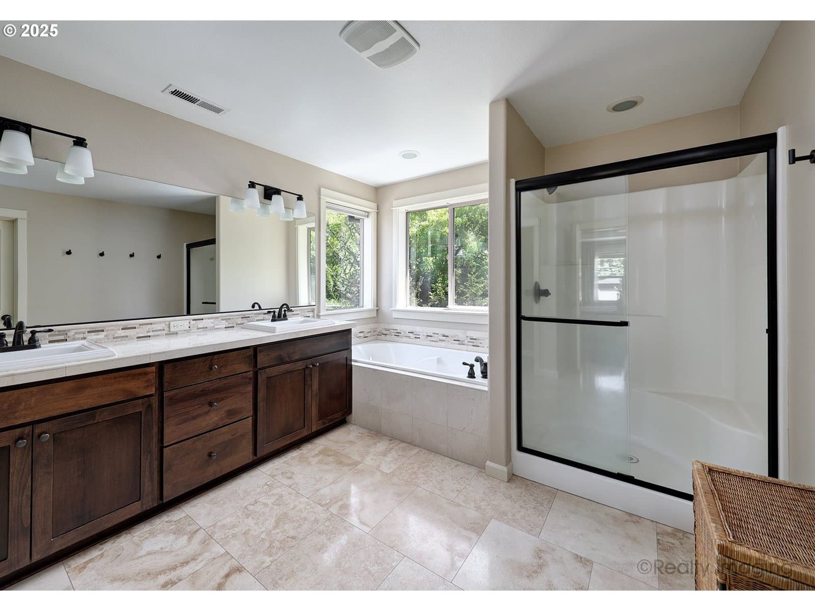 Classic Modern Craftsman in sought after West Haven. Highly rated TV Elementary & the NEW Beaverton High School opening in the Fall. Brand new 95% efficient gas furnace. Warm & welcoming open main level with wall of windows looking out to covered patio & tidy, chill yard. The darling mud room brings you right into the kitchen with it's new refrigerator & new dishwasher, ample counters, gas cooktop island, pop up downdraft, built in oven & microwave, to round out the stainless steel appliances. Formal Dining Room. Living Room with the classic looks of fireplace(gas) & builtins. Engineered hardwoods throughout main floor, stairs, primary bedroom & spacious upper landing area. Primary suite with soaking tub, double sinks, shower & huge walk-in closet. Laundry room upstairs. All appliances included. Gently lived in & recently updated in 2024 with new carpet in 2 bedrooms & primary closet. New gym flooring in 3rd bedroom. New paint & lighting fixtures in all bedrooms & primary bath/closet. Tile in mudroom. New hardscape patio & BBQ pad 2025. Established yard spaces like raised beds, an herb garden & blueberry bushes. Air Conditioning, Central Vacuum & Tankless hot water heater. Good sized, two car garage has nifty ceiling mount storage racks. Just down the street from the Little Store. Easy commute in any direction, with quick access to HWY 26, HWY 217 or jump on public transit. MAX Stop is just 0.5 miles away with a TRIMET stop only 0.2 miles away. Just hop downtown, over to NW, or hit one of the many trails at Forest Park. Mitchell park is just blocks away, with over 5 acres of ball fields, courts & playgrounds.