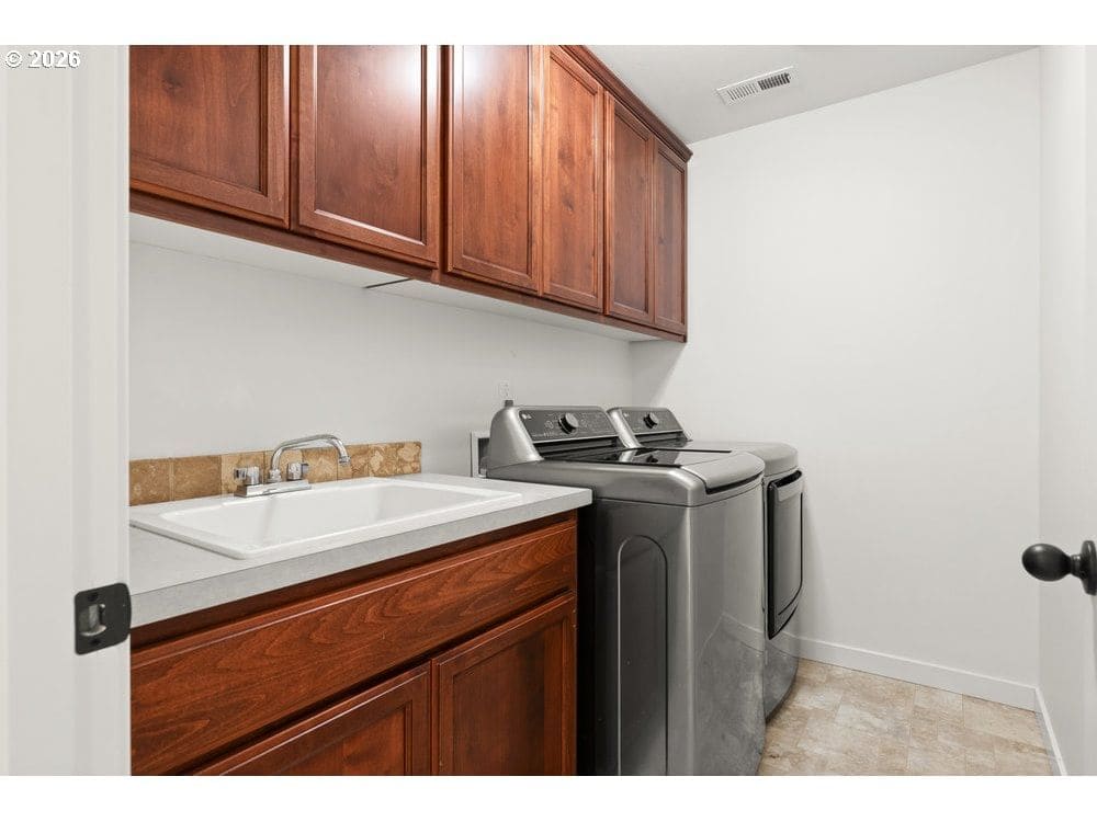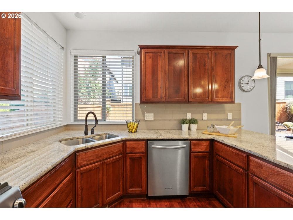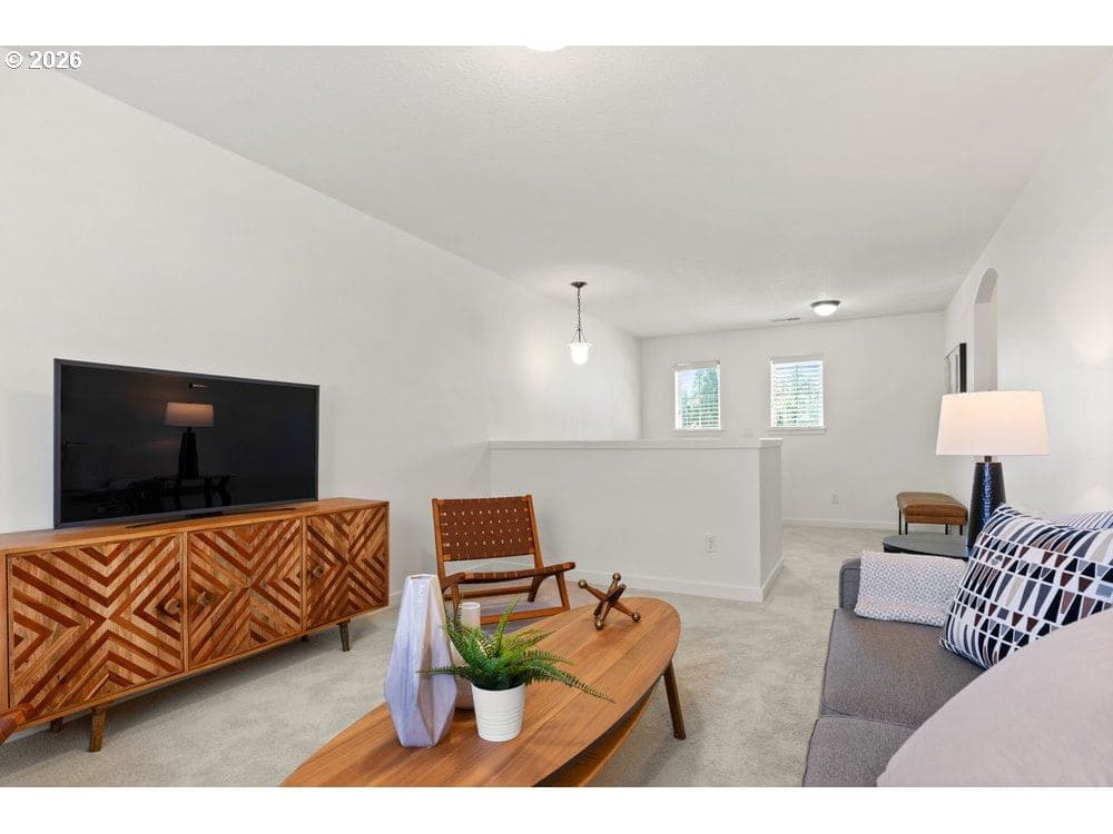 Modern design, thoughtful layout, and unbeatable location come together at 13543 SE Almond Drive. This 4-bedroom, 3-bath home offers over 2,500 sq ft of versatile living space, complete with standout features like a third full bathroom and 612 sq ft of dedicated garage storage. The open-concept main floor features a spacious living area, dining room, and a well-appointed kitchen with stainless steel appliances, a large island, and ample storage. A full bathroom and bedroom on the main level create the perfect setup for guests, remote work, or multigenerational living.The home has been freshly painted throughout, and the three upstairs bedrooms feature brand-new flooring. The light-filled primary suite includes a walk-in closet and en suite bath, while a third full bathroom, laundry room, and bonus loft provide flexibility for any lifestyle.The backyard offers a flat lawn, raised garden beds, and direct access to green space through a private gate—ideal for play, pets, or relaxing outdoors. The oversized garage delivers rare additional storage or workshop potential, with 612 sq ft of space not included in the main square footage.Located on the same street as Pfiefer Park and just two blocks from Rock Creek Middle School and Clackamas High School, this home also offers unbeatable access to local dining, shopping, and the seasonal farmers market—all just minutes away. A perfect blend of comfort, functionality, and convenience in one of Clackamas’ most desirable neighborhoods.