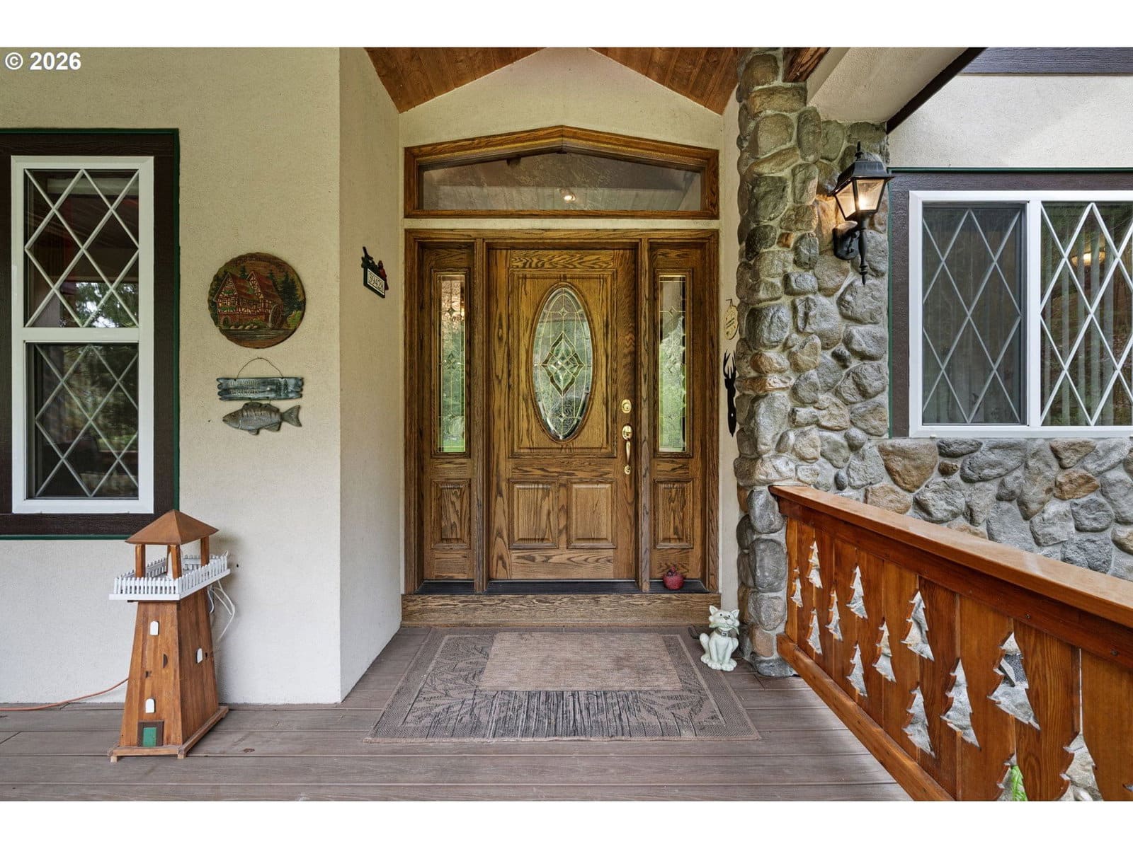 River front custom home featuring large river rock fireplace, hardwood floors,100 year roof that is only 2 years old, covered porch, large covered back deck with built in hot tub, underground sprinklers, and whole home generator. Home sits high enough to not require flood insurance. Only two homes on this private island. This is a rare find.
