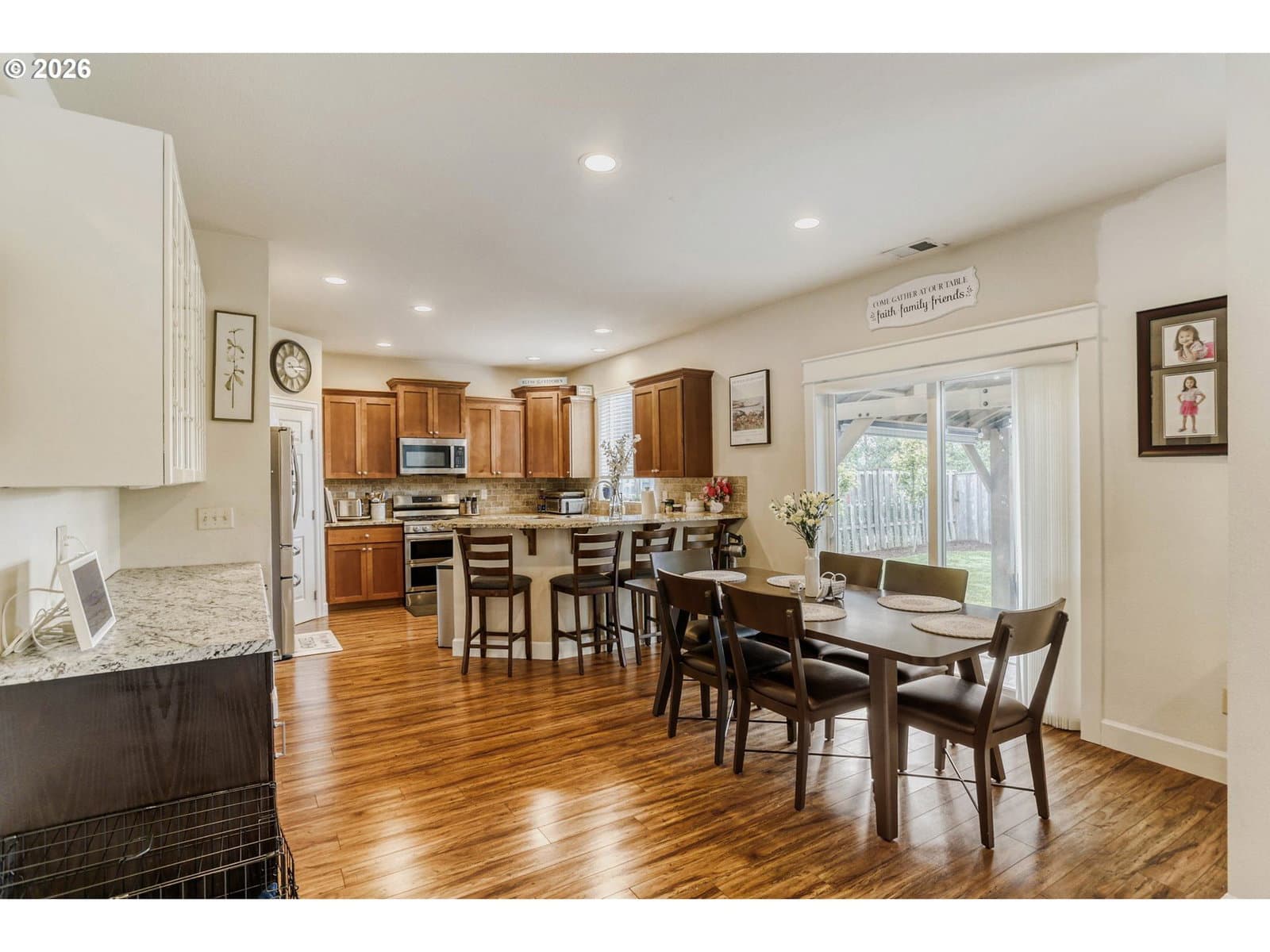 4days on marketWelcome to this 5-bedroom, 3-bath home in the highly sought-after Windswept Water of Damascus. This 2,279 sq ft residence offers comfortable living with modern touches and excellent energy efficiency. The bright open-concept layout features a spacious kitchen with island and breakfast area, Ideal for meals and entertaining. Adjacent family and living rooms — also known as the great room — provide flexible gathering spaces with natural light. A dedicated laundry room adds convenience. Upstairs you will find a generous primary suite with private en-suite bathroom and walk-in closet, plus four additional bedrooms with ample space for family, guests, or a home office. A convenient tech niche provides a dedicated workspace area. The home includes a welcoming foyer. Lower utility bills are supported by the owned solar panel system with battery back (10.5 KW panels,3 power walls, auto failure in power outage) up installed in 2021 Outside, the property offers strong curb appeal with a fully fenced backyard, charming gazebo, and patio-perfect for relaxing or entertaining. Enjoy peaceful views toward the Clackamas River. The neighborhood provides excellent amenities including a common space playground, basketball court, fenced dog park, scenic walking trails, and community paths. Easy access to parks, outdoor recreation, and commuting routes. This home combines modern comfort, energy efficiency, and family-friendly outdoor living. Schedule your private showing today!