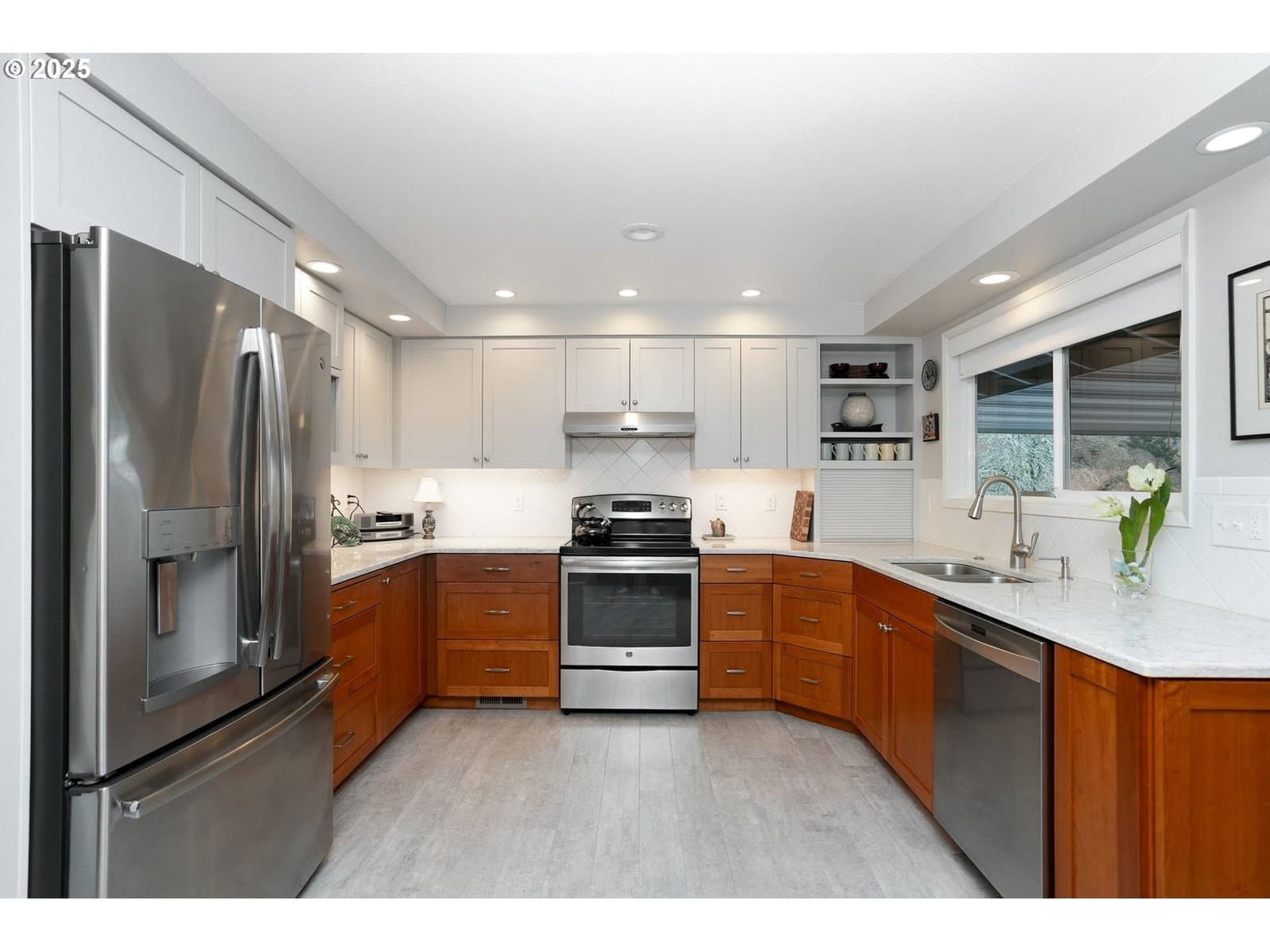 The morning sun greets your day through large east facing windows highlighted by Cascade silhouettes. Spacious single level living is enhanced with ample flexible living spaces downstairs for a total of 3-4 bedrooms based on your needs and interpretation. Meticulously maintained & generously updated, this rare mid-century home is move-in ready & situated in a coveted & peaceful neighborhood. The comfortable downstairs family room with fireplace & kitchenette has been used as a popular rental with its own exterior entrance and deck. Welcome Home!