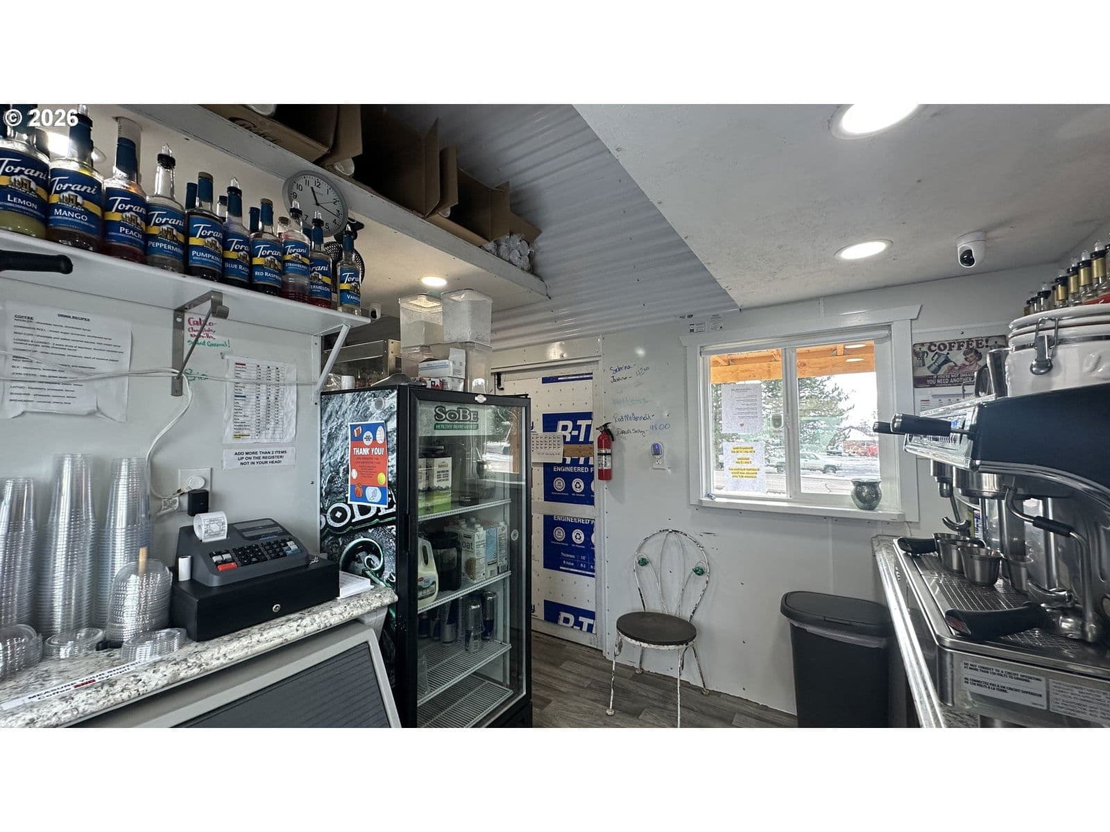 36days on marketTurnkey drive-thru coffee stand with highway frontage in Condon! Built in 2024, this fully equipped commercial property sits on a 0.33-acre lot with city utilities, dedicated parking, and professional landscaping. The 282 sq ft structure is designed for efficient operation and includes equipment and inventory, offering a ready-to-operate opportunity for an owner-operator or entrepreneur. Currently operating limited hours (6am–2pm), providing potential for expanded revenue with extended hours or menu offerings. Fee simple ownership – land and building included. Rare small-town commercial opportunity with high visibility and established customer base.