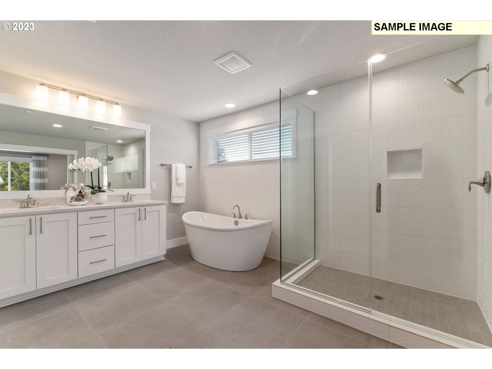 Greenspace Lot - CAMAS SCHOOL DISTRICT, community pool/clubhouse. The 2928 plan is one of our largest homes and most popular floorplans: 4 bedrooms, 3 baths, featuring a main floor guest suite w/ full bath and formal dining room. The open kitchen includes 3cm slab quartz, stainless farm sink, gas gourmet kitchen pkg. and Alder cabinetry. Large great room with gas fireplace and has access to the large covered patio. The second floor boasts a spacious bonus room, two bedrooms, laundry room and primary suite. The primary bath suite offers a free standing soak tub, dual sink vanity, tiled walk in shower and two Walk-in closets. Front & rear yard landscaping, irrigation and stained fence included! Conveniently located: downtown Camas, 192nd Shopping, Camas School District and Outdoor Activities. Sample photos. Estimated completion: January 2026.