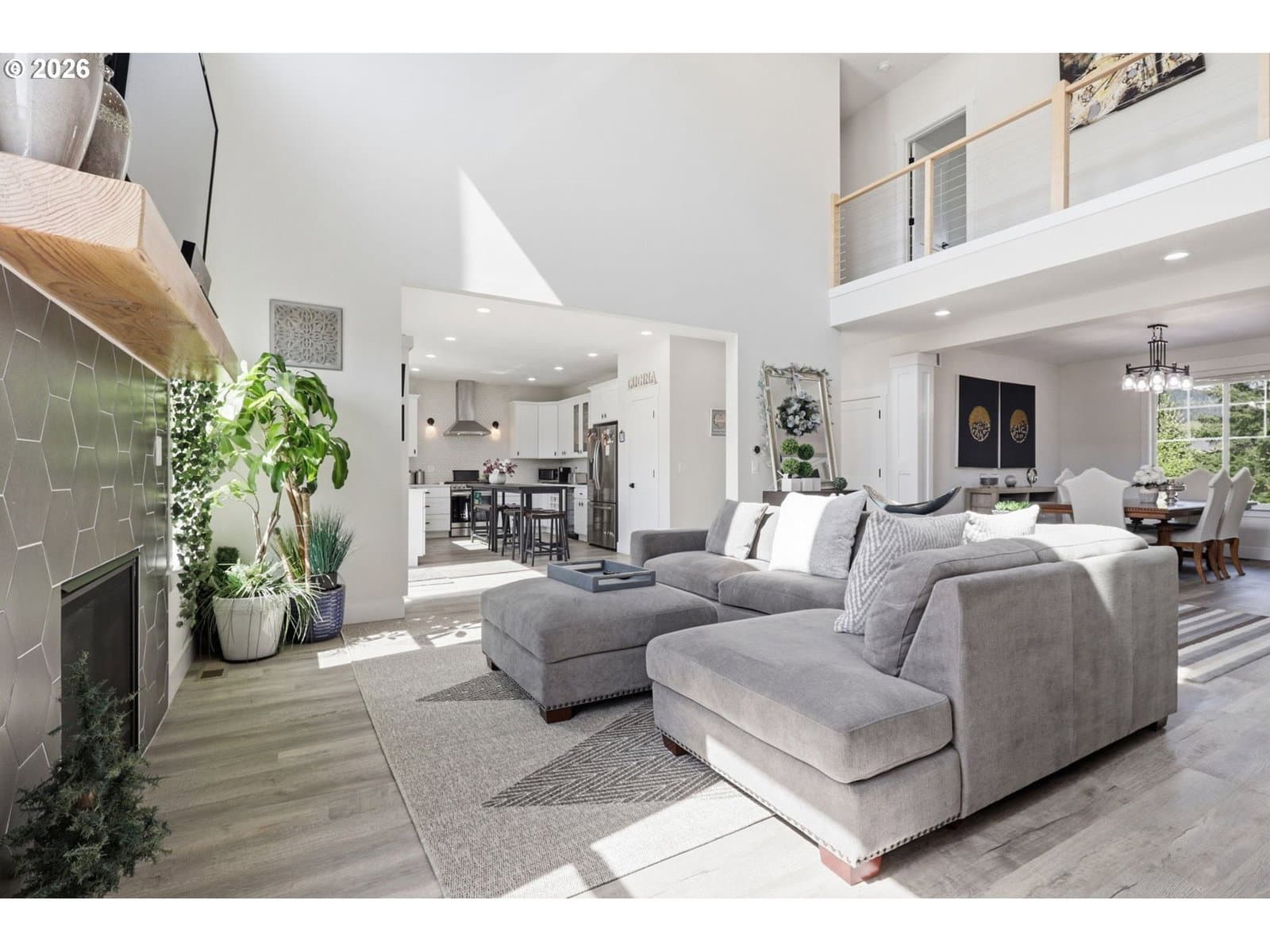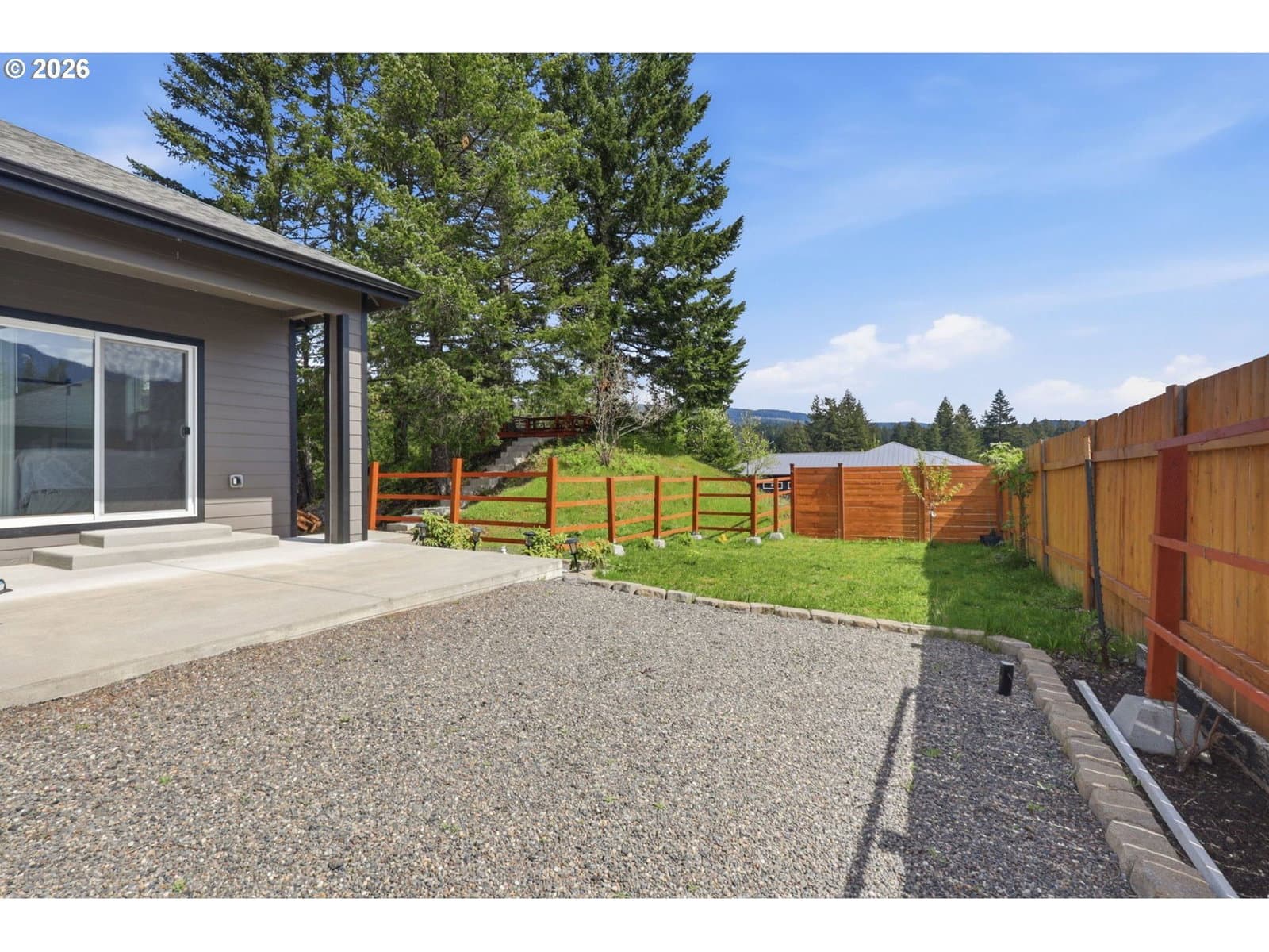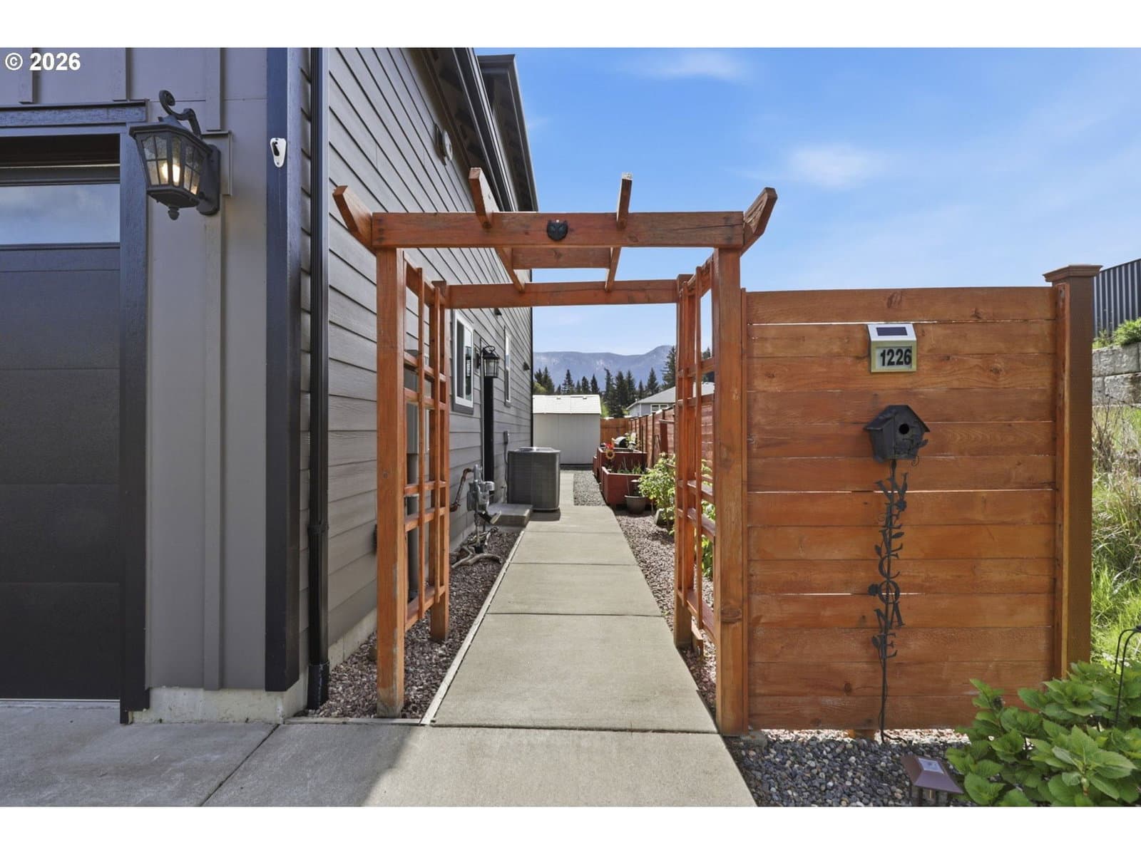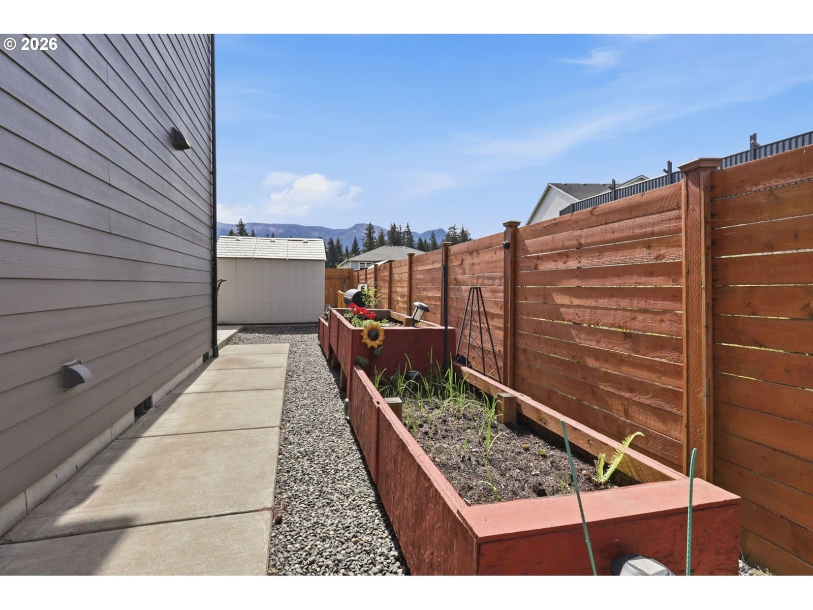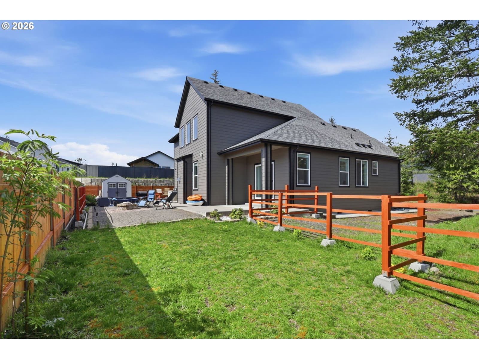 Framed by mountain views and clean modern lines, this beautifully designed Stevenson home stands out from the moment you arrive. Set on a corner lot, the exterior blends rich tones and warm wood accents, creating a look that feels both elevated and inviting.Inside, the home opens up with soaring ceilings, expansive windows, and a flood of natural light that carries throughout the main living spaces. The design feels intentional at every turn, from the open railing staircase to the sleek fireplace and wide plank flooring that ties everything together. The kitchen is a true centerpiece, built for both everyday living and entertaining, with a 5-burner gas range, walk-in pantry, showcase cabinets, and a built-in wine cooler. It flows seamlessly into the dining and living areas, creating a space that feels connected, open, and easy to live in. The main level primary suite offers a private retreat with a spa-like feel, featuring a soaking tub, walk-in shower, and dual vanity, all finished with clean, modern touches and great natural light.Upstairs, a spacious bonus room adds flexibility for a media room, home office, or additional living space. Step outside, and the lifestyle continues. A large patio is ready for gatherings around the firepit, with raised garden beds adding both charm and function. Tucked above it all, a quiet picnic area sits among the trees, giving you your own peaceful escape right at home. Just minutes from the Bridge of the Gods, hiking trails, and downtown Stevenson, this home brings together thoughtful design, newer construction, and the kind of setting that’s hard to find.