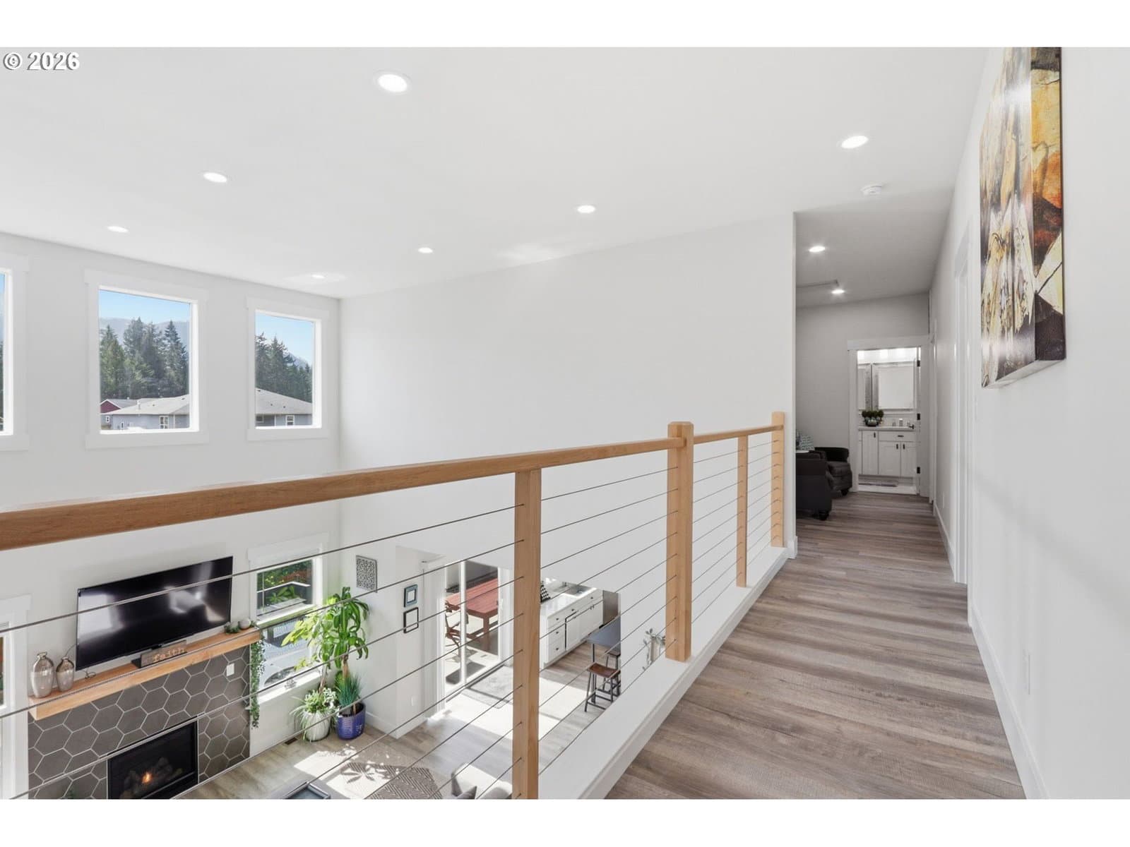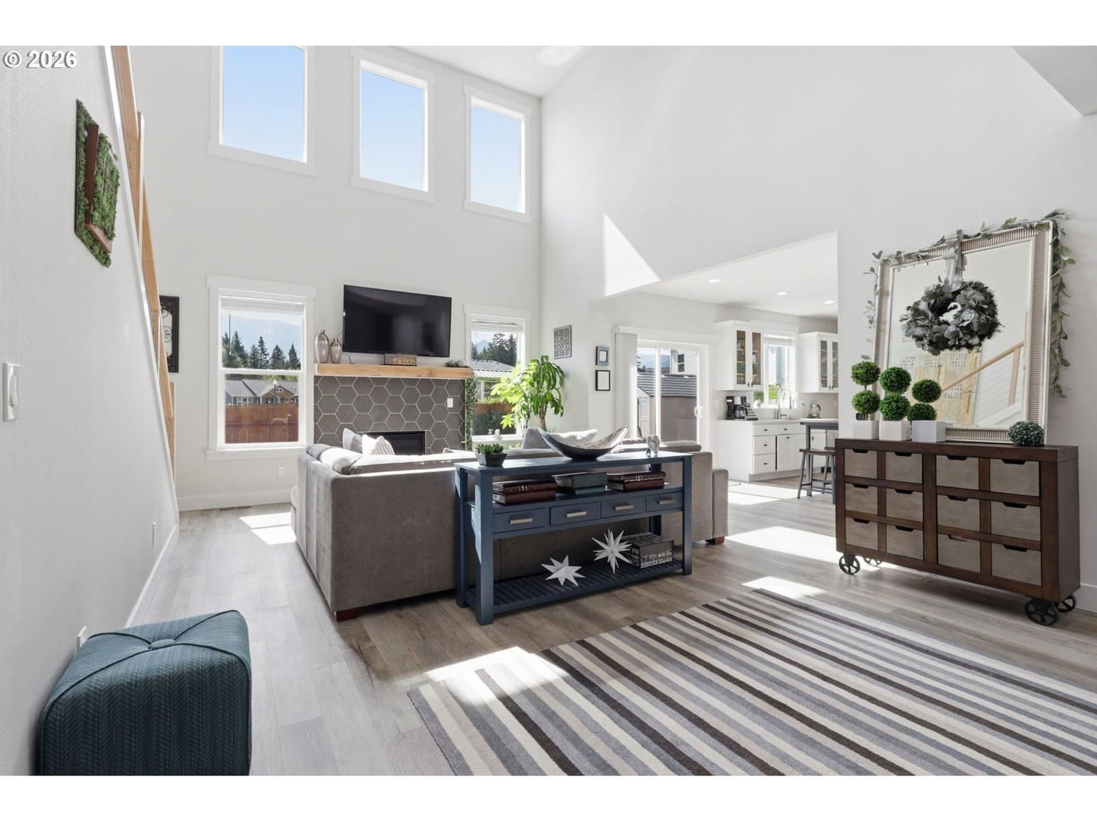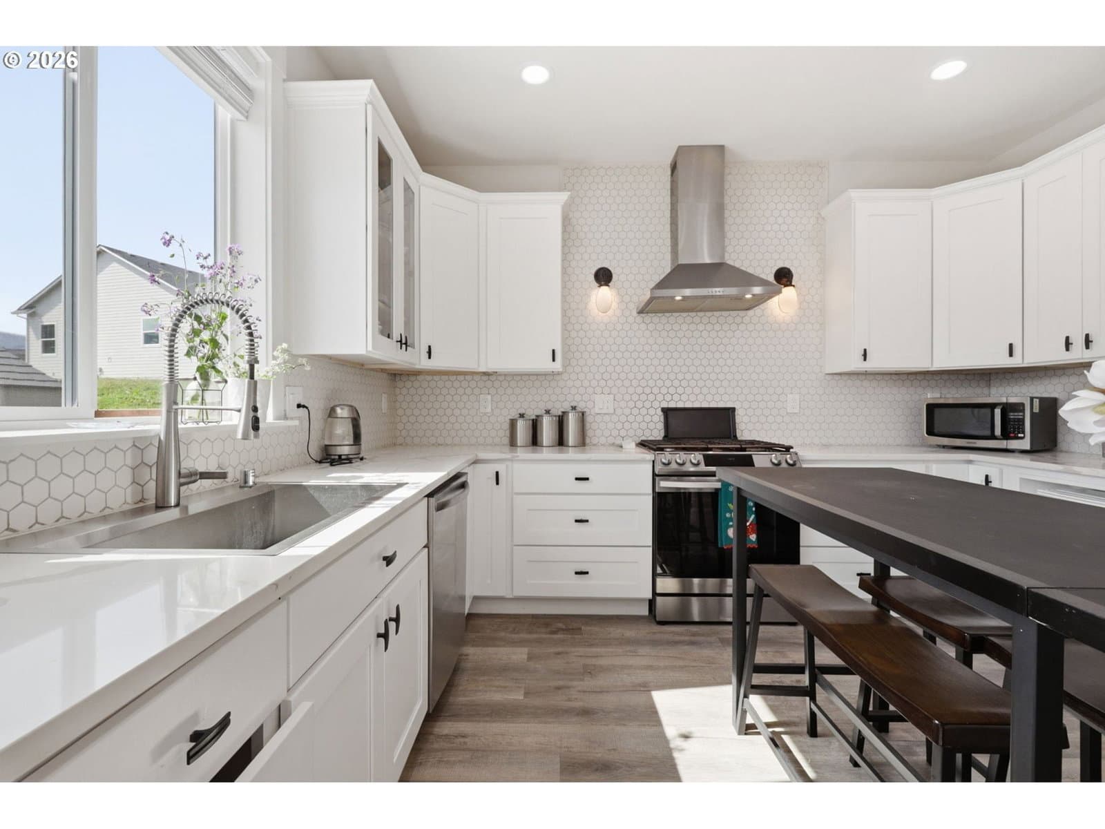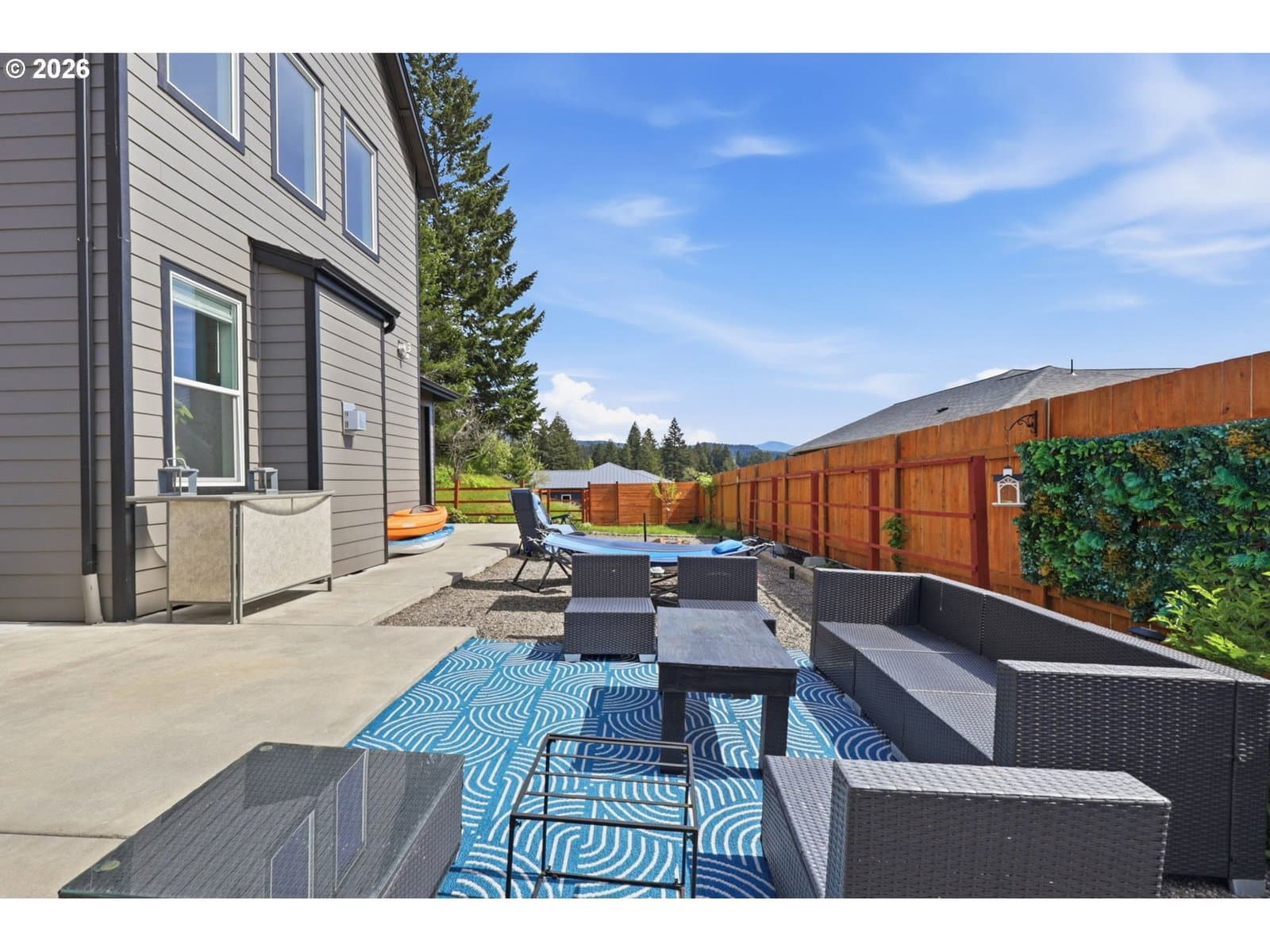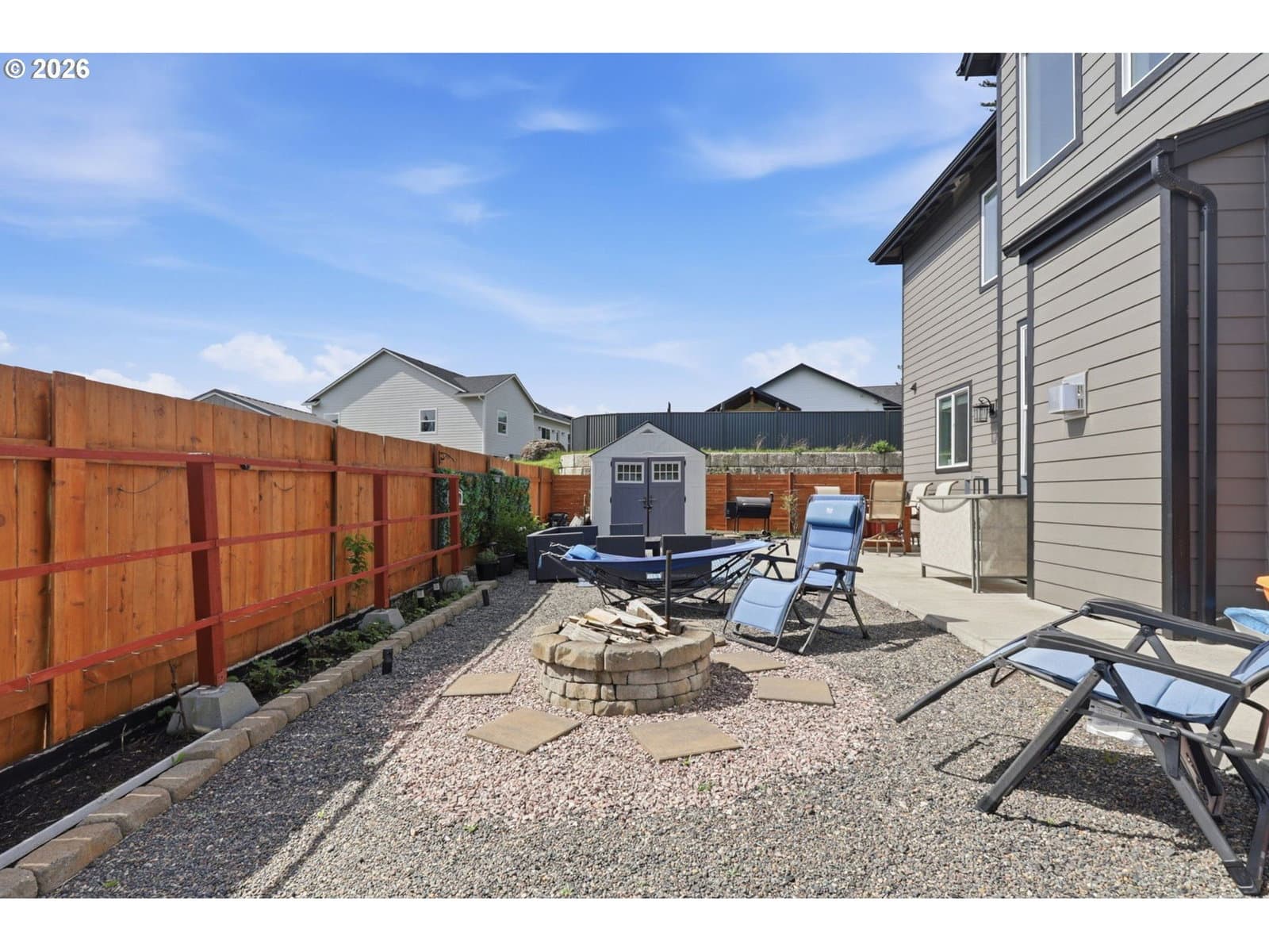 Framed by mountain views and clean modern lines, this beautifully designed Stevenson home stands out from the moment you arrive. Set on a corner lot, the exterior blends rich tones and warm wood accents, creating a look that feels both elevated and inviting.Inside, the home opens up with soaring ceilings, expansive windows, and a flood of natural light that carries throughout the main living spaces. The design feels intentional at every turn, from the open railing staircase to the sleek fireplace and wide plank flooring that ties everything together. The kitchen is a true centerpiece, built for both everyday living and entertaining, with a 5-burner gas range, walk-in pantry, showcase cabinets, and a built-in wine cooler. It flows seamlessly into the dining and living areas, creating a space that feels connected, open, and easy to live in. The main level primary suite offers a private retreat with a spa-like feel, featuring a soaking tub, walk-in shower, and dual vanity, all finished with clean, modern touches and great natural light.Upstairs, a spacious bonus room adds flexibility for a media room, home office, or additional living space. Step outside, and the lifestyle continues. A large patio is ready for gatherings around the firepit, with raised garden beds adding both charm and function. Tucked above it all, a quiet picnic area sits among the trees, giving you your own peaceful escape right at home. Just minutes from the Bridge of the Gods, hiking trails, and downtown Stevenson, this home brings together thoughtful design, newer construction, and the kind of setting that’s hard to find.