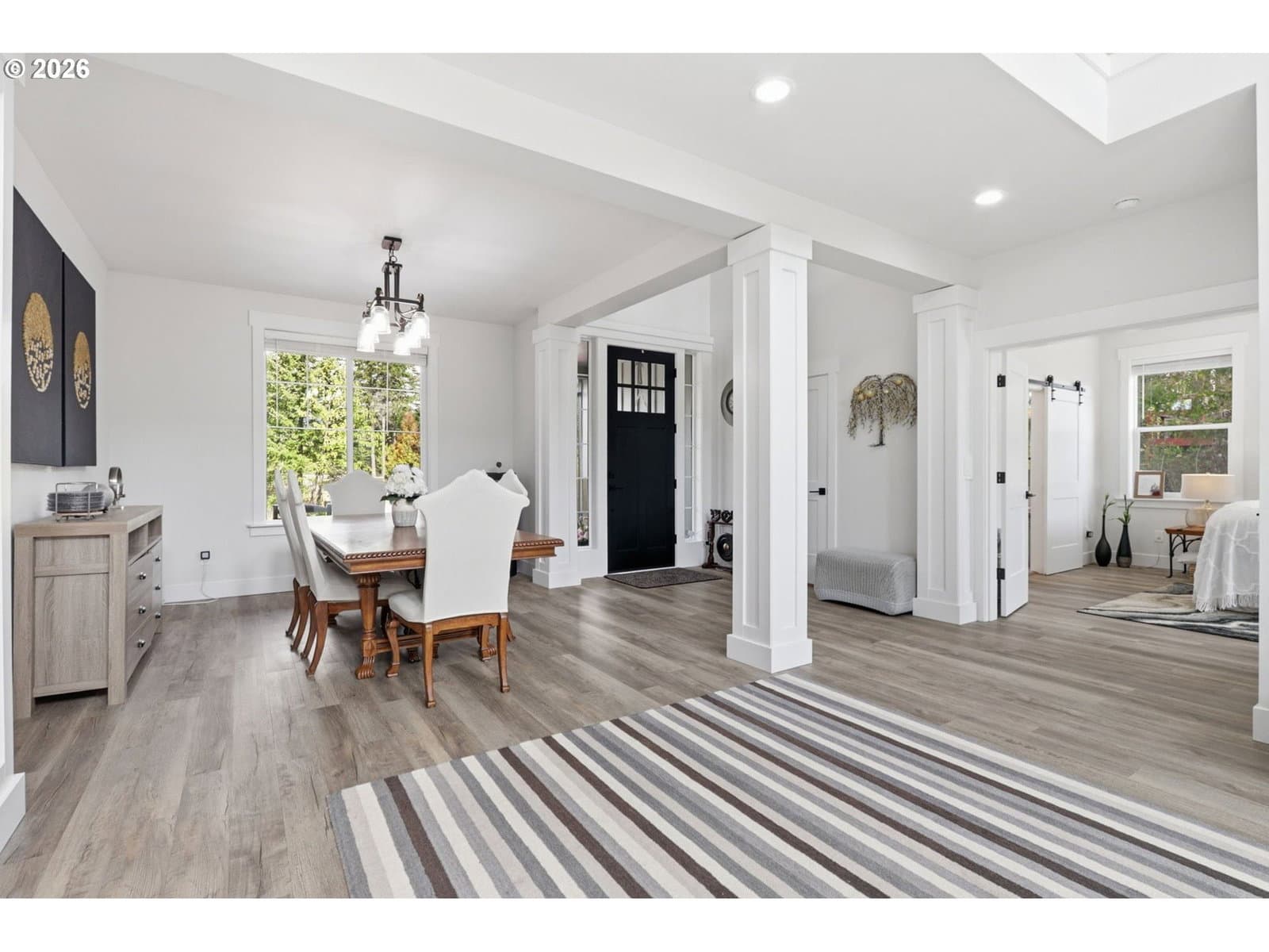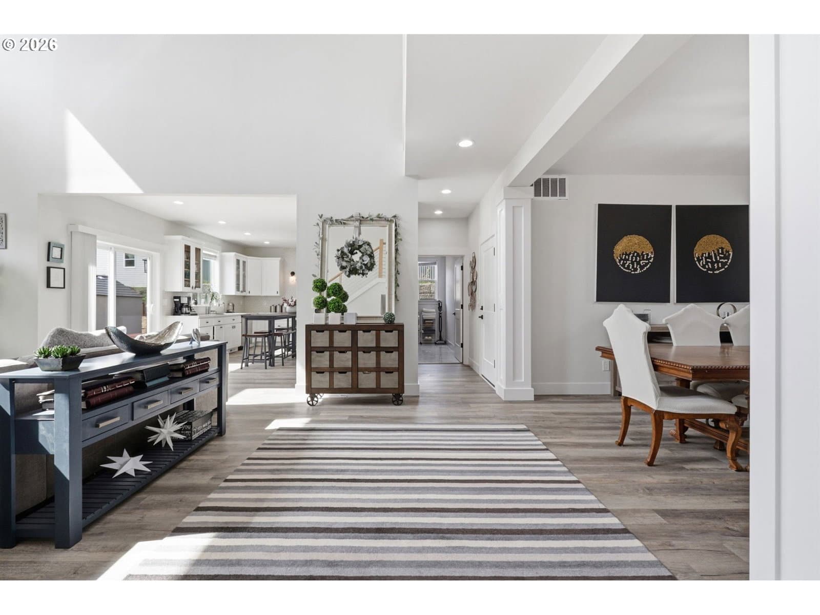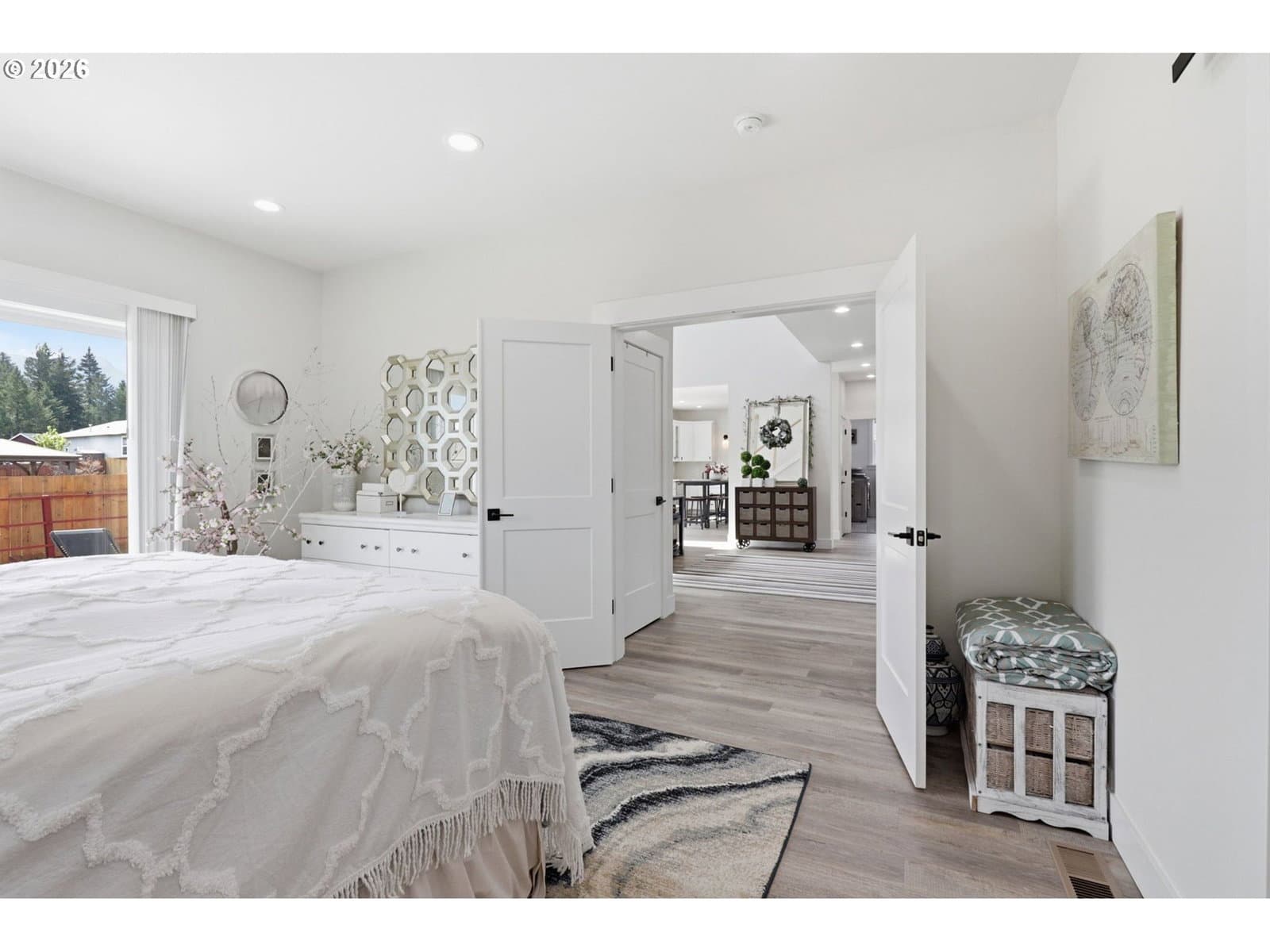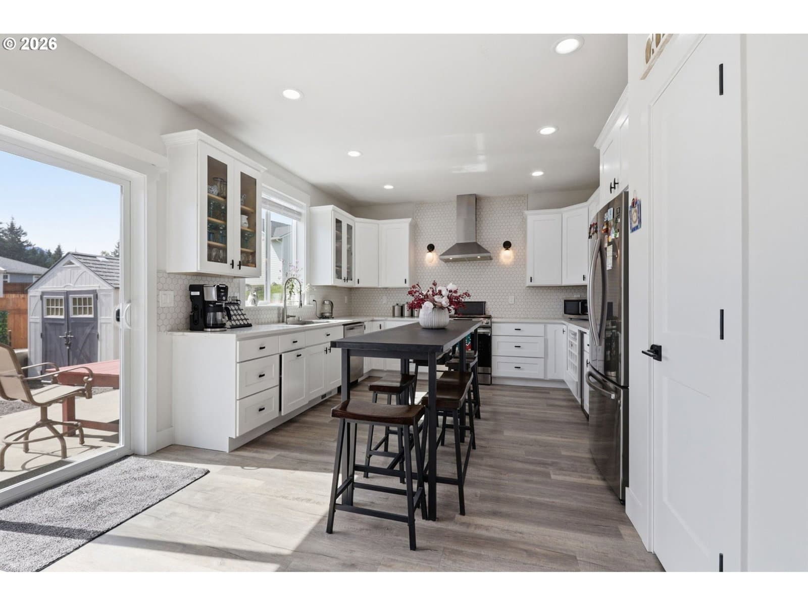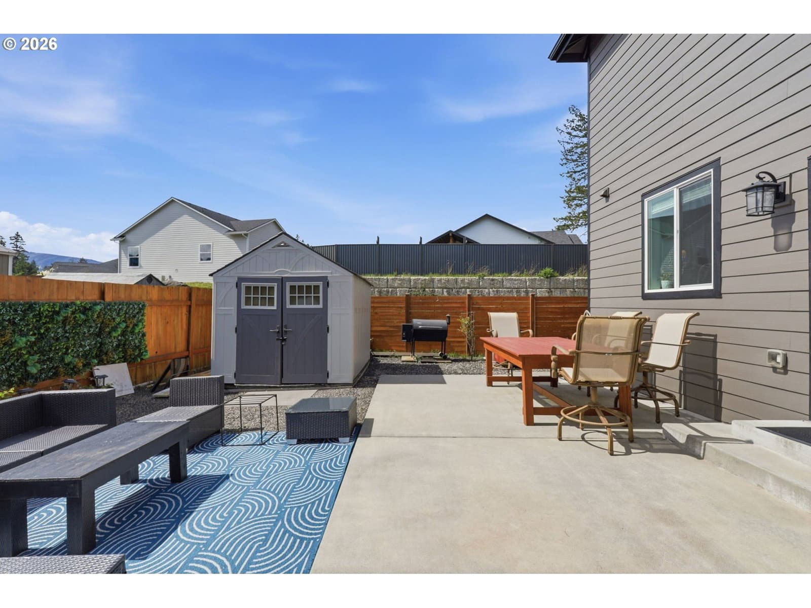 Framed by mountain views and clean modern lines, this beautifully designed Stevenson home stands out from the moment you arrive. Set on a corner lot, the exterior blends rich tones and warm wood accents, creating a look that feels both elevated and inviting.Inside, the home opens up with soaring ceilings, expansive windows, and a flood of natural light that carries throughout the main living spaces. The design feels intentional at every turn, from the open railing staircase to the sleek fireplace and wide plank flooring that ties everything together. The kitchen is a true centerpiece, built for both everyday living and entertaining, with a 5-burner gas range, walk-in pantry, showcase cabinets, and a built-in wine cooler. It flows seamlessly into the dining and living areas, creating a space that feels connected, open, and easy to live in. The main level primary suite offers a private retreat with a spa-like feel, featuring a soaking tub, walk-in shower, and dual vanity, all finished with clean, modern touches and great natural light.Upstairs, a spacious bonus room adds flexibility for a media room, home office, or additional living space. Step outside, and the lifestyle continues. A large patio is ready for gatherings around the firepit, with raised garden beds adding both charm and function. Tucked above it all, a quiet picnic area sits among the trees, giving you your own peaceful escape right at home. Just minutes from the Bridge of the Gods, hiking trails, and downtown Stevenson, this home brings together thoughtful design, newer construction, and the kind of setting that’s hard to find.