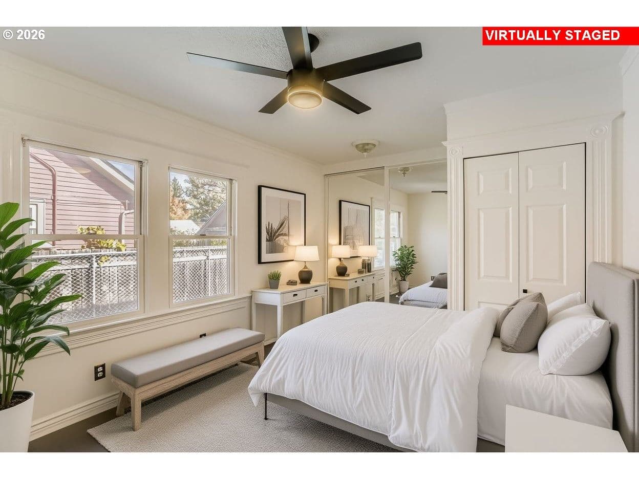 Set in the heart of Portland’s sought-after Hosford-Abernethy neighborhood, this updated bungalow puts you just steps from the shops, restaurants, coffee spots and parks along Clinton & Division. The covered front porch leads into a light-filled sunroom entry—perfect for morning coffee or plant lovers. Inside, enjoy new luxury vinyl plank flooring, fresh interior and exterior paint, new trim and baseboards, modern fixtures, ceiling fans and newer vinyl windows. Remodeled kitchen features quartz countertops, white shaker cabinetry, stainless steel appliances, a garden window and an eating area. Both bedrooms offer great natural light and mirrored closets, with one featuring double closets for added storage. The updated bathroom includes a tiled walk-in shower, quartz vanity, new toilet and built-in storage. The recently painted basement offers laundry and flexible space with future potential for expansion, a home office or studio. Detached oversized one-car garage, long driveway with RV or boat parking and front and back yards ready for gardening or entertaining. With a Walk Score of 93 and Bike Score of 100, plus access to the highly regarded Abernethy, Hosford and Cleveland school path, this home blends classic Portland charm with modern updates and an unbeatable location. [Home Energy Score = 4. HES Report at https://rpt.greenbuildingregistry.com/hes/OR10242536]