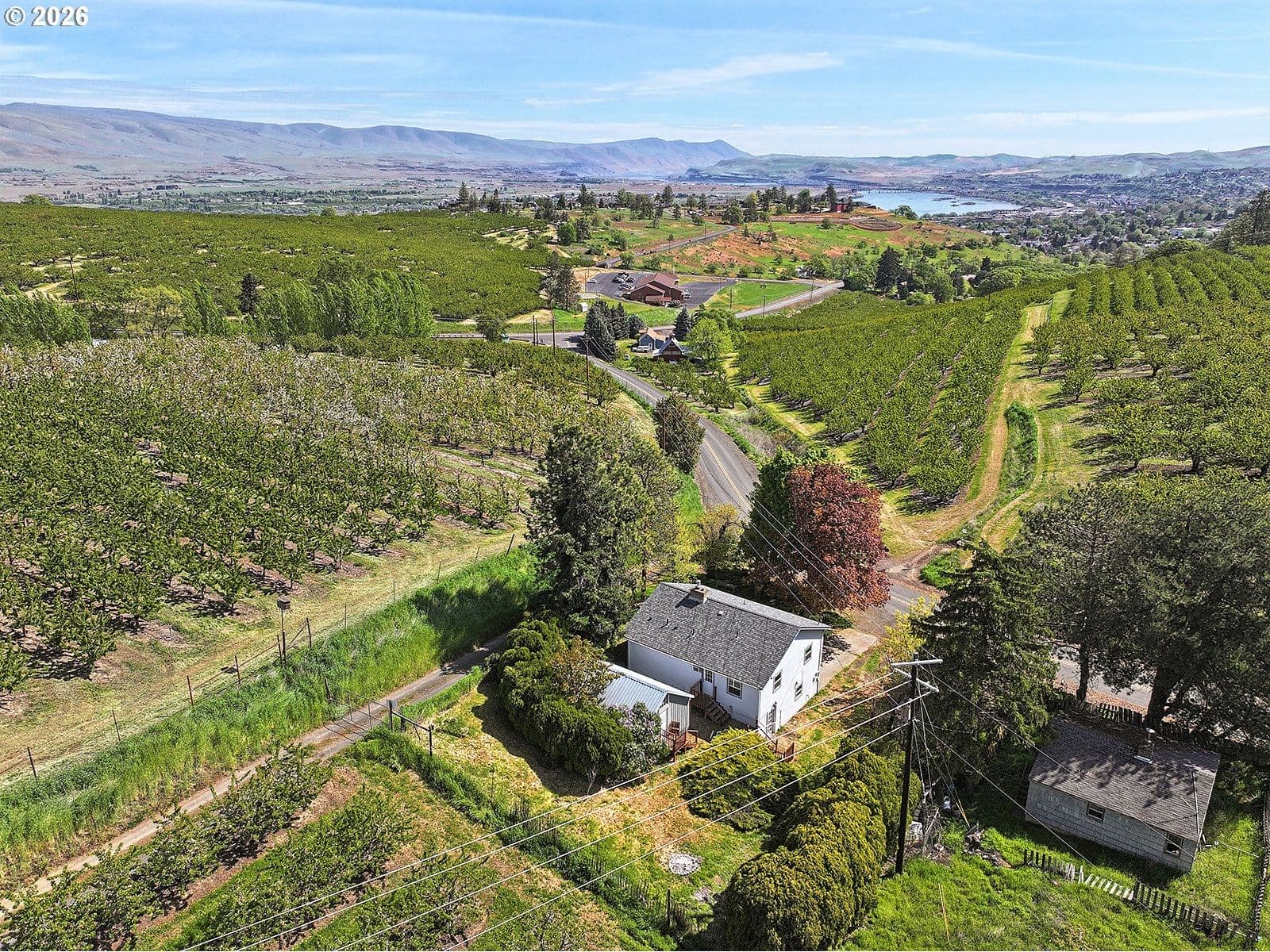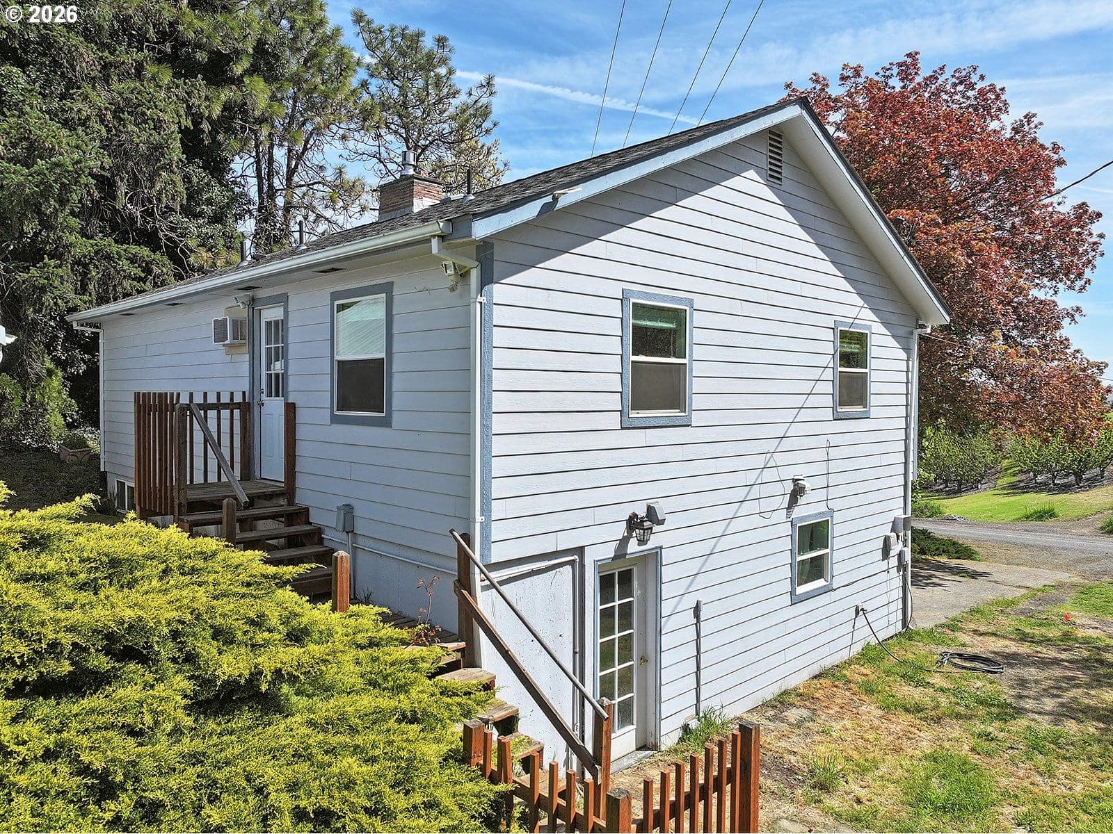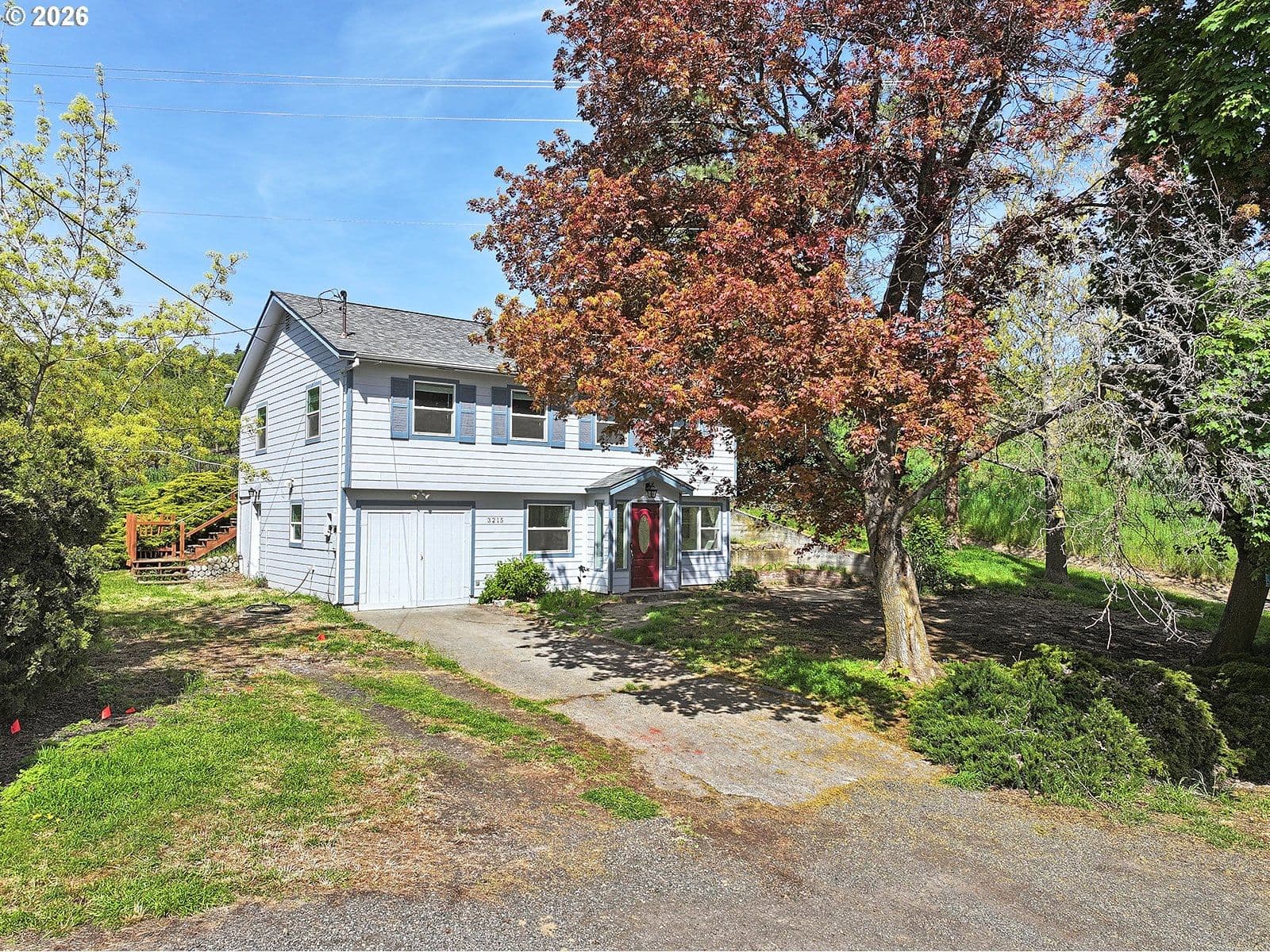 Enjoy the perfect blend of country charm and convenience with this inviting two-story home situated on a third of an acre, just under five minutes from downtown The Dalles. The spacious main living area is filled with natural light and anchored by a cozy gas fireplace, creating a warm and welcoming atmosphere. A generously sized dining room offers plenty of space for gatherings, while the kitchen features abundant counter space, ample cabinetry, and excellent storage. All bedrooms are located upstairs, including a large primary suite complete with a full ensuite bathroom and double closets. Outside, the property offers a large parking area ideal for trailers, boats, or an RV. A powered storage shed provides additional versatility for hobbies or workspace needs. Recent updates include a brand-new well pressure tank and filtration system, as well as a new septic tank.
