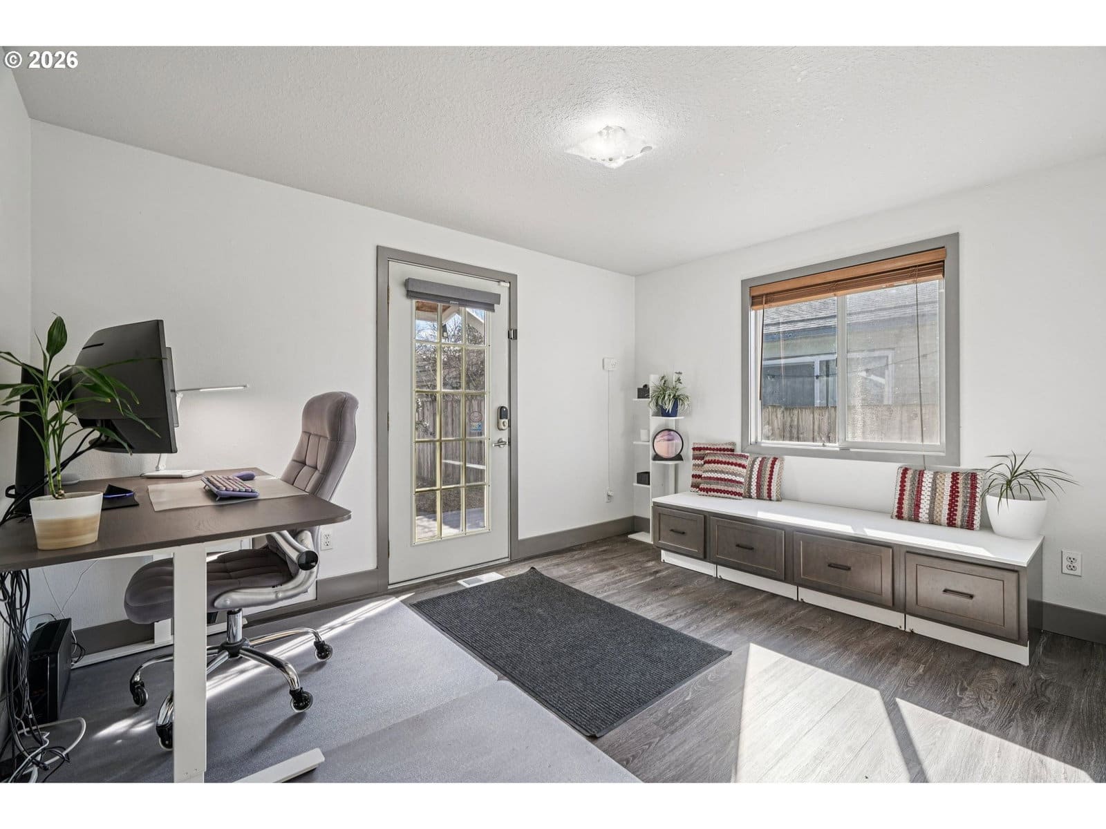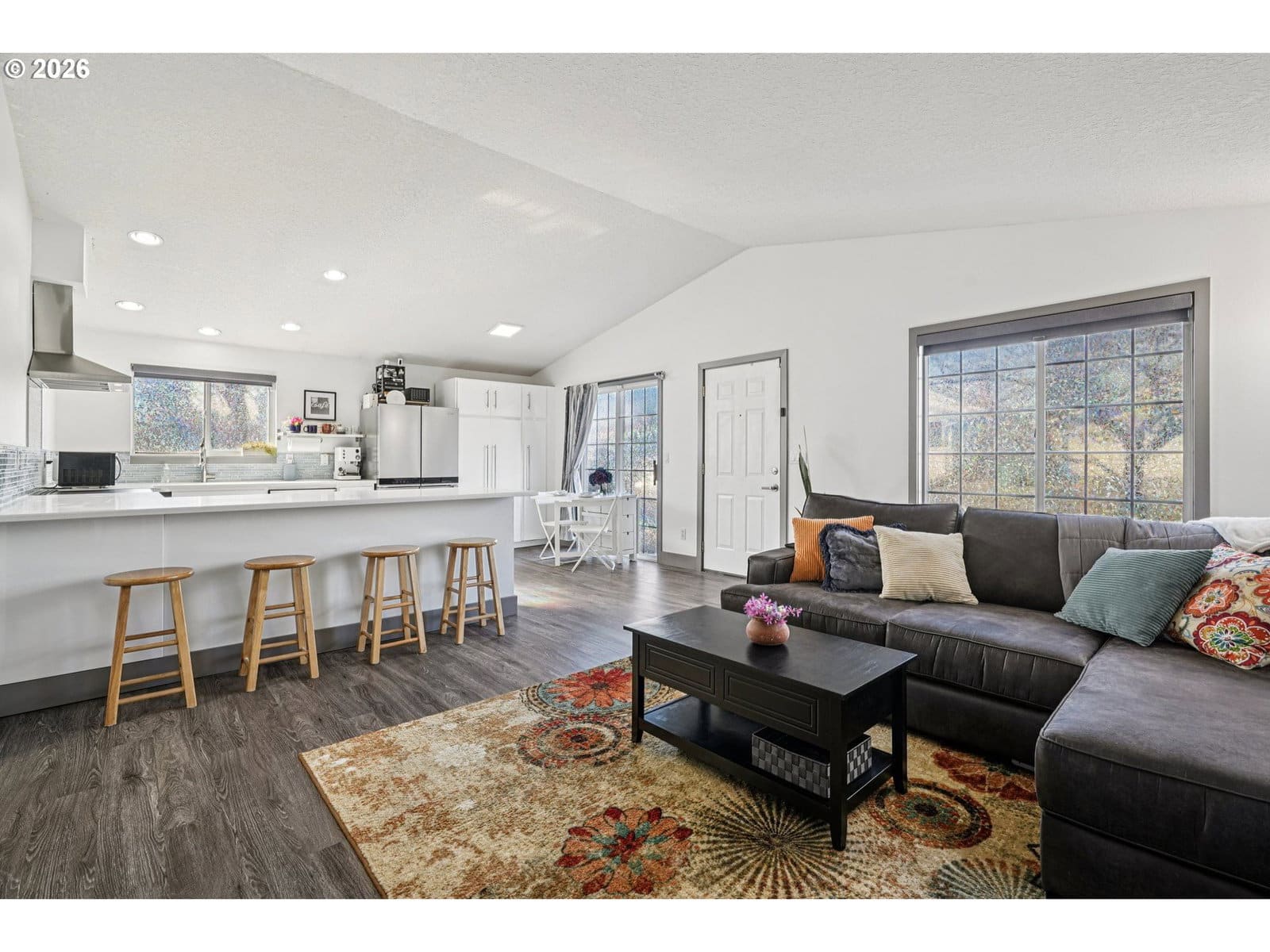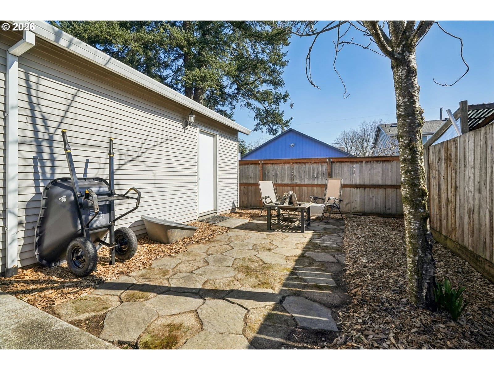 Updated one-level home on a quiet neighborhood street! Just one block to Glenwood Park and Kelly Elementary. Gorgeous remodeled kitchen feels light and bright with quartz counters and opens onto the spacious living room. Primary bedroom with en suite bath featuring walk-in shower. All new flooring throughout the whole home. New metal roof, new paint and trim, crawlspace work performed sealing and waterproofing it. Gated driveway with large parking area and excellent detached 2-car garage. Raised beds out front ready for your Spring plantings. This home is truly move-in ready, a must see! [Home Energy Score = 6. HES Report at https://rpt.greenbuildingregistry.com/hes/OR10110233]