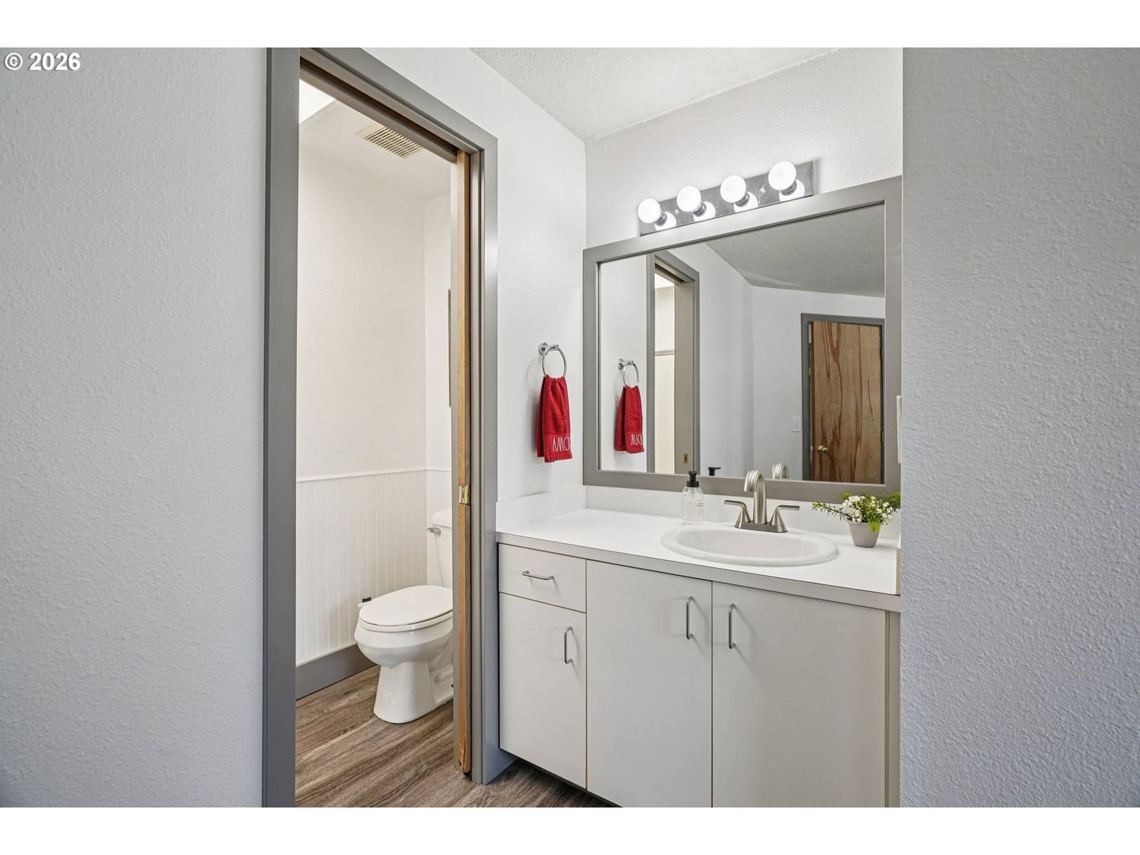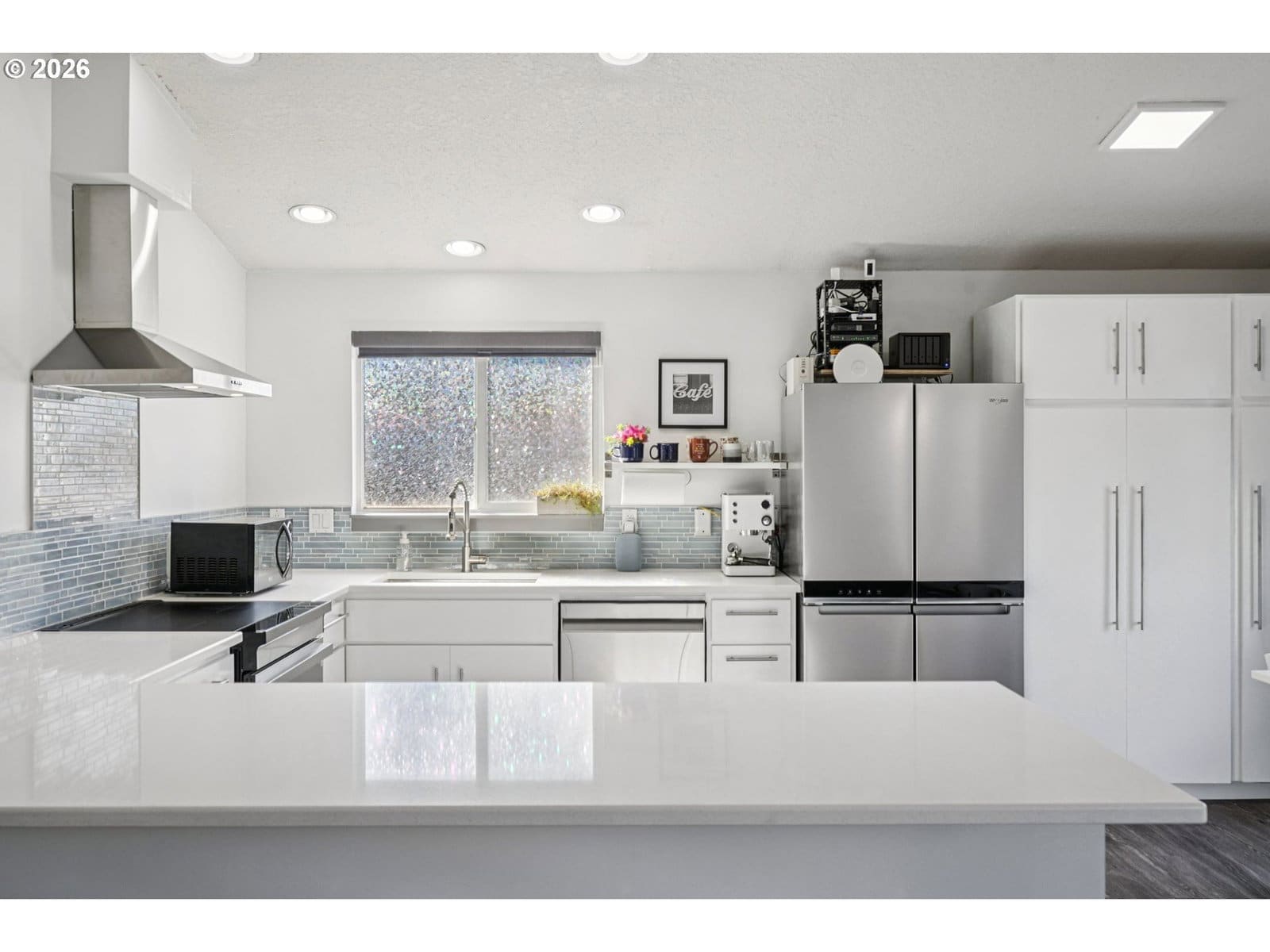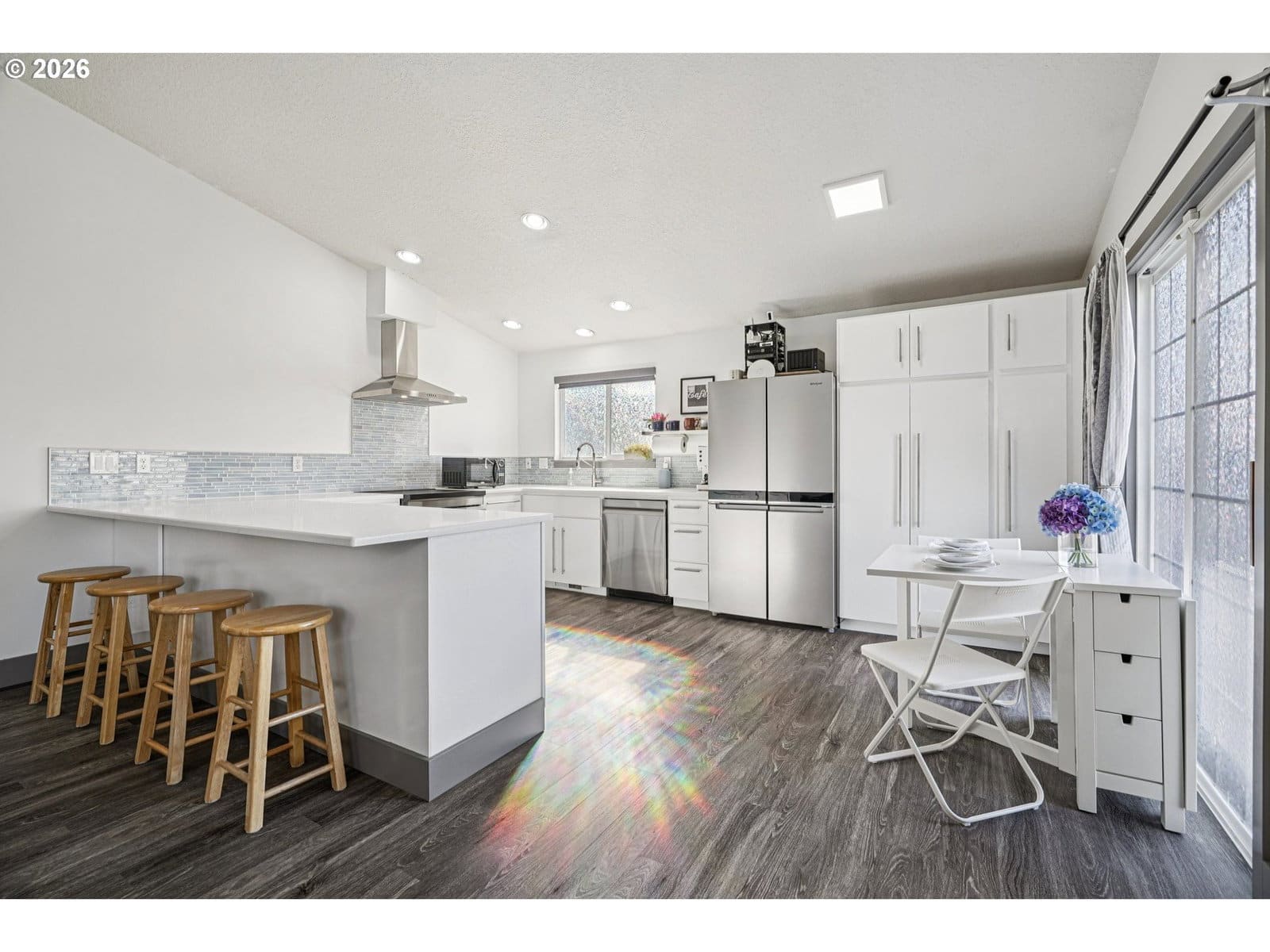Updated one-level home on a quiet neighborhood street! Just one block to Glenwood Park and Kelly Elementary. Gorgeous remodeled kitchen feels light and bright with quartz counters and opens onto the spacious living room. Primary bedroom with en suite bath featuring walk-in shower. All new flooring throughout the whole home. New metal roof, new paint and trim, crawlspace work performed sealing and waterproofing it. Gated driveway with large parking area and excellent detached 2-car garage. Raised beds out front ready for your Spring plantings. This home is truly move-in ready, a must see! [Home Energy Score = 6. HES Report at https://rpt.greenbuildingregistry.com/hes/OR10110233]