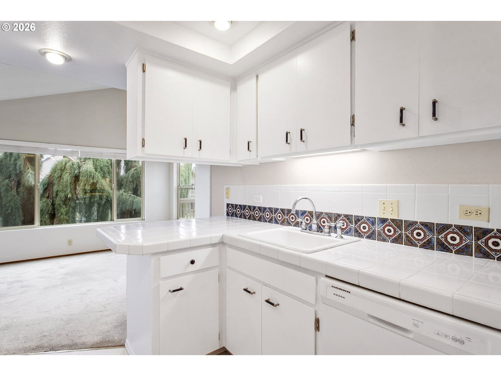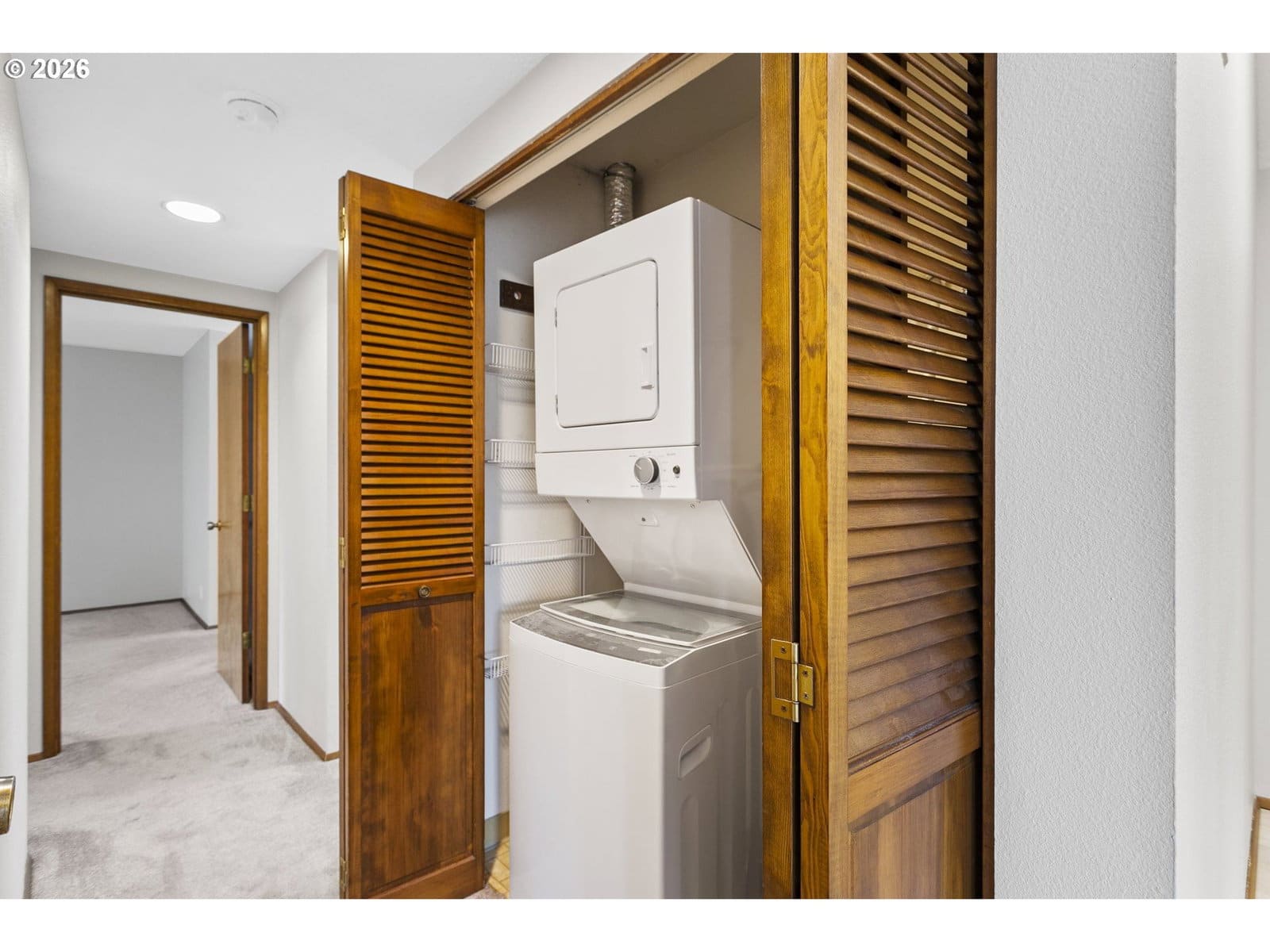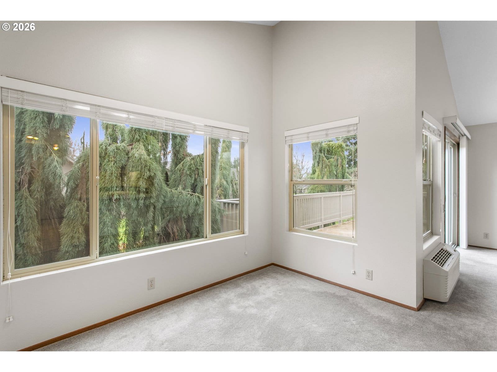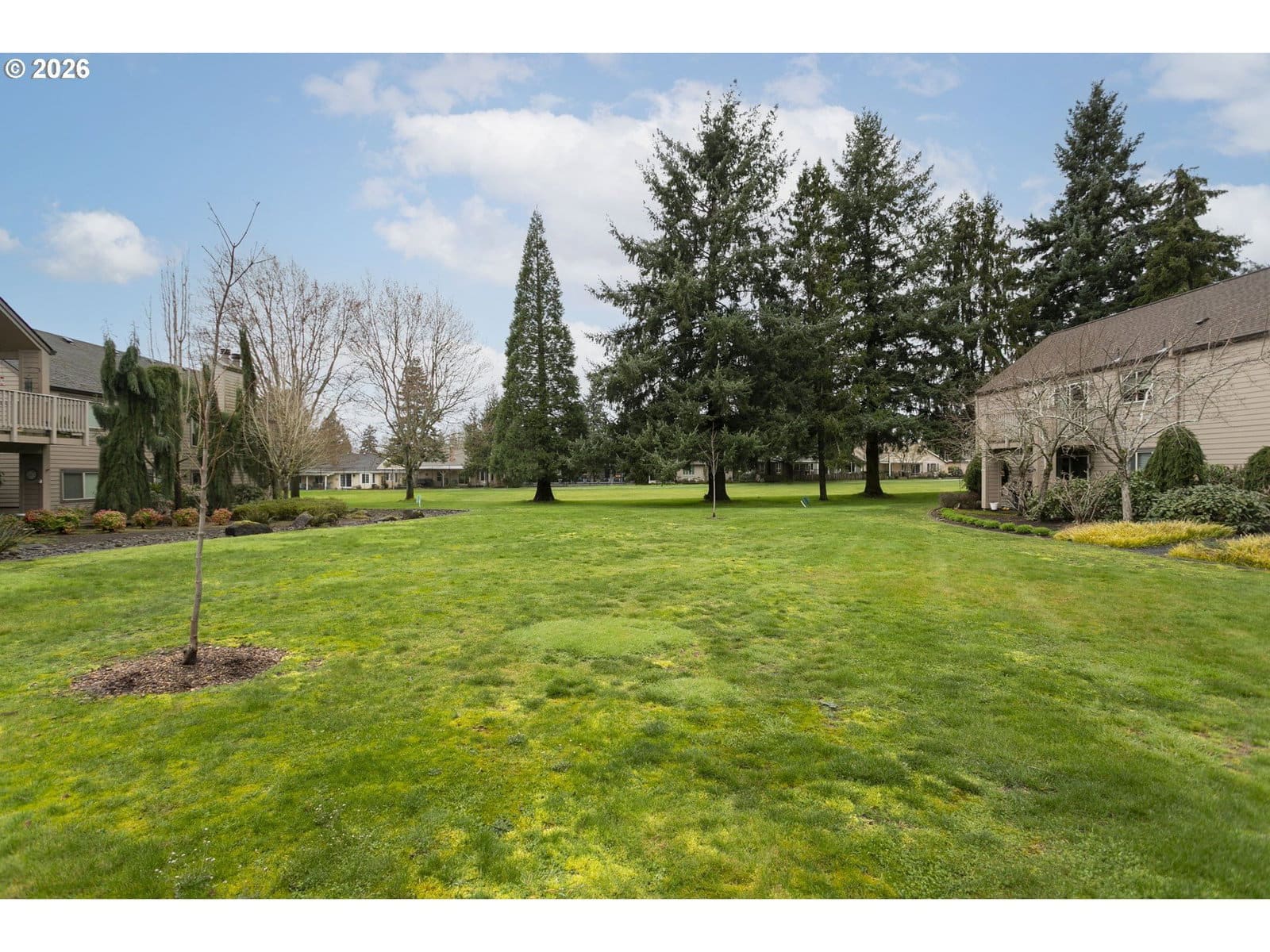 This vintage floor plan is an end unit with a larger primary bedroom with a walk-in closet. It has a wraparound deck three times the size of the others. Best of all, it's an upper-unit with towering vaults, and the location can't be beat! It overlooks the large, grassed courtyard with the golf course in the distance. One of the best hidden features is that the garage access door is a short distance from your entrance. A vibrant 55+ planned community featuring a clubhouse, a variety of scheduled activities, exercise facilities, a sauna, a swimming pool, billiards, ping-pong, an arts and crafts studio, a ballroom, a library, meeting and event rooms, and much more!