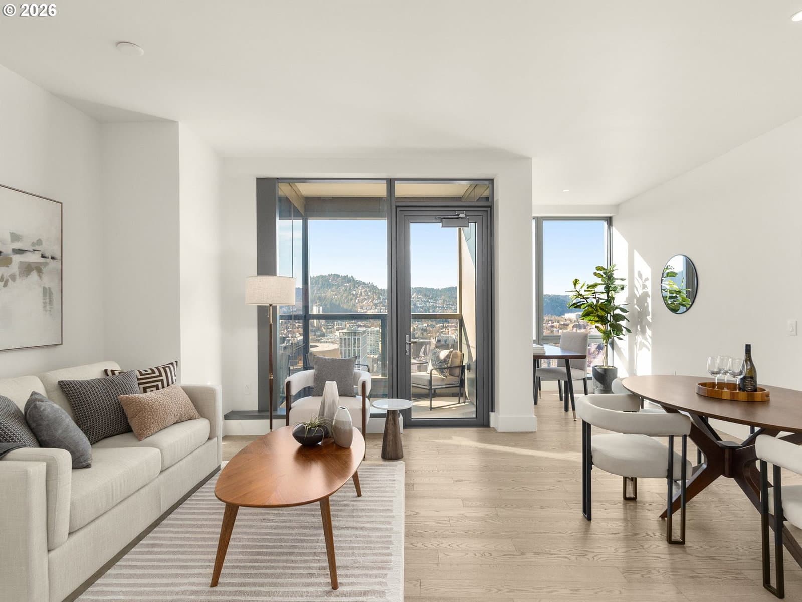 Welcome to The Ritz-Carlton Residences—where modern design meets legendary service, high above downtown Portland.This west-facing one-bedroom residence features a well-planned layout flooded with natural light, elegant engineered hardwood floors, and a gourmet kitchen equipped with premium Wolf, Miele, and Sub-Zero appliances plus custom Pedini cabinetry. The primary suite offers a serene retreat with a spacious walk-in closet and a luxurious spa bathroom complete with a marble vanity, tiled surfaces, and a wet room including both a shower and bathtub. Step out onto your private balcony to take in sweeping views of the city and the West Hills. Residents enjoy exclusive access to top-tier amenities such as an infinity pool, fitness center, and the private Owners’ Lounge, along with 24-hour concierge service in the exclusive Residence lobby. Secure parking is included, delivering exceptional urban living in the city’s vibrant core. CCB #191405