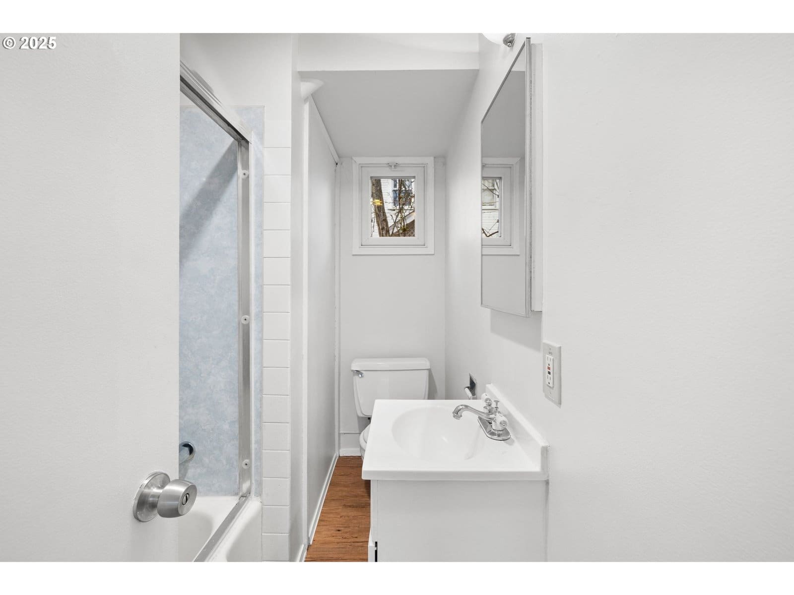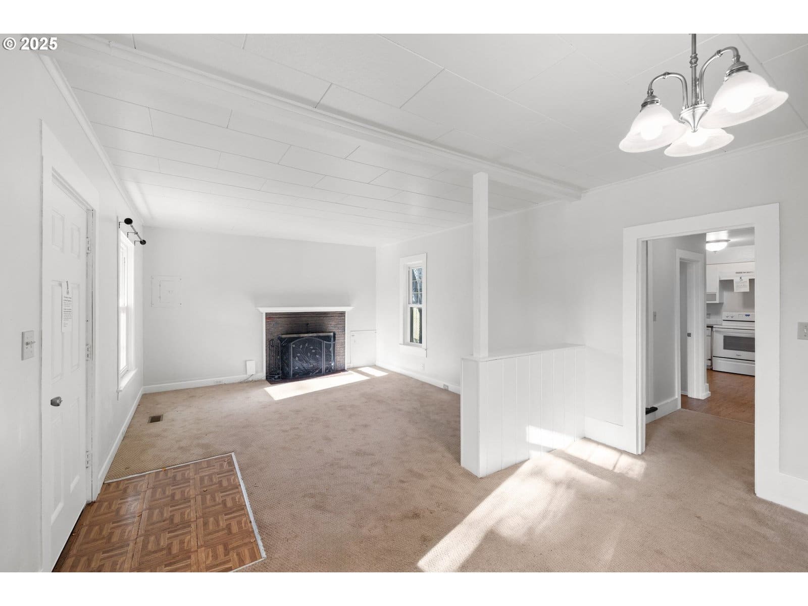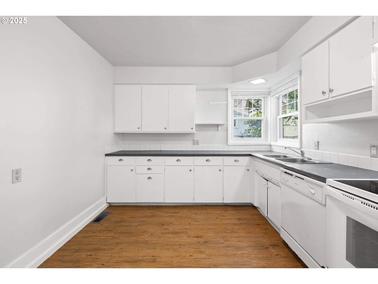 Charming four bedroom home featuring a covered front porch and a welcoming parquet wood entry that opens to spacious living and dining areas. The living room offers a cozy fireplace insert and built-in bookcase. The kitchen includes painted wood cabinetry and appliances, including refrigerator, range, and dishwasher. One bedroom, a full bathroom, and a utility room are located on the main level, with convenient access to the backyard. Upstairs features three additional bedrooms and a second full bathroom. The partially fenced backyard includes a paved walkway. Ideally located near Bagley Park, Lincoln Street Elementary, shopping, and restaurants. [Home Energy Score = 1. HES Report at https://rpt.greenbuildingregistry.com/hes/OR10243340]