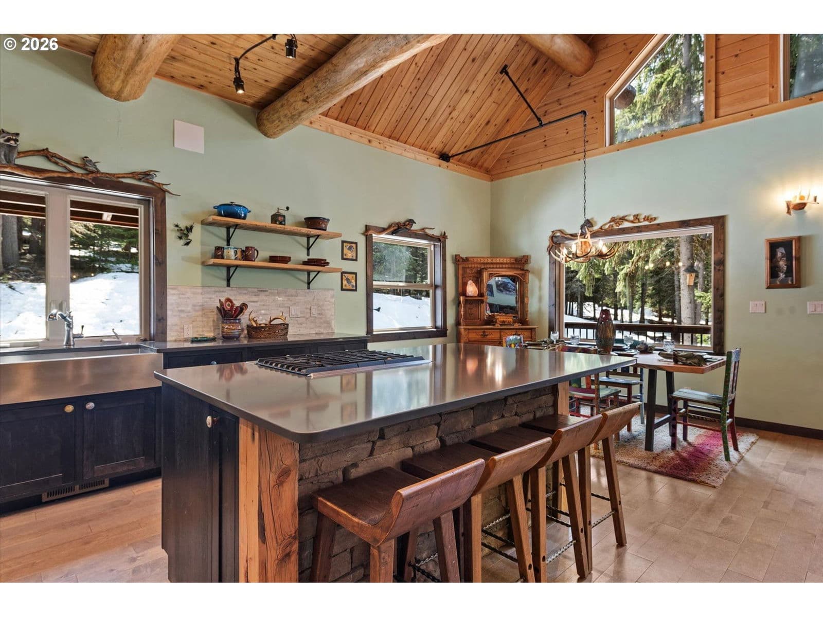 19days on marketArtist’s Haven in a Mountain Oasis! Discover a true masterpiece tucked away on 5 serene acres—where local custom artistry meets mountain living. Completed in 2017, this 3-bedroom, 2.5-bath home is a unique blend of rustic charm and modern comfort, showcasing stunning local craftsmanship throughout. Step inside to a warm and inviting open-concept floor plan featuring vaulted tongue and groove ceilings, large log accents and exceptional insulation with traditional stick-built interior construction. The heart of the home—the kitchen—features one of a kind hand-carved Steve Arment cabinetry accents, quartz countertops, stainless steel appliances and custom made ceramic knobs by local artist Olaf. Take in the beauty of renowned local woodcarver Steve Arment’s custom door and window casings. Stay cozy with the certified Blaze King woodstove, central heat (propane) and new mini-split system for heating and cooling downstairs. The main-floor primary suite is a private retreat with its own private deck, custom closet system, reclaimed barn wood dual-sink vanity and an oversized slate walk-in shower with five shower heads. Upstairs offers a spacious and flexible loft with a private balcony and abundant storage. The finished lower level includes two additional bedrooms, a second living area, a full bath with jetted tub and a wet bar—ideal for guests and can be used as separate living quarters. Relax outdoors in the covered pavilion, complete with a wood-fired hot tub and seating area. Practical oversized 1 car garage, upper and lower driveways, RV hookups and a 1/4 acre fenced enclosure for small animals or large dogs. Additional perks include Starlink high-speed internet (equipment included), a backup generator and Firewise defensible space certification. This home isn’t just a place to live—it’s a work of art.