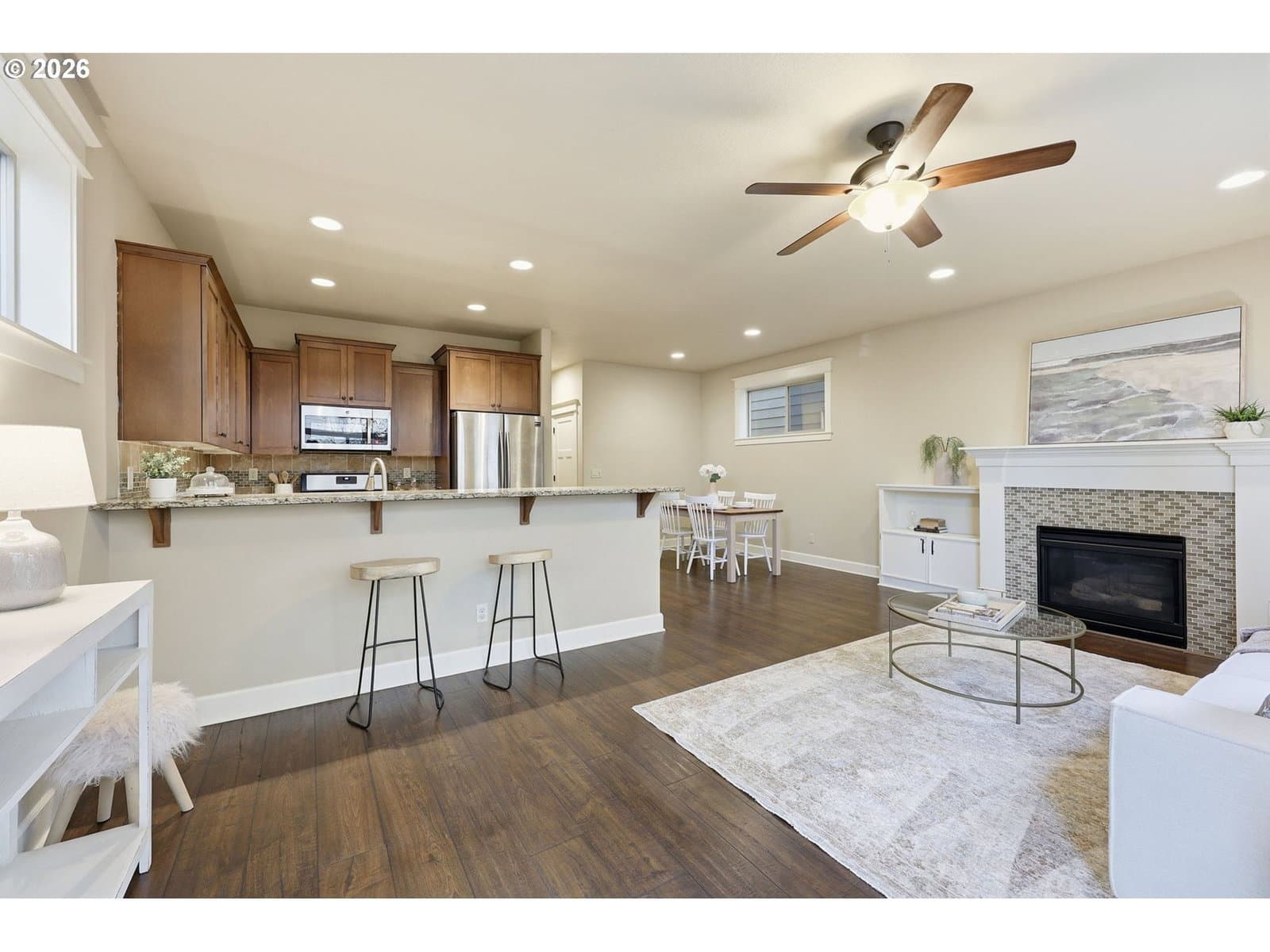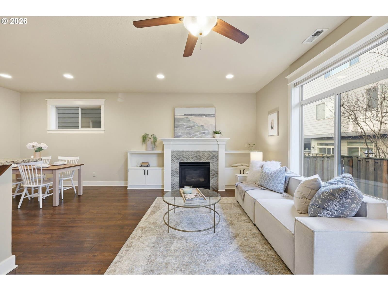 Turnkey, newer-construction single-family detached home offering privacy, flexibility, and a thoughtful layout in a well-run community. The main level provides a comfortable, private living environment with a gas fireplace and a functional kitchen featuring a gas range/oven, stainless steel appliances, and a large eat-bar, plus an attached single-car garage. Upgraded stone exterior detailing adds lasting curb appeal and sets this home apart.The primary suite is bright and generously sized, featuring a soaking tub, walk-in shower, water closet, and double vanity. Upstairs, an exceptionally large bonus/game room filled with natural light offers outstanding flexibility for a media room, home office, gym, playroom, or additional living area. Additional bedrooms are well proportioned throughout.The home has been well maintained and well cared for, making it truly move-in ready—ideal for settling in and heading out on your next adventure. A major highlight of the community is the expansive HOA-owned green space, offering openness and room to breathe rarely found in similar neighborhoods.Ideally located with quick access to Hwy 217, I-5, and Barbur Blvd, making it easy to reach downtown Portland, Beaverton, and Hillsboro. Enjoy everyday convenience just minutes from Washington Square, Fred Meyer, Costco and downtown Tigard + Beaverton— enjoy it all while benefiting from Washington County taxes.Open House this Saturday from 11:00 AM to 1:00 PM.