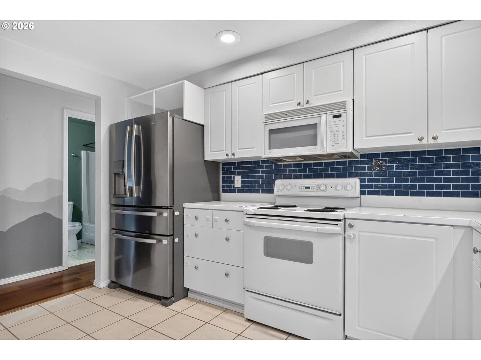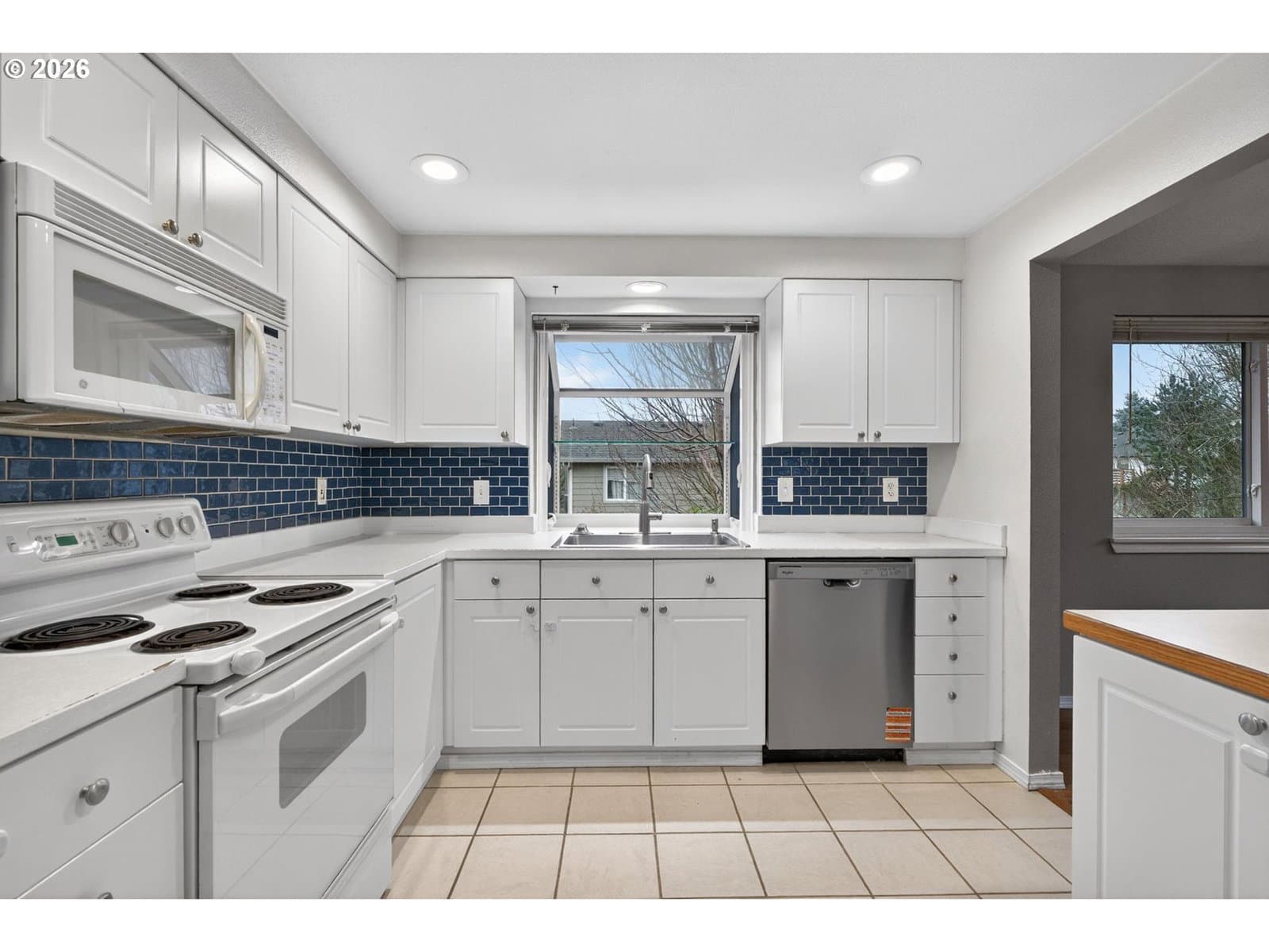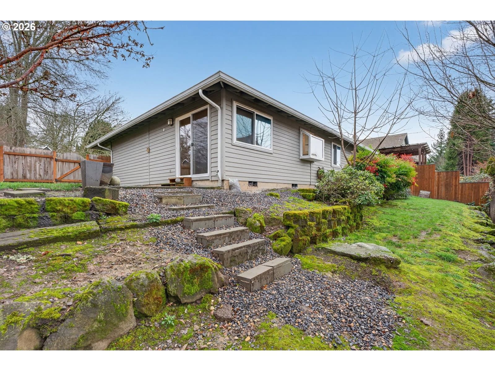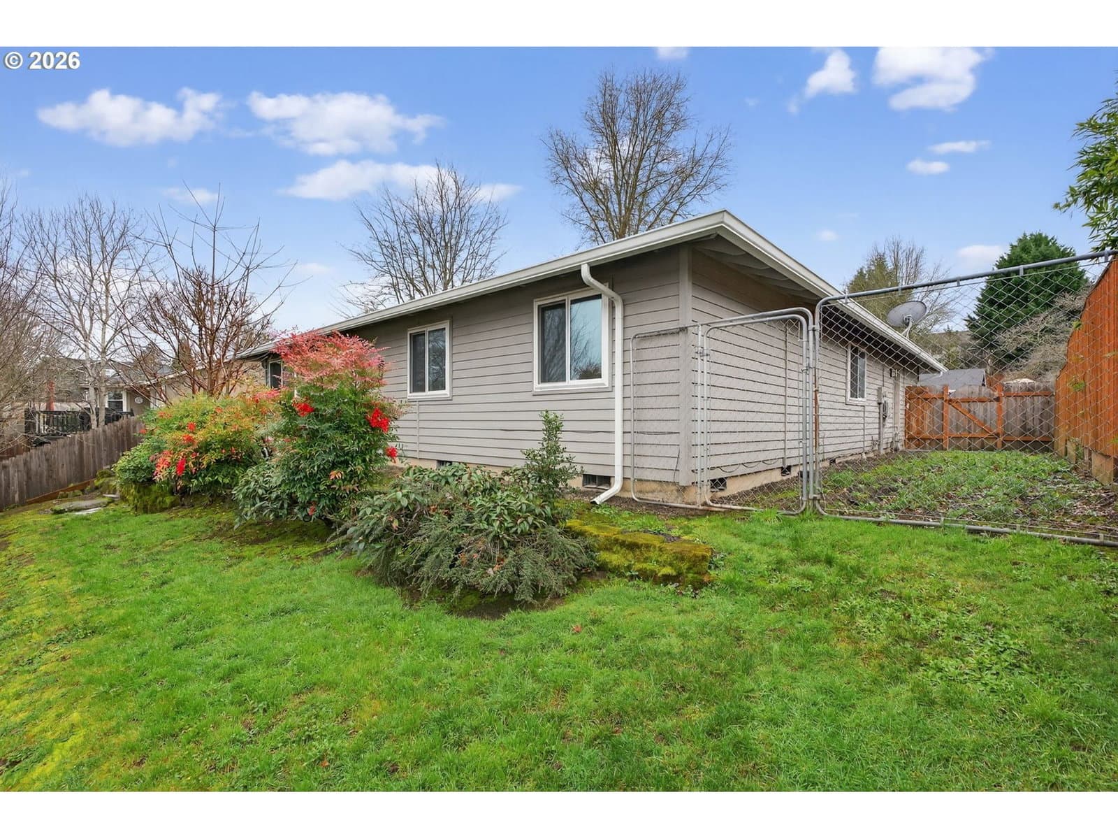 Charming one-level Beaverton ranch with extensive updates and outdoor space! This home features a huge living room with a beautiful bay window and engineered hardwoods. The kitchen has white cabinetry, pantry with pull out drawers, a tile backsplash and stainless steel appliances. The primary bedroom includes a ceiling fan, walk-in closet, barn door and an updated bathroom with quartz counters, soft close cabinets, new LVP flooring, and modern finishes. Laundry room with washer and dryer. Step outside to a fully fenced yard with a patio, dog run, and terraced garden. Extra-wide driveway with RV and boat parking. Recent upgrades include new dishwasher, AC, triple-pane windows and slider, water heater, kitchen sink, toilets, gutters, bathroom fan, Nest thermostat, insulation, vapor barrier, light fixtures, and more. All appliances included. Move-in ready, thoughtfully updated, and ideally suited for easy one-level living in Beaverton!
