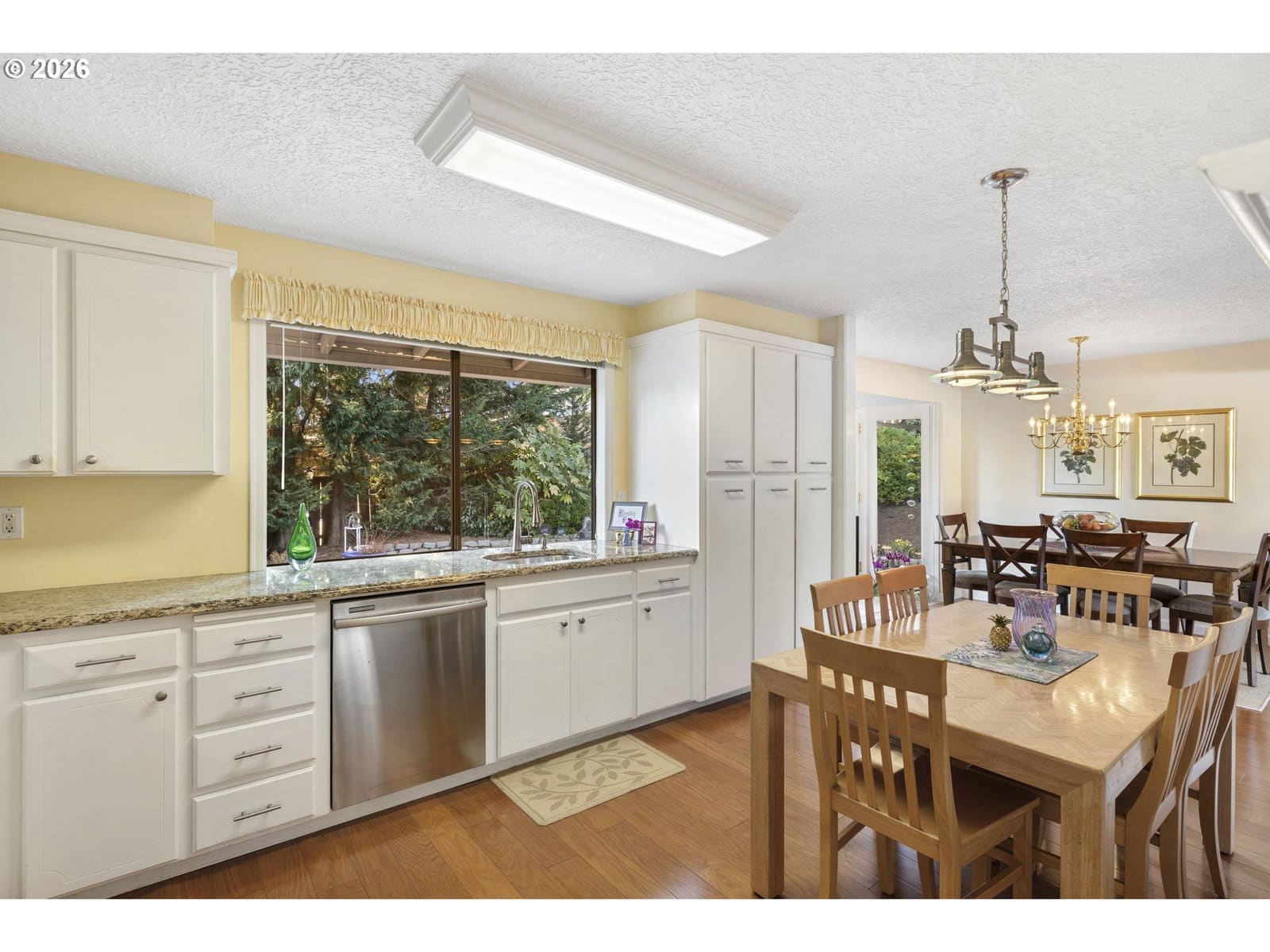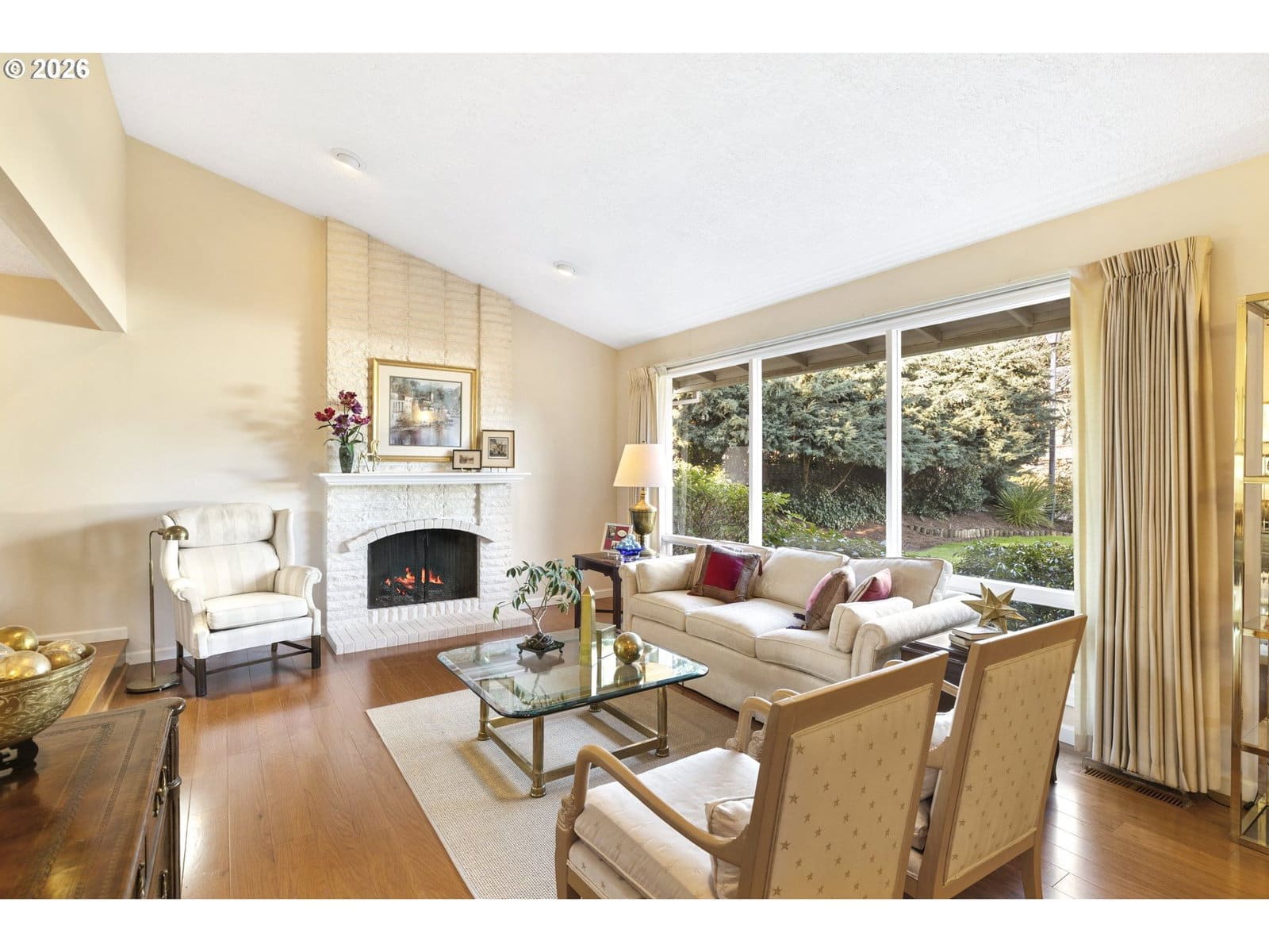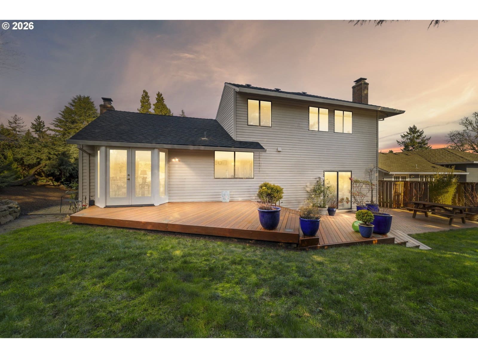 Located at the end of a cul-de-sac in a desirable Tigard, Oregon neighborhood, this home opens with a wide, vaulted entry that leads into a vaulted living room filled with natural light. Engineered hardwood floors carry through the main living areas and the two fireplaces create comfortable gathering spaces throughout the home. The kitchen features granite countertops, a built-in range, electric cooktop, and a window that looks out to the backyard creating an easy connection between indoor and outdoor living.The home offers 4 bedrooms and 3 full bathrooms, including a spacious primary suite with a walk-in closet and walk-in shower. An updated vinyl door provides easy access to the deck. Out back, a multi-level deck and patio are surrounded by mature landscaping, a decorative rock wall, and a water feature, making it a private and inviting setting. A 50-year roof adds lasting value. This is a well-cared-for home ready for its next chapter.