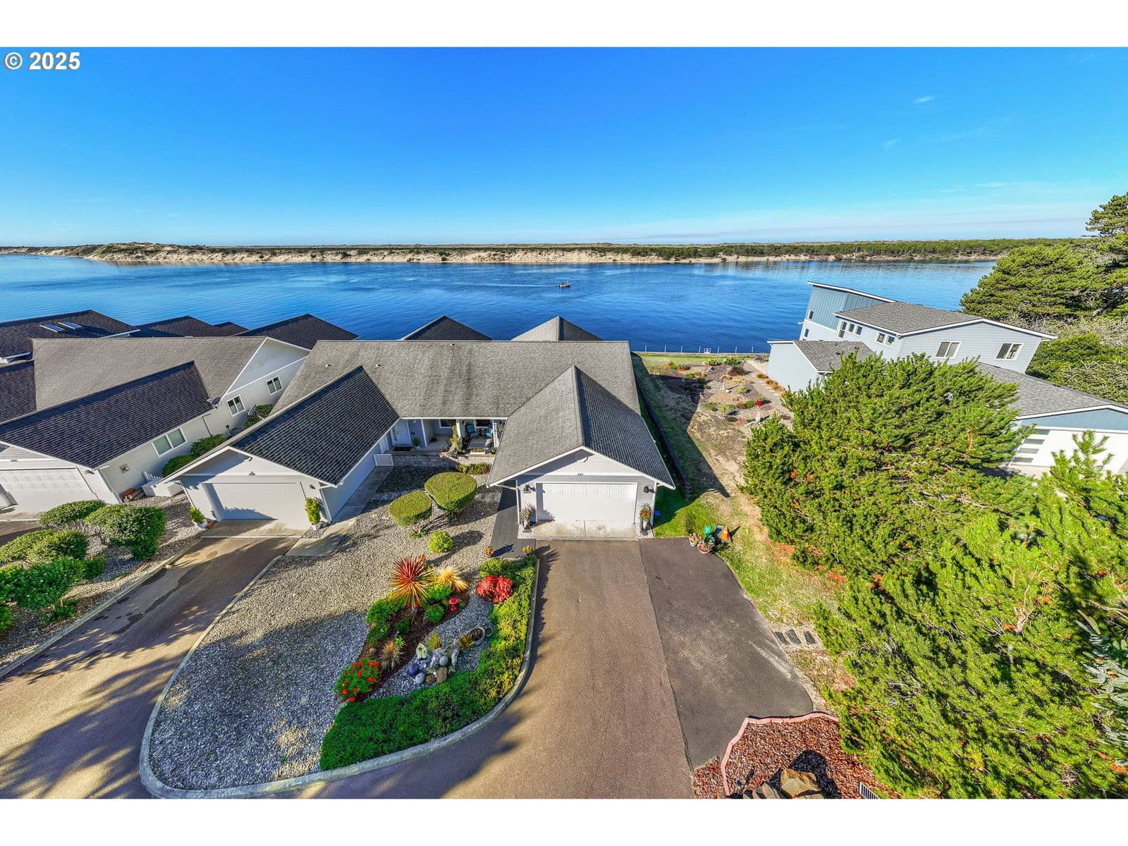 A must see light and bright Siuslaw River view home minutes from the Beach or Old Town. Enjoy breathtaking sunsets from your own covered patio or hot tub! River and Dune views from almost every room.Go crabbing on Marine Manor's brand new dock or just say Hi to the resident seals or visiting whales up close. Also, check out the great walkability next to the Florence Promenade Riverwalk. This home offers much storage in the laundry room for pantry use or home office needs. A Murphy bed in the 2nd bedroom saves space for office use or guest needs. Let the Central Vacuum System save you cleaning time to enjoy this well loved and beautiful home. Book your showing appointment today!