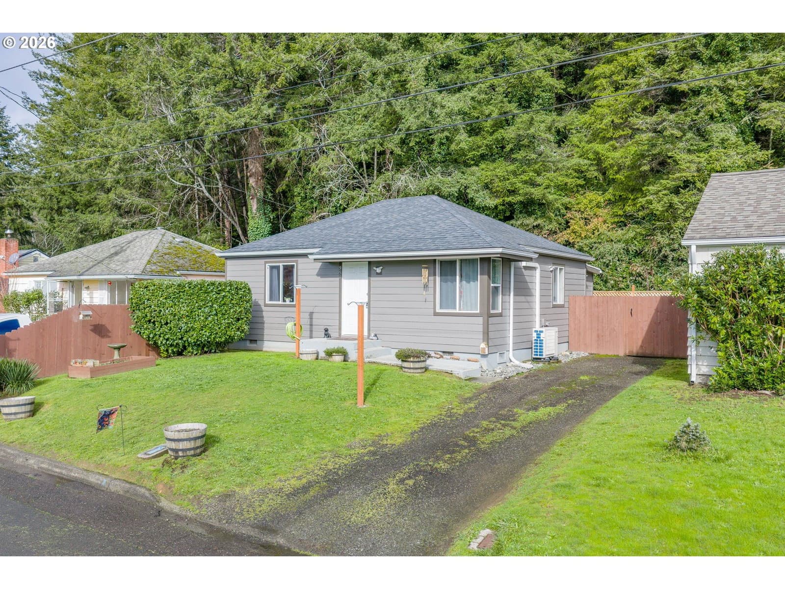 This could be the one! Charming 2 bedroom/1 bath home with nice updates for comfortable living and great location in Coquille! Updates include: mini split with 2 heads 2025, new flooring in kitchen and laundry 2024, new upgraded kitchen appliances Fall 2025, new exterior siding and paint 2024, storage shed/shop 12x12 in backyard new in 2022, and new backyard fence 2025. Call for a showing today. Listing agent is related to seller.