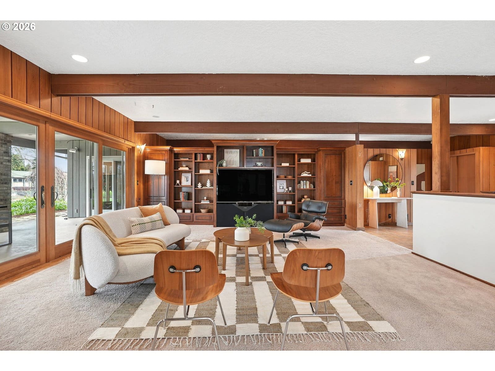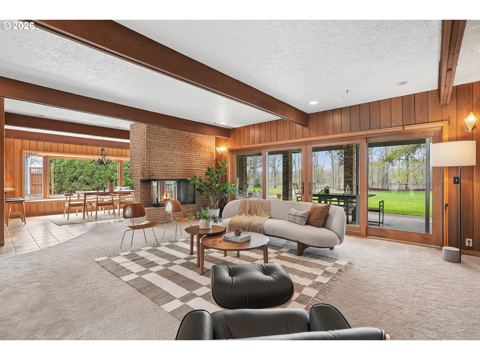 Rare riverfront property just over an acre situated on the Willamette. As you enter, you’re immediately drawn to the view, with abundant natural light, open entertaining spaces, and seamless indoor outdoor living. Exposed beams, built-ins, and a Frank Lloyd Wright inspired interior highlight this custom 1955 home, crafted with hand selected materials by the original owner of a milling company. Beautiful vintage features throughout or bring your own vision and updates. The main level features a chef’s kitchen, gas range, granite countertops, and a dining area with a built-in seating nook framed by large windows. Primary ensuite with water views and patio access, plus updated windows throughout. The lower level daylight basement offers high ceilings, French sliding doors, and a dedicated kitchenette with ADU potential, ideal for extended living, guests, or flexible use. Step outside to a covered outdoor living area with skylights and a gas fireplace, creating a true extension of the home. Beautiful landscaping, privacy, while the terraced, level yard provides easy access to the water and space to enjoy the setting and views. Attached 2 car garage. Generous square footage, see floorplan for layout and flow. Keizer Rapids Park less than 5 minutes away, boat launch, pickleball, golf, and local wineries. Less than an hour to Portland. Twilight open house Thursday 4/9 4:00 PM - 6:00 PM and Saturday 4/11 10:00 AM - 12:00 PM.