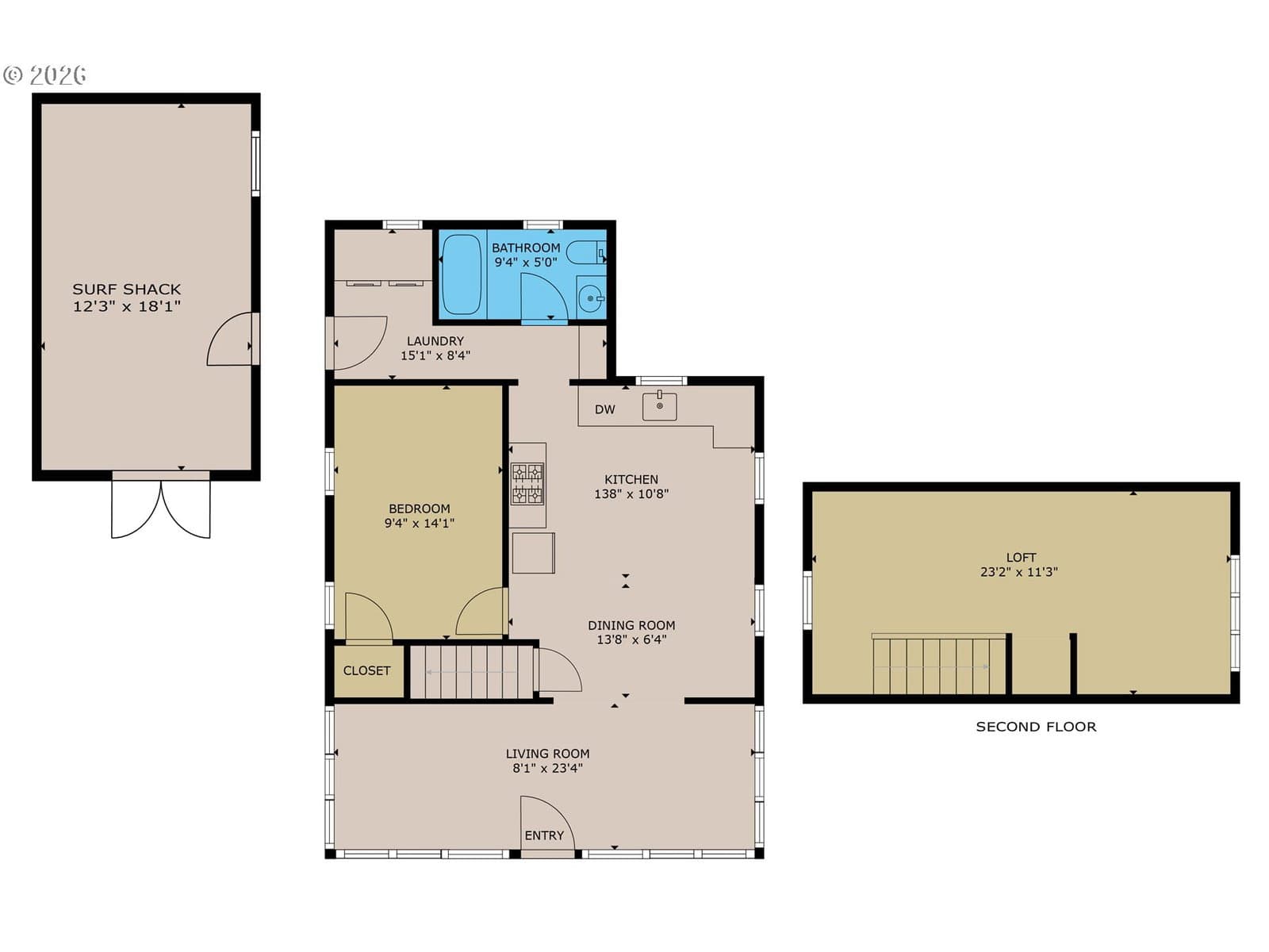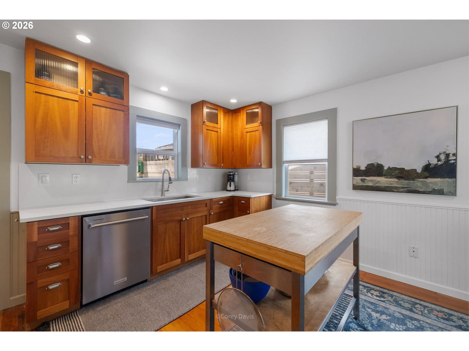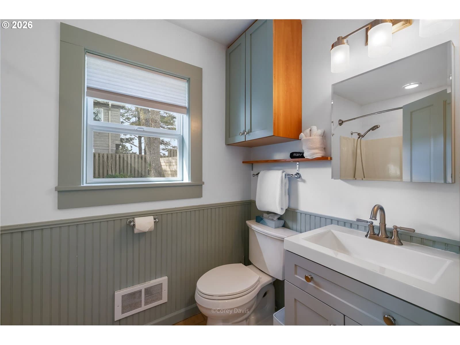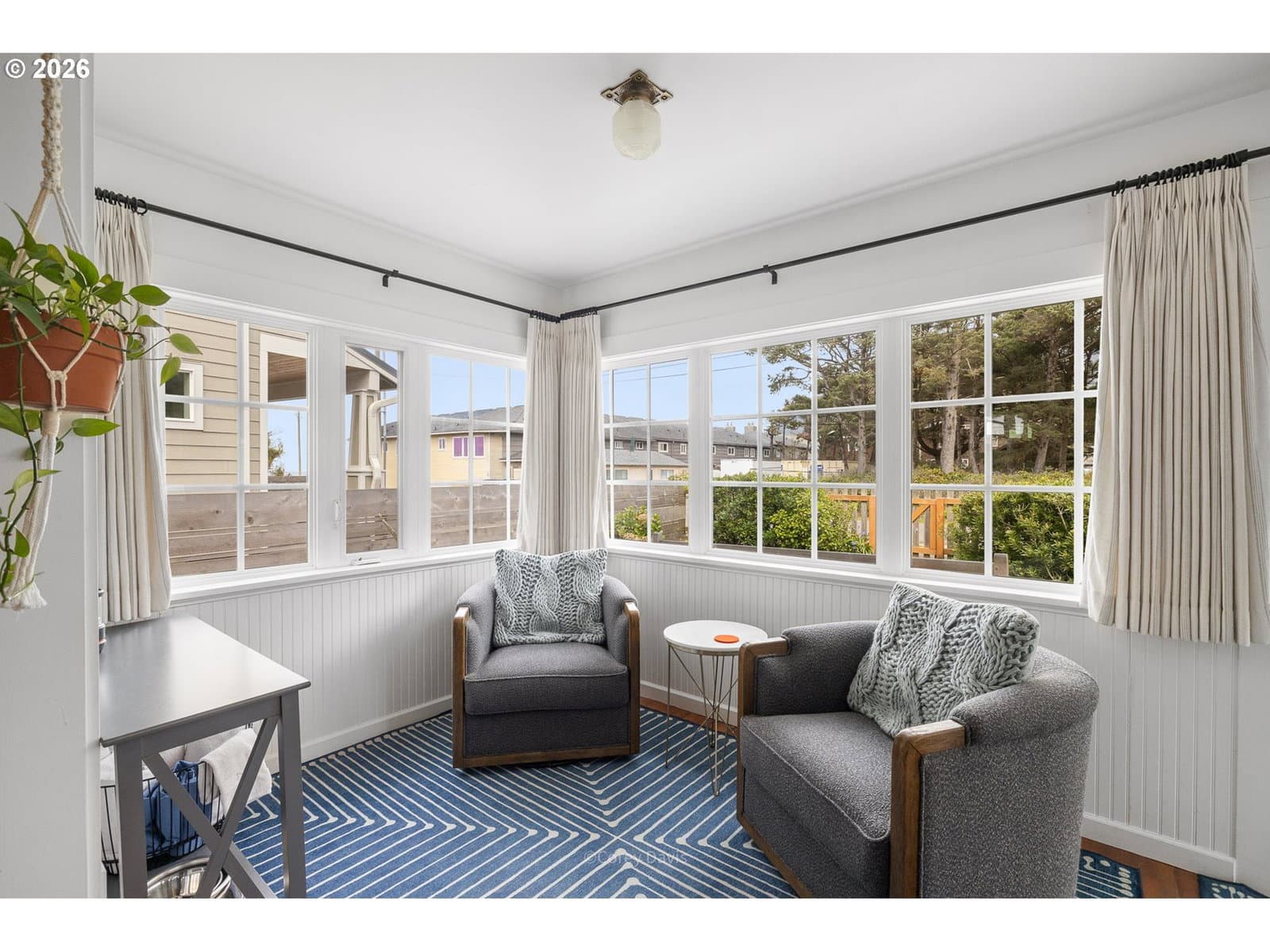 Full of vintage character, this darling 1929 Manzanita cottage sits just half a block from the beach and one block from downtown in a truly walk-everywhere location. Featuring original fir floors, ocean views from the living room and front yard, updated with modern comforts, including a mini-split in the bedroom for heating and cooling. Fully fenced yard is ready for your four-legged beach buddy. Outdoor shower, generous parking, and ample decking make beach living easy. Detached semi-finished garage has been converted into a fun surf shack-style bonus space. Fully furnished and sold turnkey.