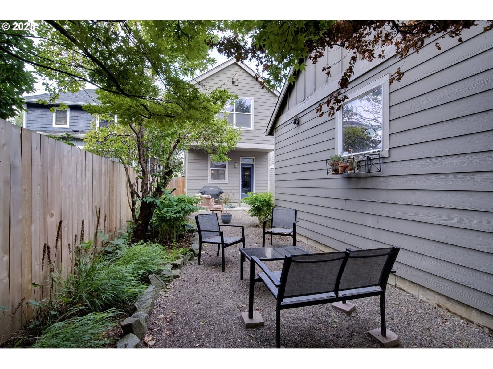 Welcome to this updated 2bed, 2bath residence offering 1,275 sq ft of thoughtfully designed living space across two levels and over $100,000 in upgrades. Perfectly positioned in a coveted NE area, this home combines timeless character with modern sophistication, all within walking distance to Irving Park, local eateries, and vibrant neighborhood amenities.From the moment you arrive, the curb appeal abounds with a manicured garden framed by a charming fence and an inviting covered front porch. Inside, the main level features rich new hardwood floors and sun-filled living spaces that exude warmth and comfort. The stylish kitchen impresses with gleaming white quartz countertops, modern cabinetry, and finishes; ideal for both everyday living and entertaining.The living room centers around an updated gas fireplace, offering a cozy space to unwind. A updated air conditioning system ensure comfort. while thoughtful updates throughout highlight the home’s meticulous care.The primary suite offers a serene retreat with a luxurious walk-in shower, contemporary fixtures, and garden view. Ample storage is found throughout the home, ensuring practicality without sacrificing style. Upstairs, soft new carpeting complements two spacious bedrooms and two beautifully appointed bathrooms.Outdoors, the private backyard offers a true urban sanctuary with lush landscaping, a charming sitting area, and plenty of room for entertaining. A single-car garage—detached yet fully divided for exclusive use, adds value and convenience.Every detail of this home has been crafted for effortless elegance and livable comfort. Experience the best of NE Portland living, where classic charm meets modern luxury. [Home Energy Score = 7. HES Report at https://rpt.greenbuildingregistry.com/hes/OR10144908]