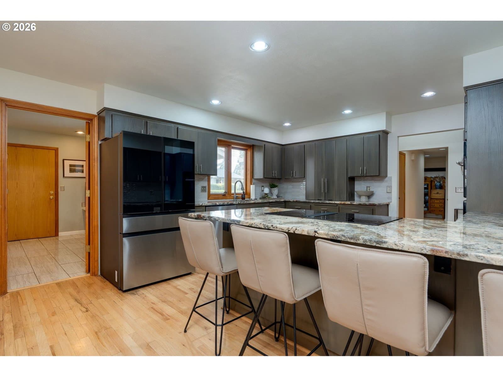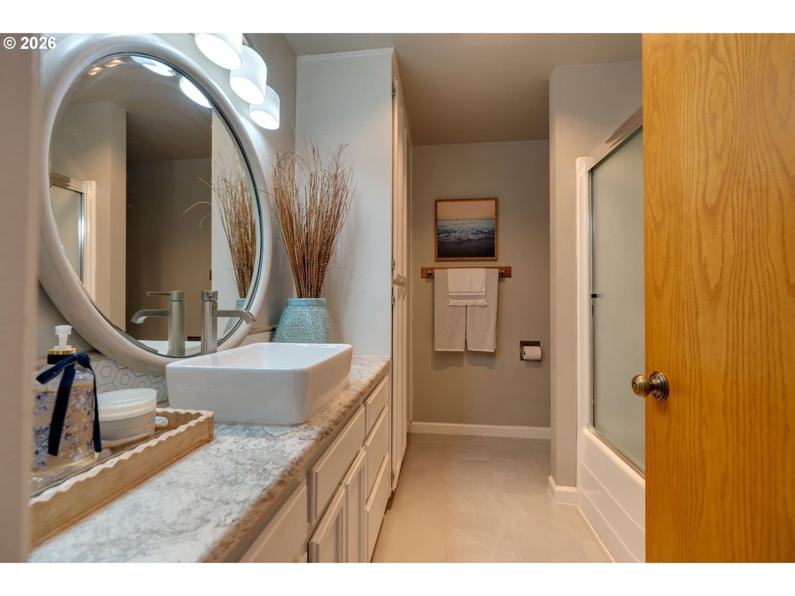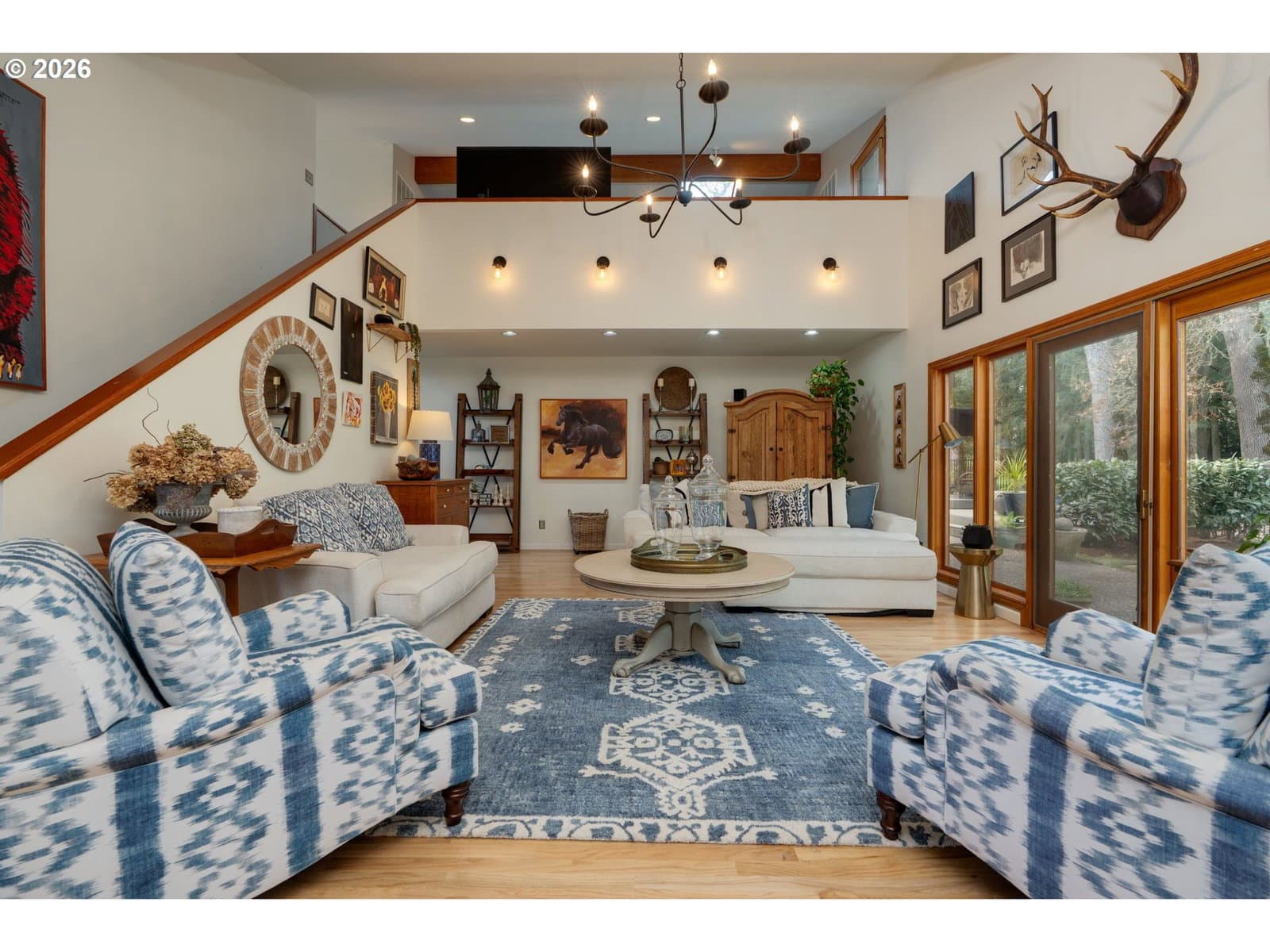 Entertainer's dream home! Located in one of the most desirable, private neighborhoods in McMinnville, you will love coming home as you drive through the heart of a golf community. This is one of the largest homes in Michelbook's 4th Addition, and features a loft for extra room. You'll look out at the 3rd tee in your over-sized living room, featuring vaulted ceilings and a wall of windows. When it's cool, stay cozy with your wood burning stove. Extensive updates, including hard wood flooring, carpet, tiled laundry room and bathrooms, and granite counter tops in the kitchen and bathrooms. Huge primary bedroom with slider to backyard. Luxurious, spa-like primary bath with stand alone soaking tub, heated floor, double sinks and sky lights. Two hot water heaters means you'll never run out of hot water. The outdoor living areas are set among the tall trees, featuring a two-level composite deck, extended patio with tiles, and a beautiful garden courtyard entry with fountain. Nature lovers will enjoy the 75' of golf course frontage, watching the deer, squirrels and birds in your backyard. Large lot and driveway gives you room to spread out. Owners are licensed real estate brokers.