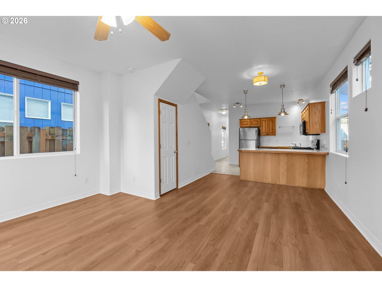 Adorable Kenton home freshly updated and move-in ready. The main level offers a classic, open floor plan with brand-new interior paint, new laminate flooring, and great natural light throughout. The kitchen features counter seating, a new gas range, direct-vent microwave, and a new sink with garbage disposal; perfect for everyday cooking or casual entertaining. Upstairs, newly installed carpet leads to two comfortable bedrooms, a full bathroom with a skylight, and a spacious primary bedroom with vaulted ceilings, generous closet space, and its own en-suite bath. The one-car garage includes high ceilings for extra storage plus a dedicated laundry area. Located just two blocks from Trenton Park and under a mile to Kenton’s vibrant main street with restaurants, cafés, and shopping, this home offers convenience, comfort, and a fantastic neighborhood setting. See our virtual tour links for more information! [Home Energy Score = 6. HES Report at https://rpt.greenbuildingregistry.com/hes/OR10243722]