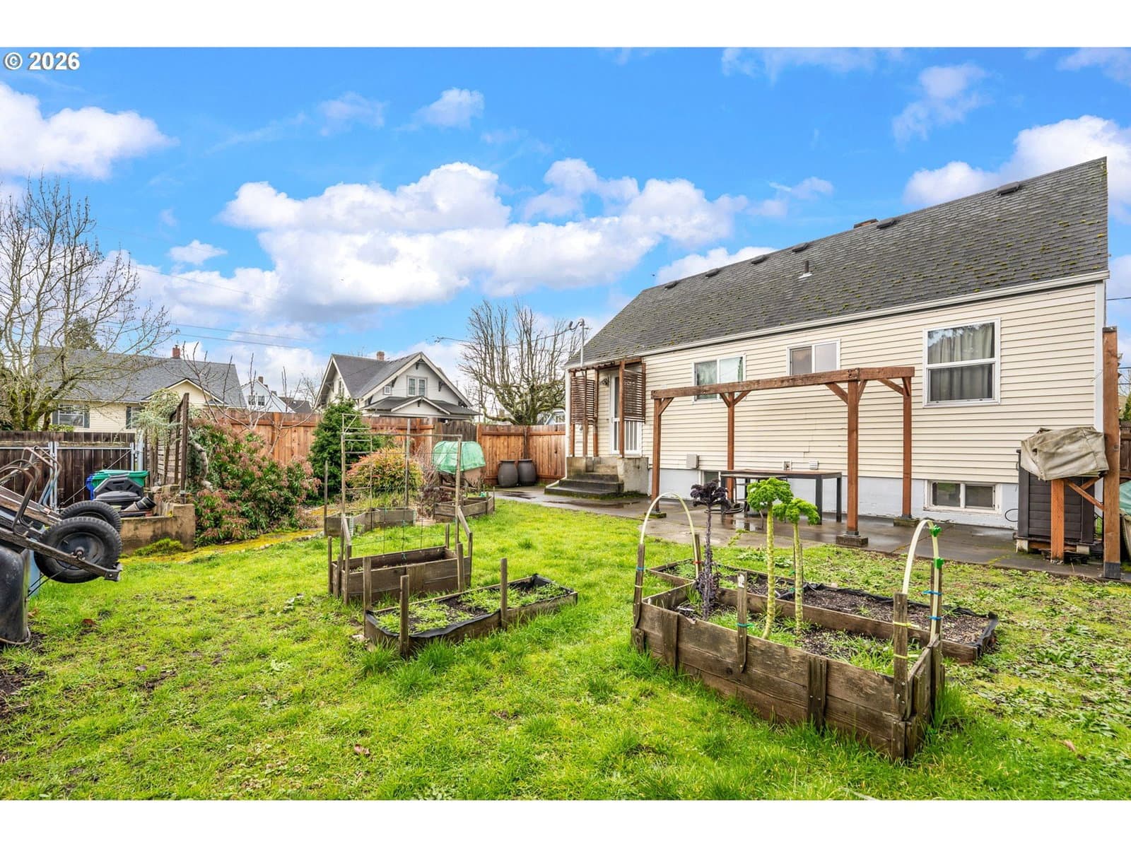 This early Valentine on NE Jarrett is sure to steal your heart! Located mere blocks from the bustling gastronomic delights of Hat Yai, Podnah's BBQ, and No Saint--you'll never go hungry if cooking is not your thing. But let's face it, given the amazing gardens on this property, you are bound to be cooking some earthly delights for all of your friends and would-be Valentines. Can you say vine-ripened tomato three times fast? Inside, the delightful living room with hardwood floors, big picture windows, and cheery fireplace begs a good whiskey to be poured, and a serious discussion about whether the best tacos in Portland are to be found in NOPO, NE or SE to ensue. Two bedrooms and a remodeled bathroom are tucked in the back for privacy. Both the kitchen and the full bathroom were recently remodeled. The large attic space is the perfect oversized 3rd bedroom; and it stands to reason that with the right vision, architect, and pocketbook--another bathroom could be added to create a delish primary suite. The lower level features the original bar. After all when laundry had to be done in the 1940's, someone did need a stiff drink. The same holds true today. That's why we have Kombucha. Whether you are looking for storage, or true sweat equity, this basement has the ceiling height to recommend charging up those power tools. Don't delay! OPEN HOUSE HAS BEEN CANCELLED--SELLERS RECEIVED MULTIPLE OFFERS. [Home Energy Score = 3. HES Report at https://rpt.greenbuildingregistry.com/hes/OR10244298]