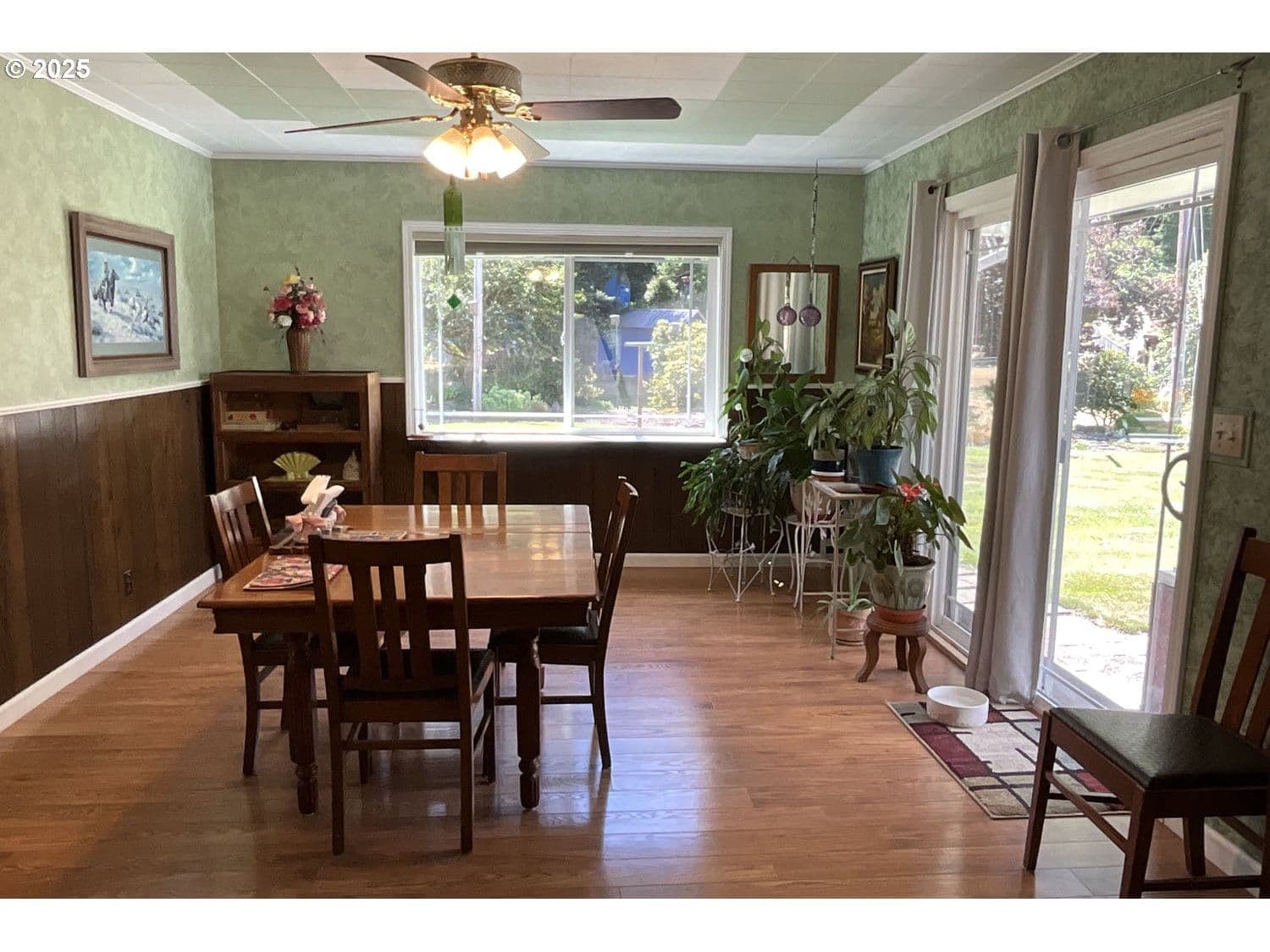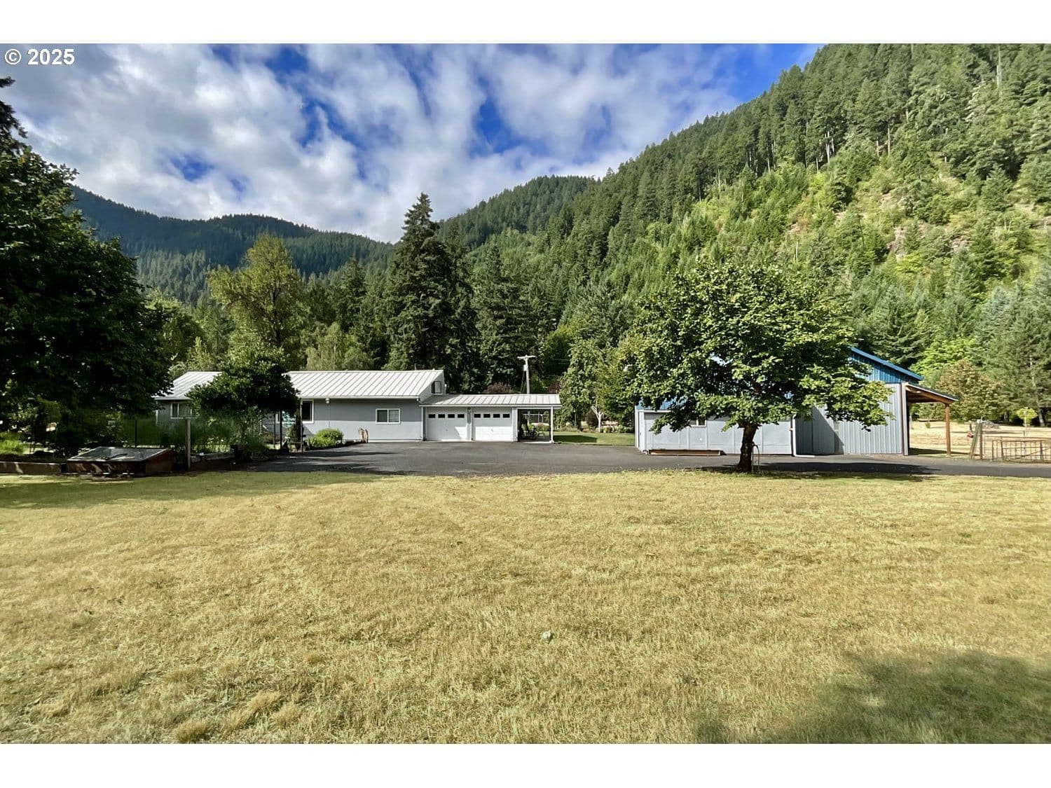 Come Home To Country Living on this beautifully maintained fully fenced 1.88 Acres just 30 minutes from I-5. Featuring Hickory floors in the bedrooms and spacious living room with mountain views from nearly every room. The family room offers dedicated office space, a wood stove, tile flooring, a storage room, and a Vintage Oak Frigidaire Commercial Ice Box transformed into unique cabinetry. The main bathroom has tile flooring, shower surround, counters and accent details. The kitchen has tile counters, oak flooring, a pantry, built-in microwave, dishwasher, and a skylight provides natural light. Adjacent to the kitchen, the 18'x14'dining room opens up to multiple patio areas, including a pergola just outside the sliding glass doors. The home is protected by a steel roof and cement fiber siding. Heated and cooled with forced air, and enhanced by a 3.2 KW Grid-Tied Solar System & Solar Water Heater for energy efficiency. A 23'x20'attached garage with dual openers opens to its own covered patio leading to the 1,600 SQ.FT. SHOP with its own heating system, a 360 sq ft workshop featuring a hoist, a metal topped workbench, vice, and a 10' garage door. The garden/potting room and storage areas are rounded out with a 960 sq ft area suitable for all your toys and/or RV! Nicely landscaped yards include sprinklers, gardens, 20'X19' barn/workshop with 220V and large loft. A new complete septic system installed late 2025. All this minutes from skiing, hiking, mountain biking, disc golf, hunting and fishing. Must See Property, so make your appointment today!
