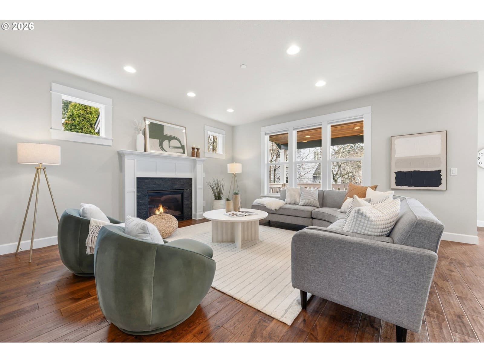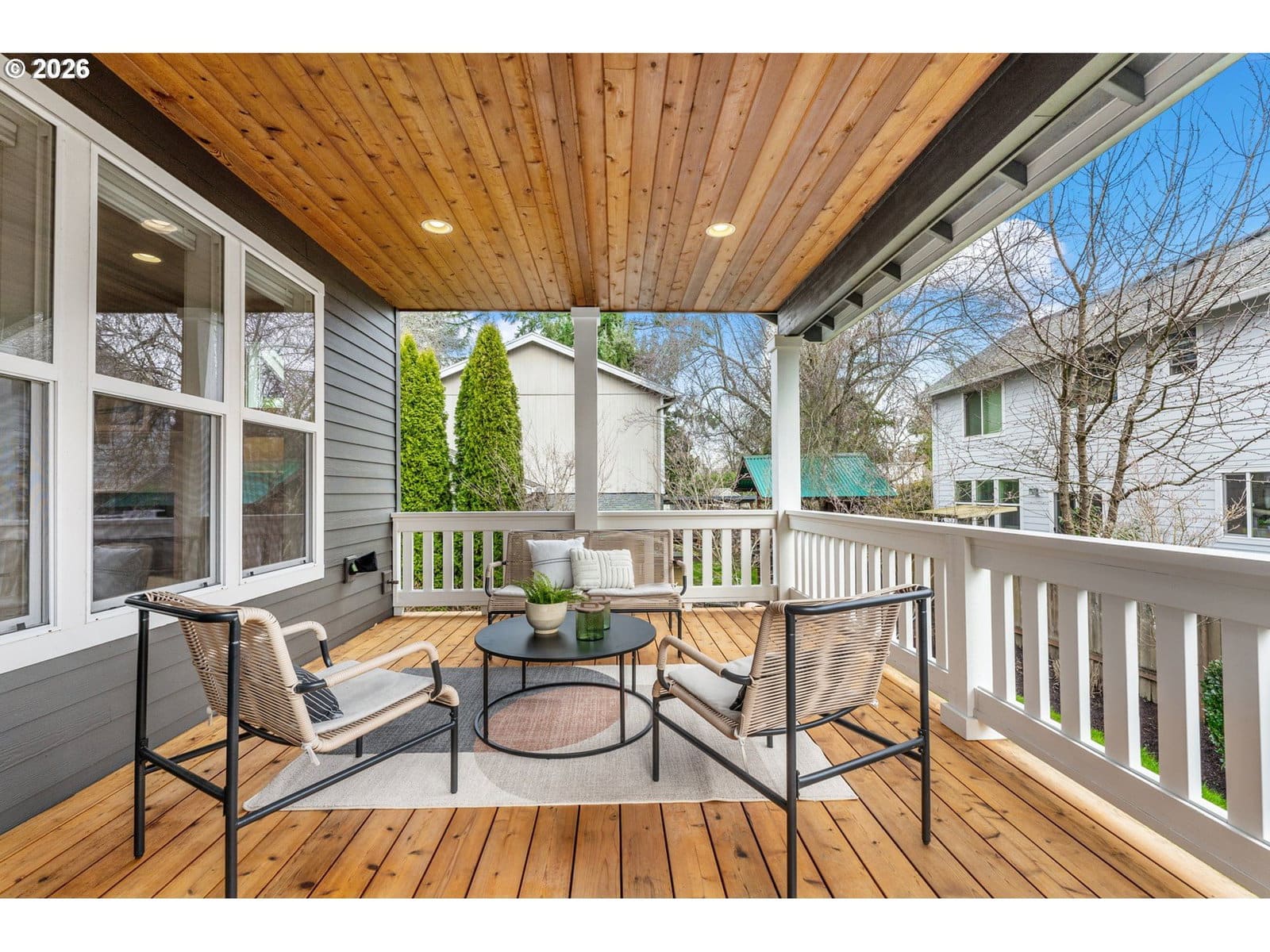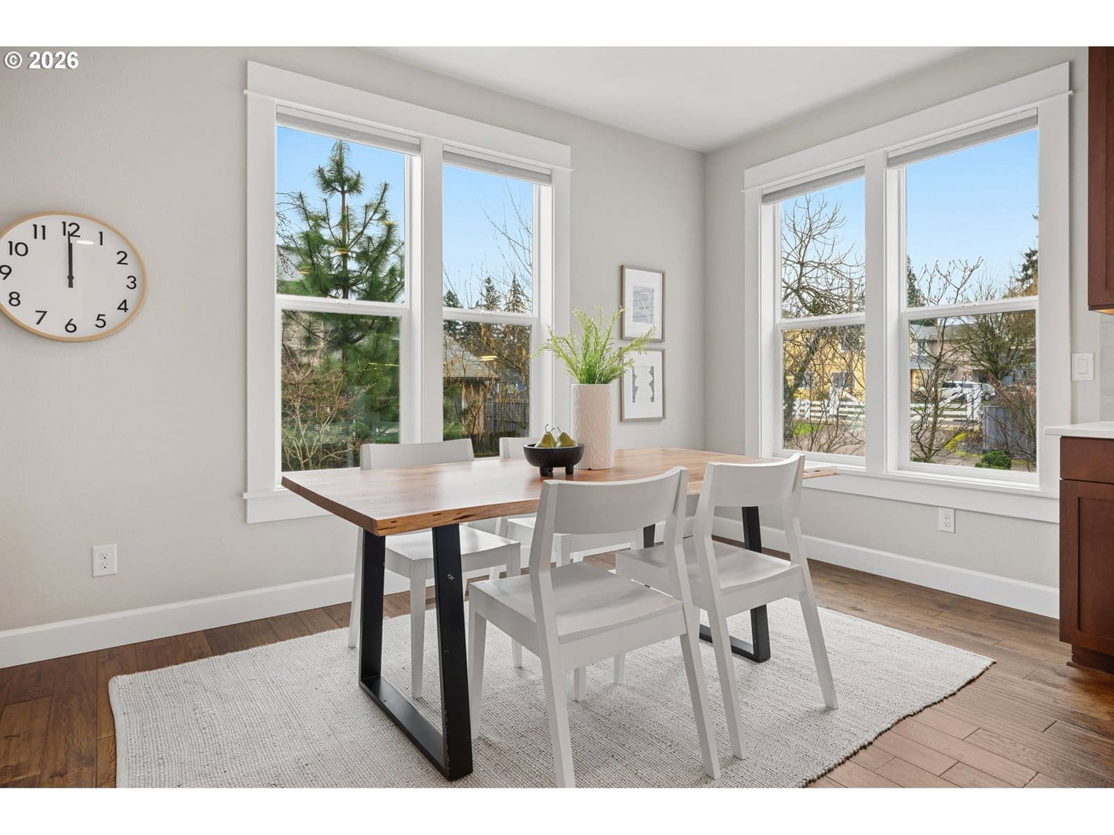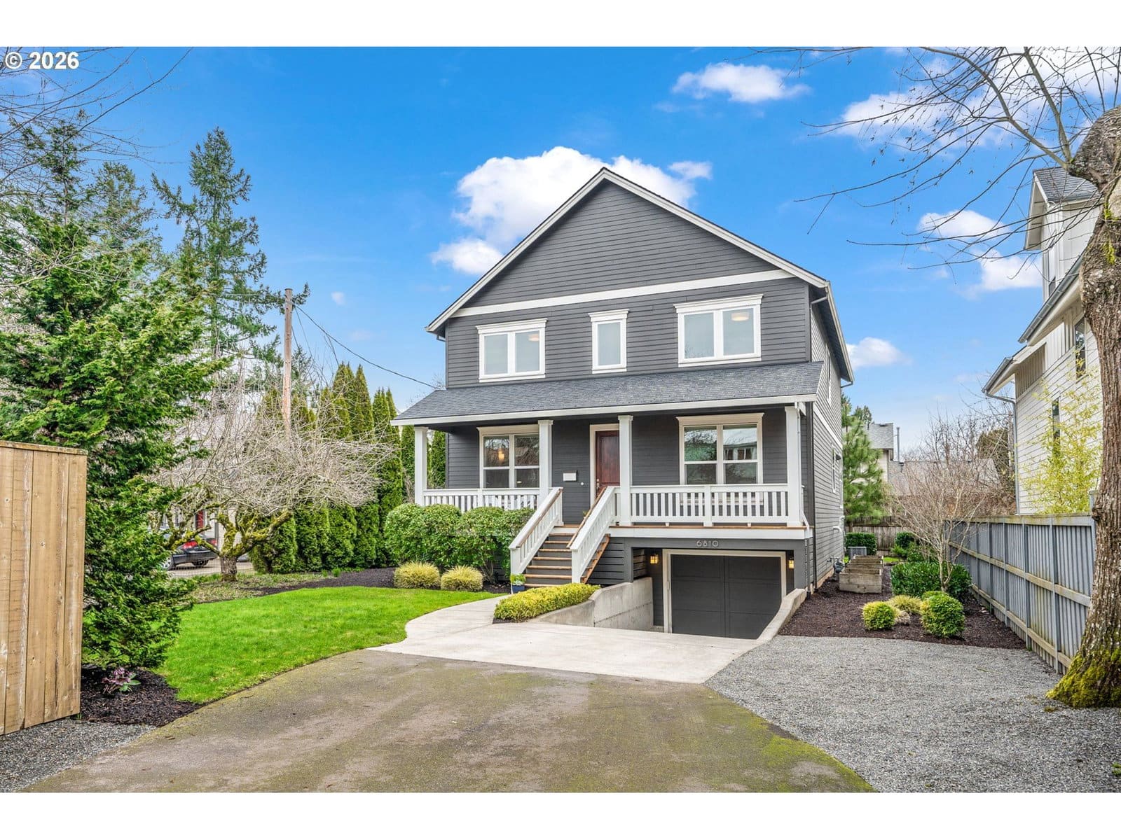 Whisper quiet in Woodstock! Stunning Craftsman-style sanctuary beckons from a private lot amid lush lawns, fruit trees and gardens. Inside, classic elements such as wainscoting and rich-hued hardwood floors combined with a modern floorplan elevate this stately gem. High ceilings and picture windows lend elegance to the formal living and dining rooms. The great-room kitchen forms the heart of this home - offering a copiously sized quartz prep island/eat bar, casual eating area, and butler's pantry. The kitchen sits perfectly adjacent to the family room for a truly communal experience. Step outside to the ample, covered deck for espresso sunrises amid a flourish of fruit trees. Or have an evening meal with a glass of Oregon Pinot on one of those endless summer evenings. For rest, the upstairs provides 4 bedrooms including the pamper-worthy, primary suite replete with tray ceiling, slate flooring, glass & tile shower, walk-in closet and sumptuous soak tub. A laundry room with tile floor, sink and built-ins is conveniently located upstairs as well. For remote workers, the downstairs offers an amazing flex-space: home office, personal gym or 5th (guest) bedroom including closet, concrete floor and egress window. This private lot also features extra parking space, a tuck-under garage and is just blocks to thriving Woodstock: New Season's Market, Grand Central Bakery, food carts, Sunday farmer's market, and easy proximity to Division/Hawthorne/Belmont foodie scene. All of this, just blocks to several parks including Woodstock Park, Brentwood Park and Eastmoreland Golf Course. Easy downtown commute and PDX airport. [Home Energy Score = 5. HES Report at https://rpt.greenbuildingregistry.com/hes/OR10244130]