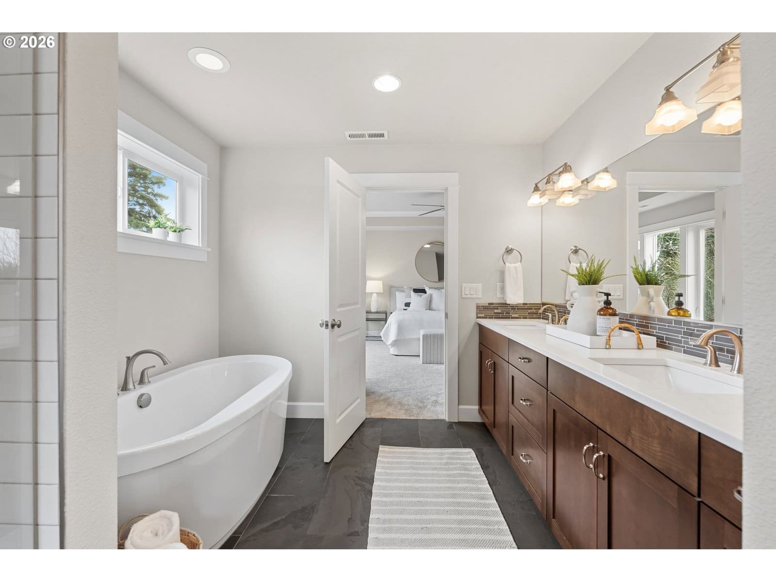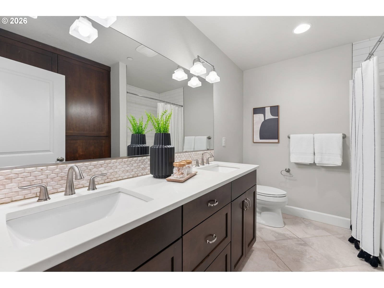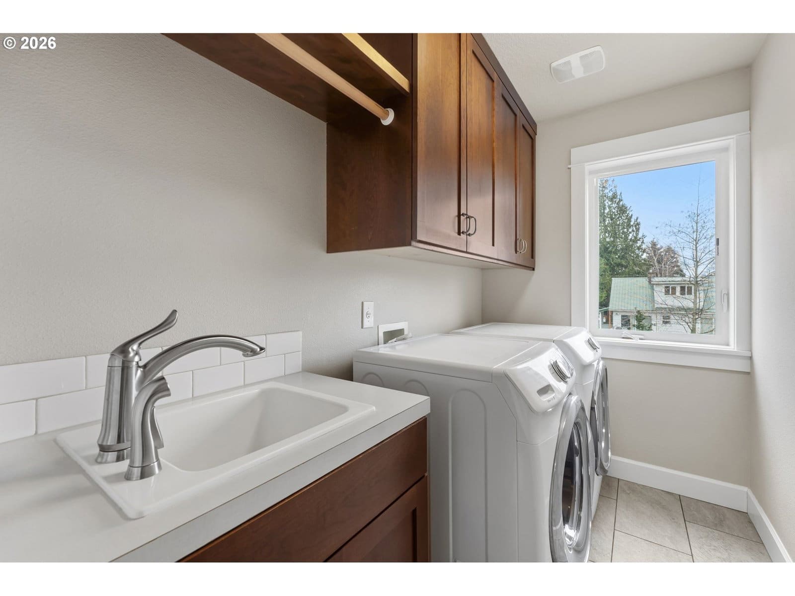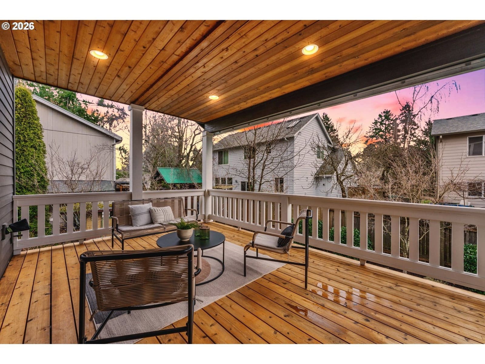 Whisper quiet in Woodstock! Stunning Craftsman-style sanctuary beckons from a private lot amid lush lawns, fruit trees and gardens. Inside, classic elements such as wainscoting and rich-hued hardwood floors combined with a modern floorplan elevate this stately gem. High ceilings and picture windows lend elegance to the formal living and dining rooms. The great-room kitchen forms the heart of this home - offering a copiously sized quartz prep island/eat bar, casual eating area, and butler's pantry. The kitchen sits perfectly adjacent to the family room for a truly communal experience. Step outside to the ample, covered deck for espresso sunrises amid a flourish of fruit trees. Or have an evening meal with a glass of Oregon Pinot on one of those endless summer evenings. For rest, the upstairs provides 4 bedrooms including the pamper-worthy, primary suite replete with tray ceiling, slate flooring, glass & tile shower, walk-in closet and sumptuous soak tub. A laundry room with tile floor, sink and built-ins is conveniently located upstairs as well. For remote workers, the downstairs offers an amazing flex-space: home office, personal gym or 5th (guest) bedroom including closet, concrete floor and egress window. This private lot also features extra parking space, a tuck-under garage and is just blocks to thriving Woodstock: New Season's Market, Grand Central Bakery, food carts, Sunday farmer's market, and easy proximity to Division/Hawthorne/Belmont foodie scene. All of this, just blocks to several parks including Woodstock Park, Brentwood Park and Eastmoreland Golf Course. Easy downtown commute and PDX airport. [Home Energy Score = 5. HES Report at https://rpt.greenbuildingregistry.com/hes/OR10244130]