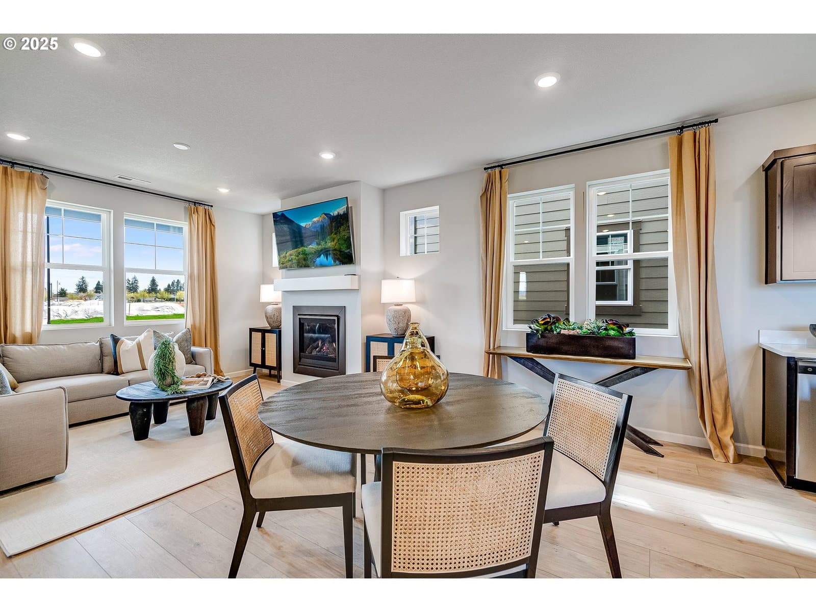 Welcome to Meadowview by Lennar. The new construction Clark plan offers a spacious two-story layout designed for comfort and connection. The main level features an open-concept kitchen, dining nook, and fireplace-warmed great room that opens to a covered patio for easy indoor-outdoor living. Upstairs are four bedrooms, including the inviting primary suite with an ensuite bathroom featuring a soaking tub and shower, double vanity, and walk-in closet. Interior highlights include quartz countertops, Shaker-style cabinets, LVP (luxury vinyl plank) flooring in the kitchen and entryway, LVT (luxury vinyl tile) flooring in the bathrooms, and two-tone interior paint. This home also comes complete with central air conditioning, a refrigerator, washer and dryer, and blinds—all at no extra cost. Nestled in a peaceful community surrounded by protected wetlands, Meadowview offers walking access to local parks and trails, as well as nearby grocery stores, schools, and restaurants. Downtown Eugene’s vibrant shopping, dining, and entertainment options are within easy reach, and the University of Oregon provides added opportunities for education and professional growth. With the Willamette River, Fern Ridge Lake, and the Oregon Coast all close by, outdoor recreation abounds. Rendering is artist conception only. Photos are of a similar home, features and finishes will vary. Estimated completion: March 2026 Home Site 9