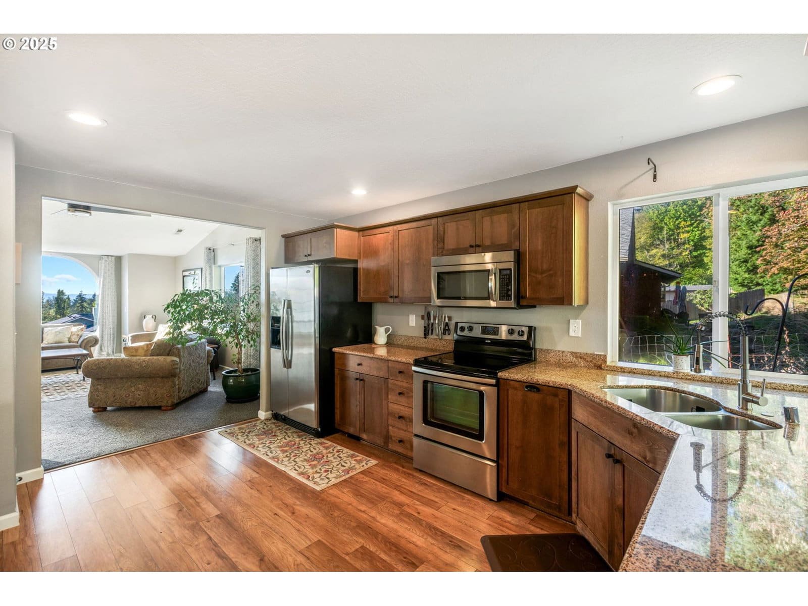 Beautiful well maintained 3 Bedroom, 2Bathroom Ranch Home. This charming single level home offers an inviting open layout with a spacious living room with an electric fireplace and vaulted ceilings. The kitchen features a large island with seating for three, stainless steel appliances, wood cabinets and elegant granite countertops. The adjoining dining area has a slider to a fully fenced backyard with a private concrete patio which is perfect for relaxing or entertaining. Enjoy luxury vinyl plank flooring throughout the main living spaces and plush carpeting in the bedrooms. The primary suite includes a walk-in closet, soaking tub, and separate shower for added comfort and style. Located near schools, shopping and restaurants. OPEN: Sat 10/18 1-3pm