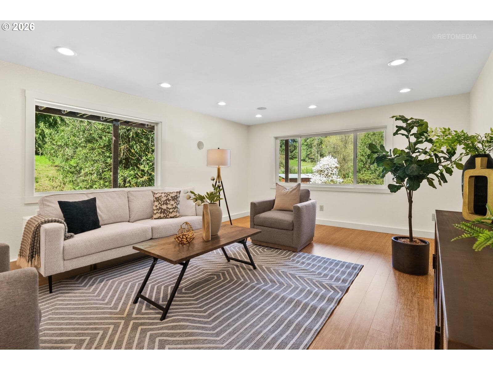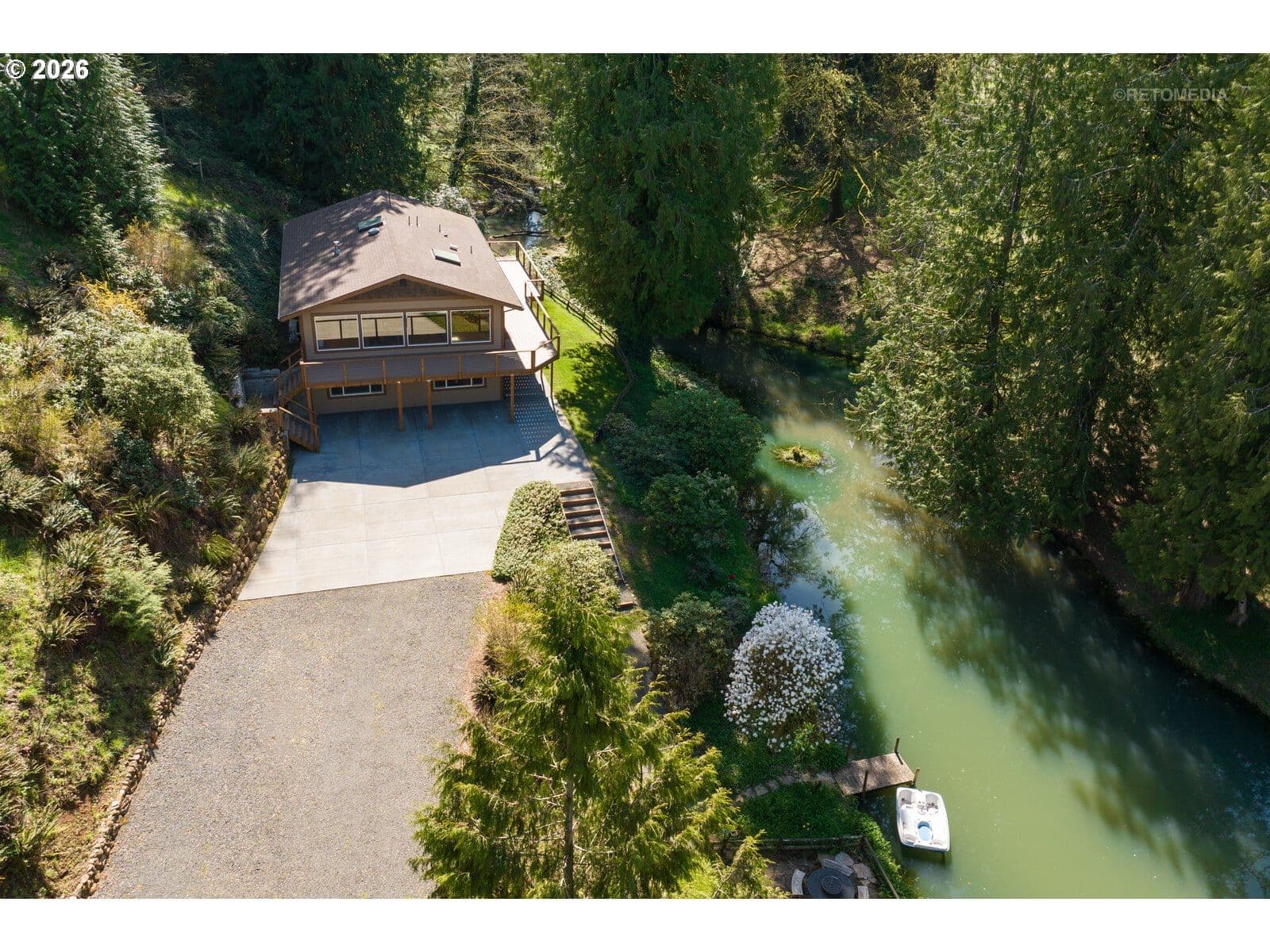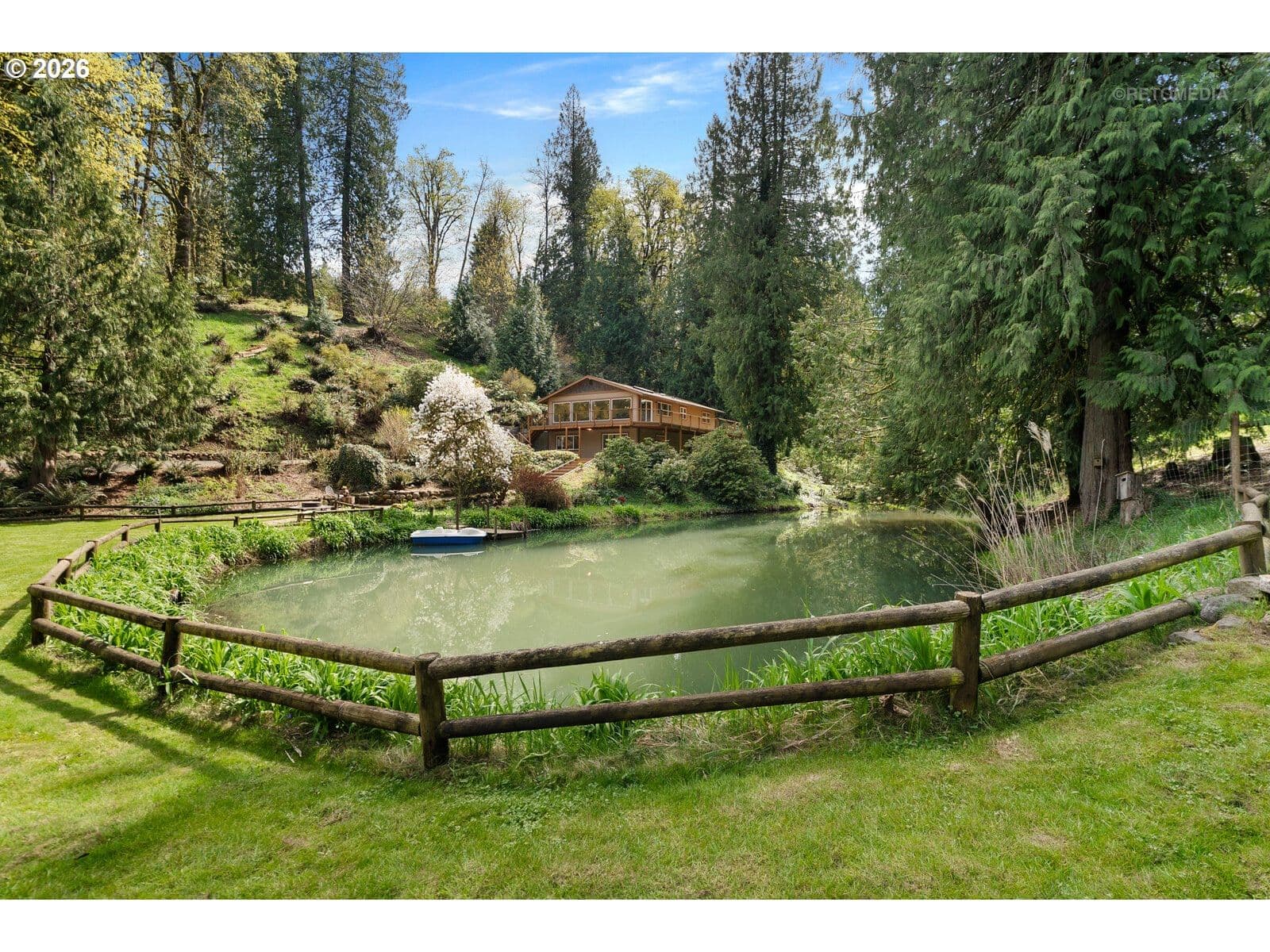 A private sanctuary at the edge of Newberg and Sherwood, this custom 4 bed, 3 bath estate offers over 3,300 square feet and the kind of privacy most people only dream about. Behind a gated entrance, 7 park-like acres live far larger as the property sits adjacent to an 80 acre protected forest area, giving you endless views and peace. The land here invites you to explore, unwind, and play with a gorgeous creek fed private pond, waterfall, chicken coop, hot tub, private trails for hiking or ATVs, and open spaces under a canopy of trees that change with every season. Extensively refreshed inside and out, this custom home is designed to pull the outdoors in with walls of windows, vaulted living spaces, timeless quality updates, and a natural flow that works just as well for quiet mornings as it does for hosting a crowd. Recent major upgrades, including the furnace, deck, and driveway, mean the big projects are already handled so you can simply enjoy the home and focus on your next adventure. A detached flex space expands how you live and work, offering an ideal executive office, creative studio, guest space, or potential bunkhouse, plus additional shop area for projects and storage. Outside, the land invites you to explore, unwind, and play with a gorgeous creek fed private pond, waterfall, chicken coop, hot tub, and open spaces under a canopy of trees that change with every season. Tucked in the heart of Oregon wine country, you are less than 10 minutes to The Allison Inn & Spa and acclaimed area vineyards, with about a 35 minute drive to Portland for commuting, dining, and culture. This is rare, refined country living, with nearby Newberg and Sherwood Oregon amenities making life here feel balanced; schedule a visit, walk the property and experience the magic yourself. Versatile detached flex building offering bonus space along w/adjoining shop, ideal for office, studio, possible future guest overflow or bunkhouse, plus storage for tools, toys and year round projects. The den is heated/finished and features 376 SF