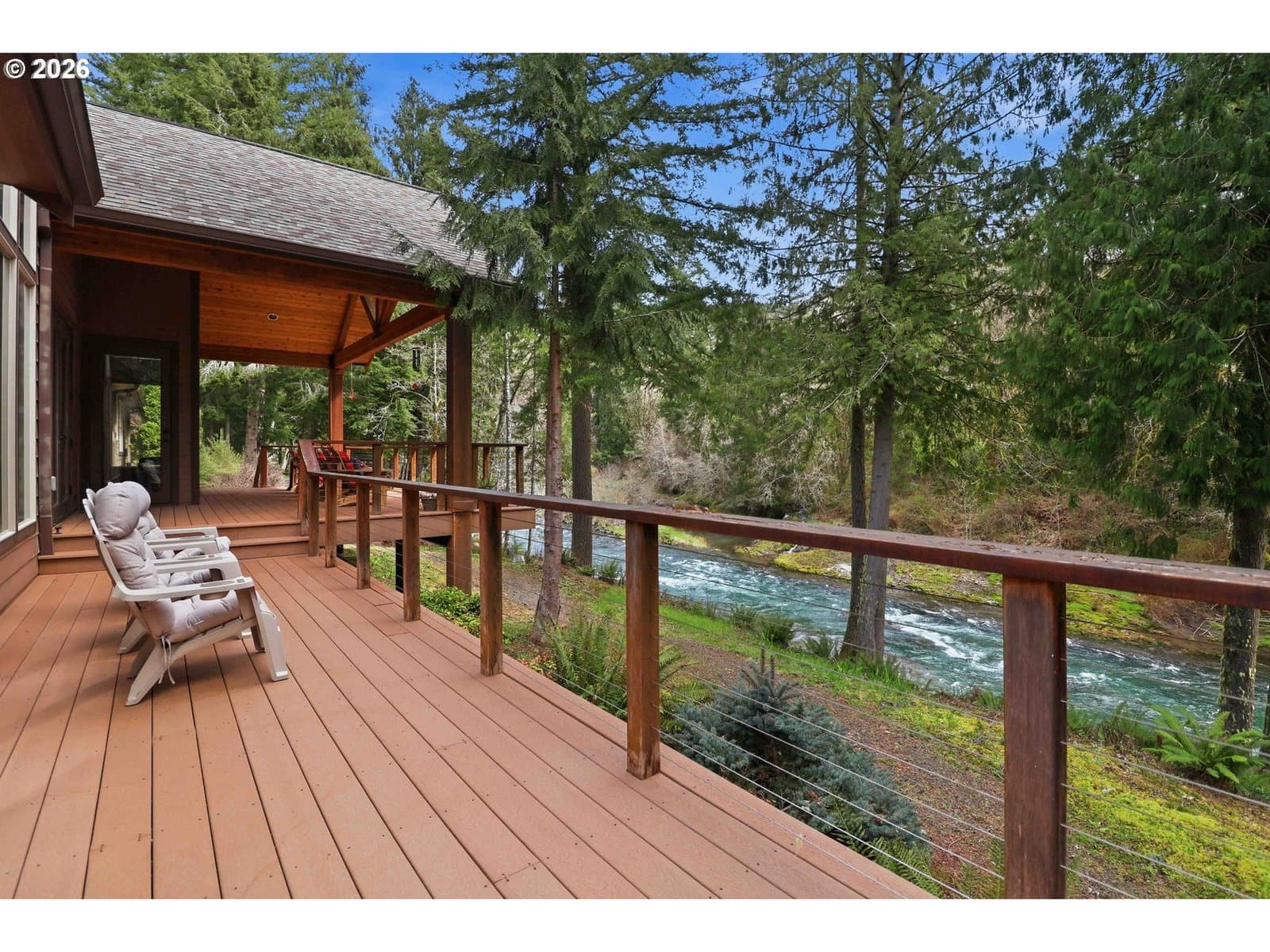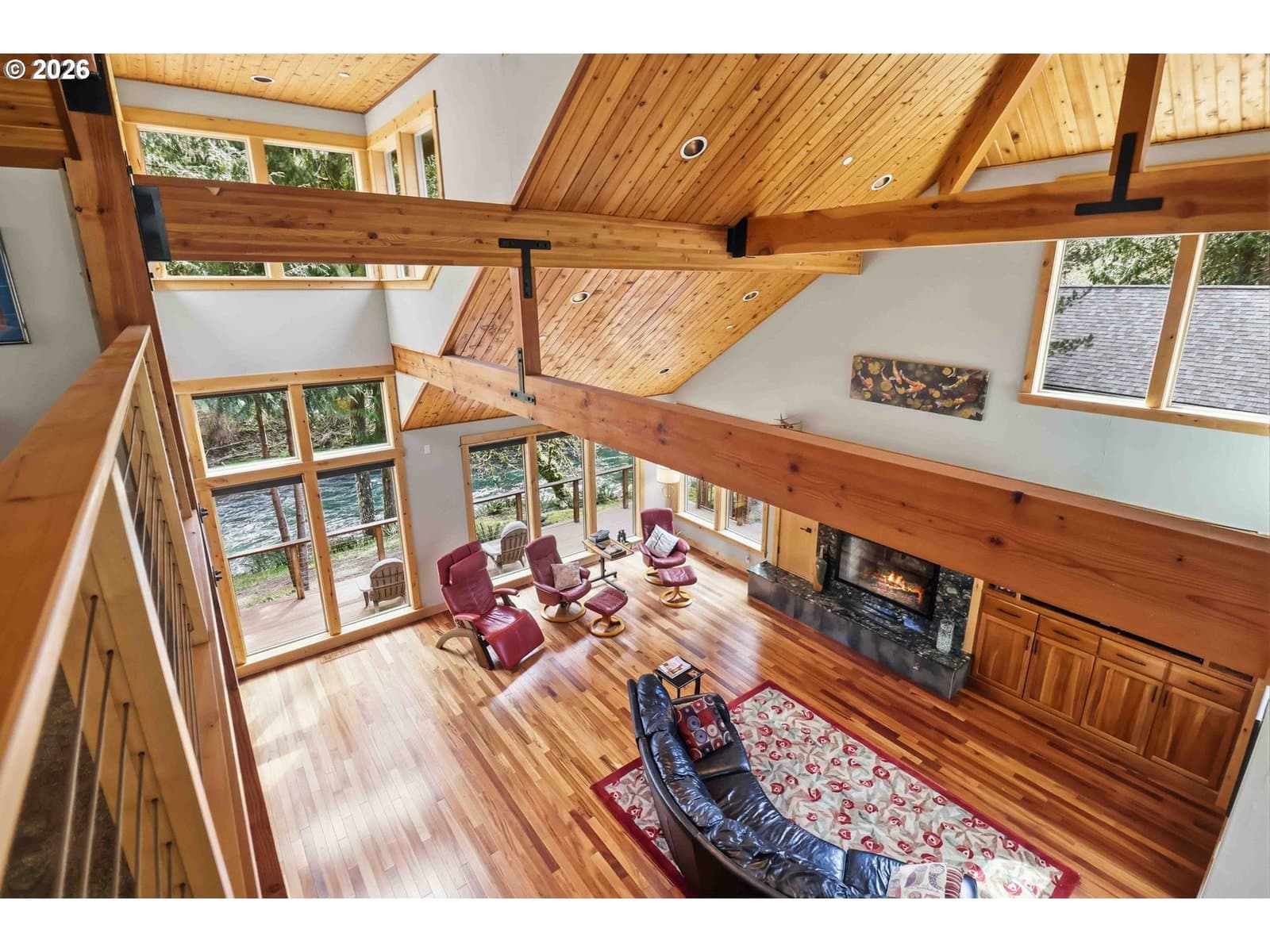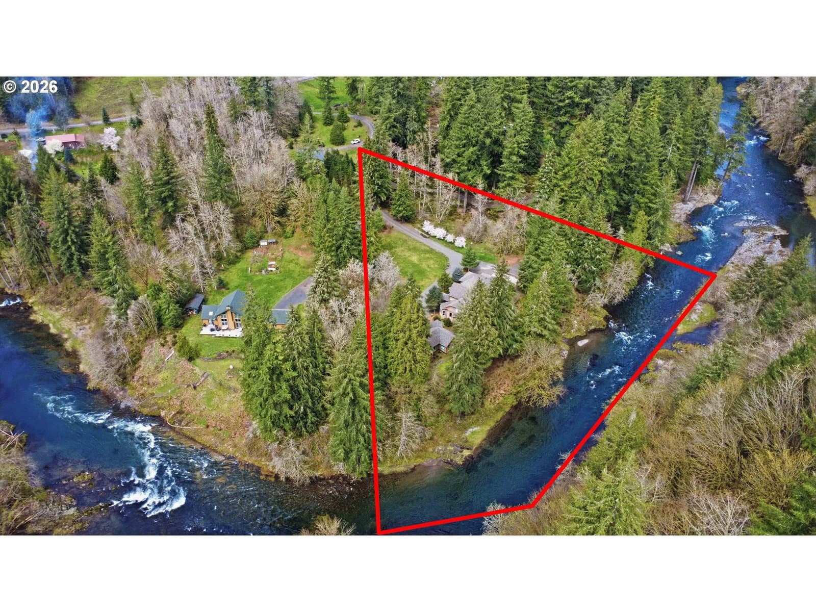 Experience exceptional riverfront living on the Kalama River. Situated on 2.76 private acres with approximately 620 feet of frontage, this 4,051 sq ft custom home offers 3 bedrooms and 4 bathrooms in a peaceful, natural setting just minutes from the well-known “Holy Waters” stretch. Inside, the home features Brazilian tigerwood floors, vaulted cedar-lined ceilings, exposed beams, and custom ironwork that bring out a strong Northwest feel with real craftsmanship throughout. Expansive windows take in river, territorial, and mountain views while bringing in natural light. The layout offers comfortable living spaces and multiple primary suites, making it easy to live in or host. Step outside to Trex decking overlooking the river and a natural waterfall, creating a private setting for relaxing or entertaining. The 1,502 sq ft detached pool house includes a heated indoor lap pool, 650-gallon jacuzzi, and 3/4 bath, set up for year-round use. Additional features include a 3-car garage, extra parking, RV space, high-speed fiber internet, and landscaped grounds with garden space and fruit trees. A unique opportunity to own a riverfront property with acreage and resort-style features in one of Southwest Washington’s most desirable areas.