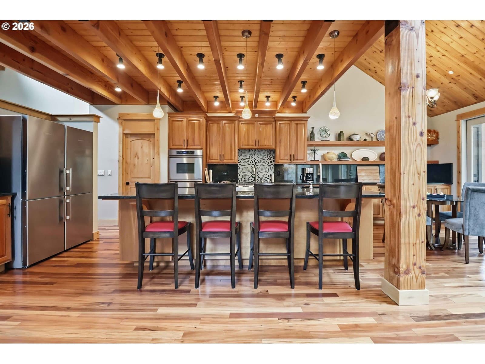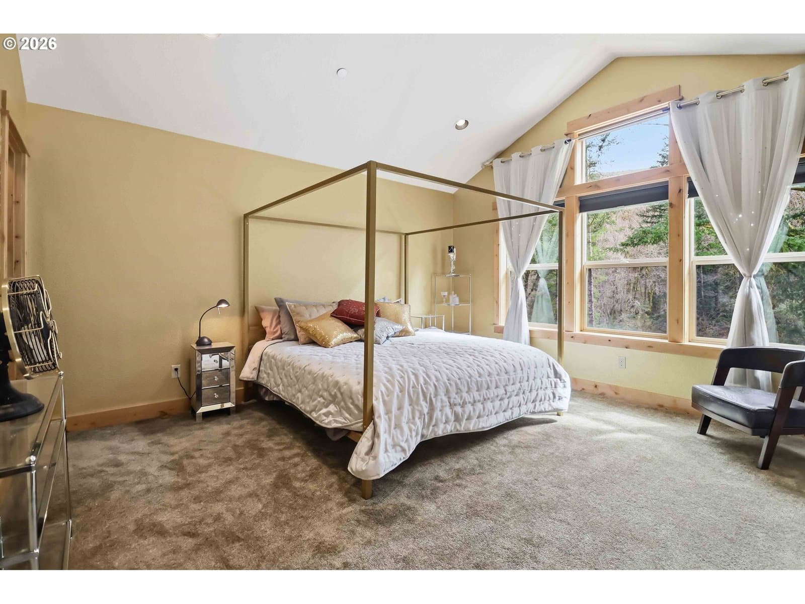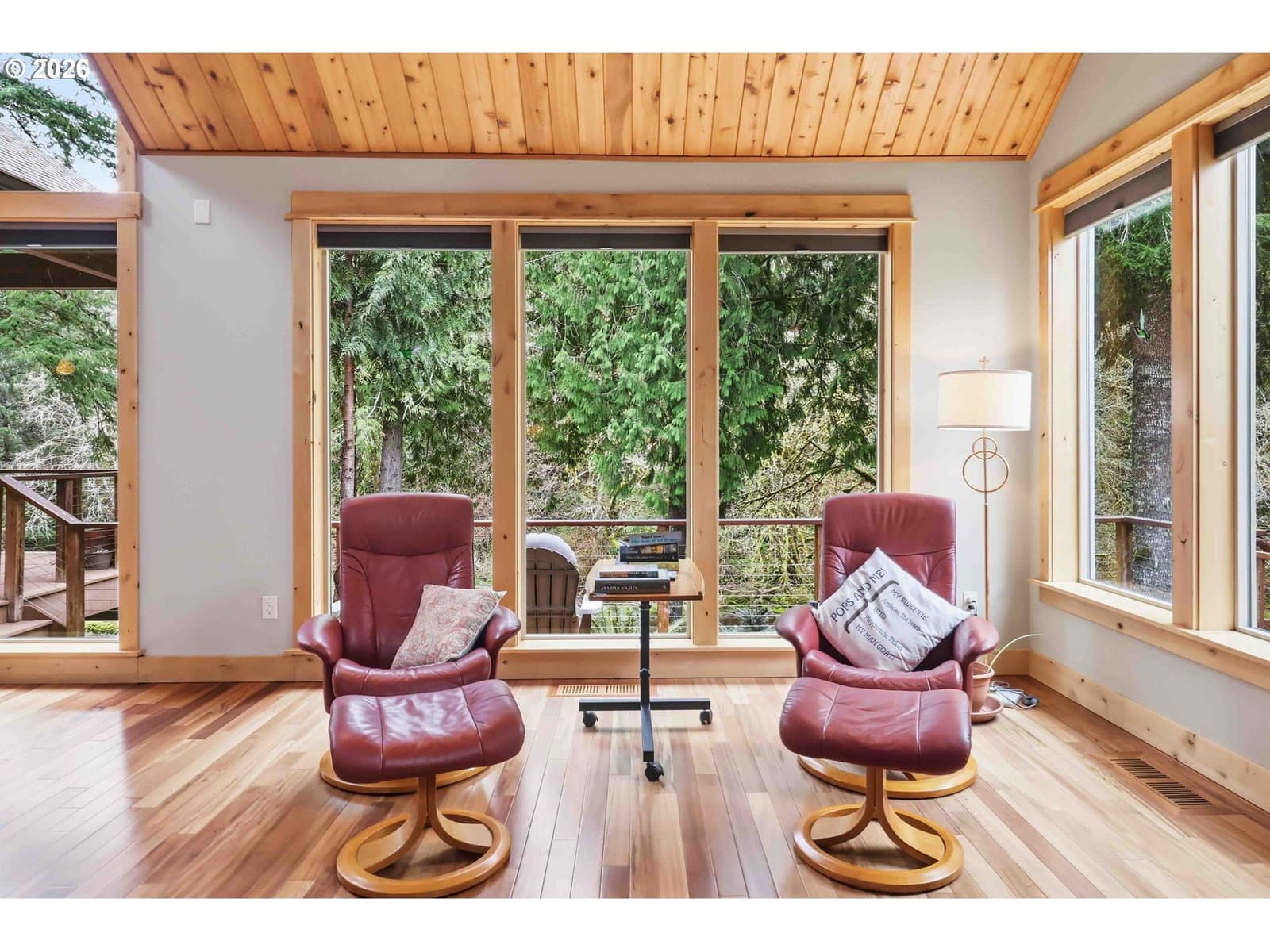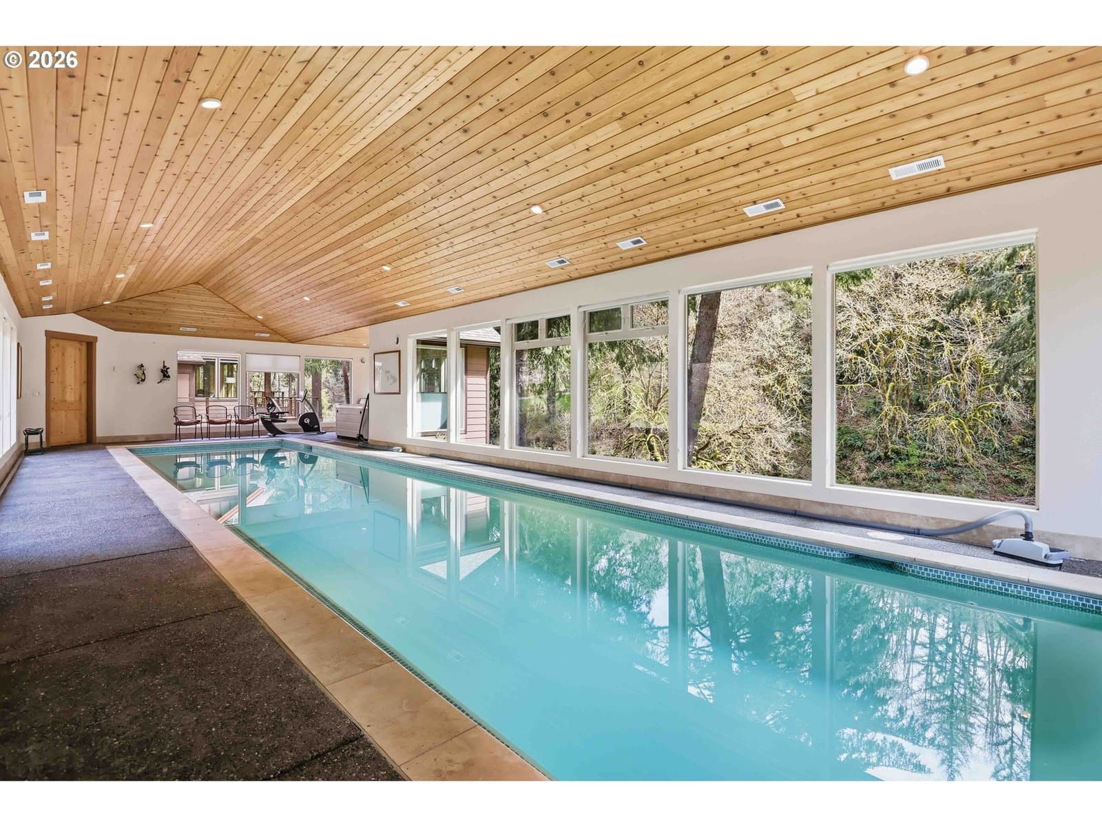 Experience exceptional riverfront living on the Kalama River. Situated on 2.76 private acres with approximately 620 feet of frontage, this 4,051 sq ft custom home offers 3 bedrooms and 4 bathrooms in a peaceful, natural setting just minutes from the well-known “Holy Waters” stretch. Inside, the home features Brazilian tigerwood floors, vaulted cedar-lined ceilings, exposed beams, and custom ironwork that bring out a strong Northwest feel with real craftsmanship throughout. Expansive windows take in river, territorial, and mountain views while bringing in natural light. The layout offers comfortable living spaces and multiple primary suites, making it easy to live in or host. Step outside to Trex decking overlooking the river and a natural waterfall, creating a private setting for relaxing or entertaining. The 1,502 sq ft detached pool house includes a heated indoor lap pool, 650-gallon jacuzzi, and 3/4 bath, set up for year-round use. Additional features include a 3-car garage, extra parking, RV space, high-speed fiber internet, and landscaped grounds with garden space and fruit trees. A unique opportunity to own a riverfront property with acreage and resort-style features in one of Southwest Washington’s most desirable areas.