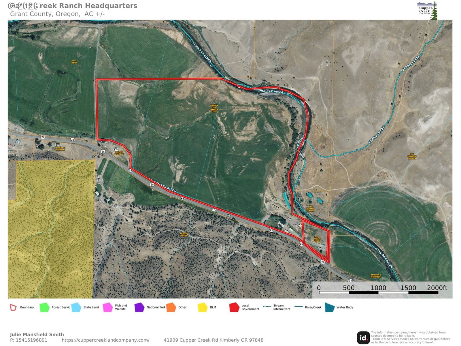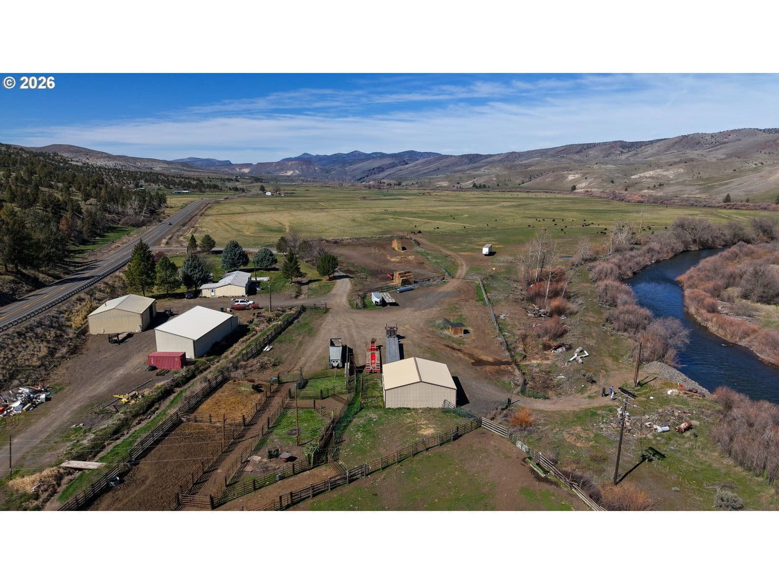 First time on market in 50 years! These ranch headquarters include 143 acres of 1868 priority water rights on 1/2 mile of South Fork John Day River. This is a prime agricultural investment boasting river frontage and high yielding farm ground all under flood irrigation. Seller is first user with two others on shared ditch water and has grazed up to 70 pair in the past after taking 160+/- ton average on first cutting. Productive soils with great growing season all planted in grass for hay or grazing. Two manufactured homes are on separate tax lots, both with garden areas and easy access to the river for fishing and swimming. The ranch is perimeter fenced with meadow pasture and is complete with cattle working facilities, portable chute, squeeze chute and calf table. Corral system has power and water with panels and pipe fencing underway. Barn has 3 stalls and hay storage, shop with concrete floor and shelving, water and wood stove, 3 bay machine shed houses three 20 HP pumps with one as backup, and has attached tack room/office area. 8x20 container convereted into meat cooler and out door fire pit is next to 3/1 Parkway MH. There are three wells, one for each home and the last for the corral system. Concrete pool pad is next to the 4/2 2004 Goldenwest MH w/12x20 addition. Seller may include rolling stock with chopper, tractor, swather, airway, gopher machine and pasture harrow upon acceptable offer. Beautiful views of Aldrich Mountain Range and Picture Gorge. Located west of Dayville on Hwy 26. Shown by appointment only to prequalified buyers. Recent property line adjustment totals 143 on the north side of river in TL 3602 to Highway 26 and includes TL 3900. See map in photo gallery. Seller is first user on ditch with two neighbors who cost share pump bills.3 20HP pumps included. 1886 Priority water rights all flood irrigated. 1981 Fuqua Parkway MH. 8x20 metal meat cooler included. 22x24 carport with 20x24 concrete parking pad. 8x26 and 10x10 front and back covered deck. Wood shed/lean to. River frontage with corrals and water rights.