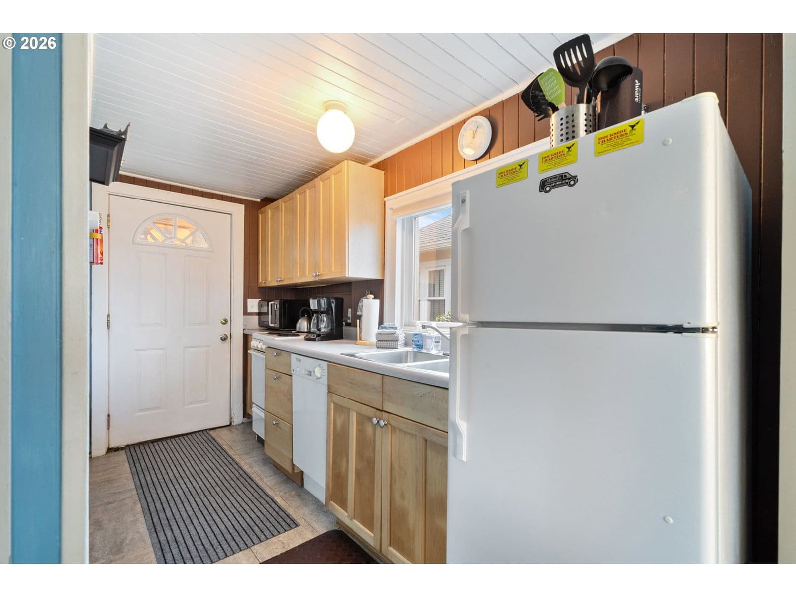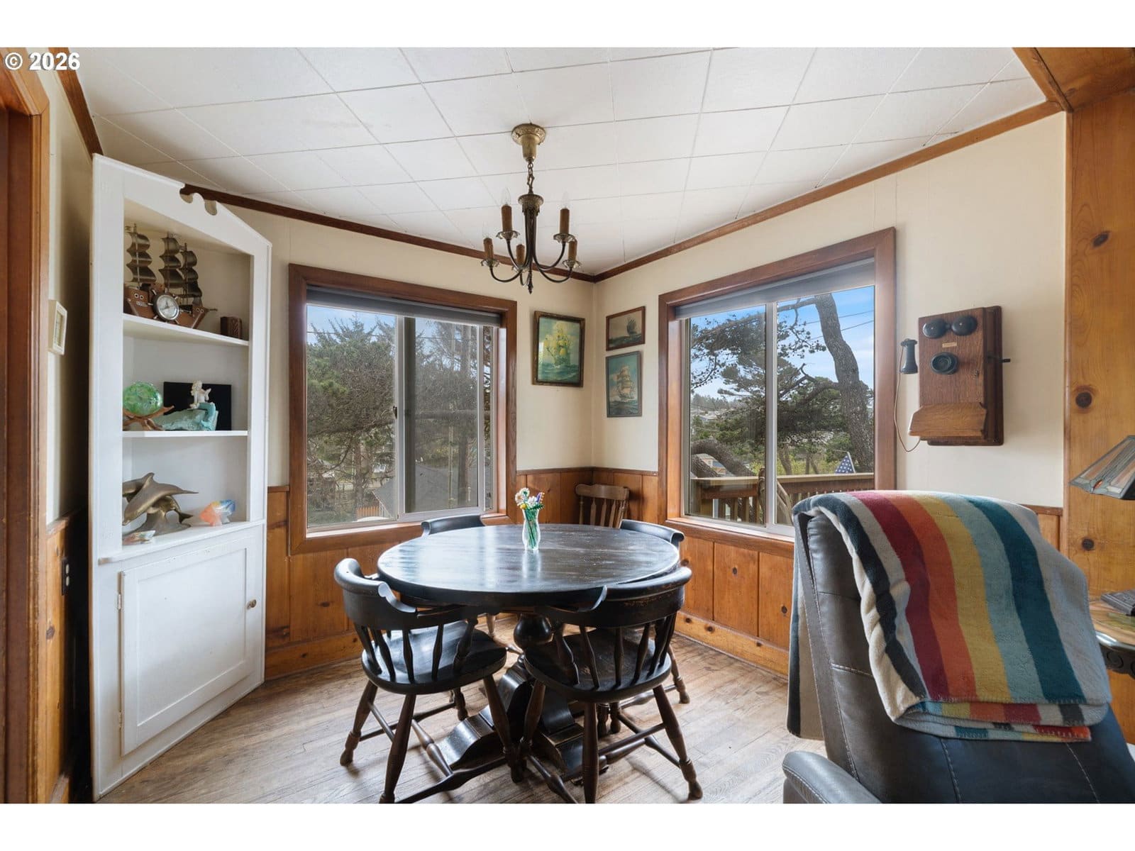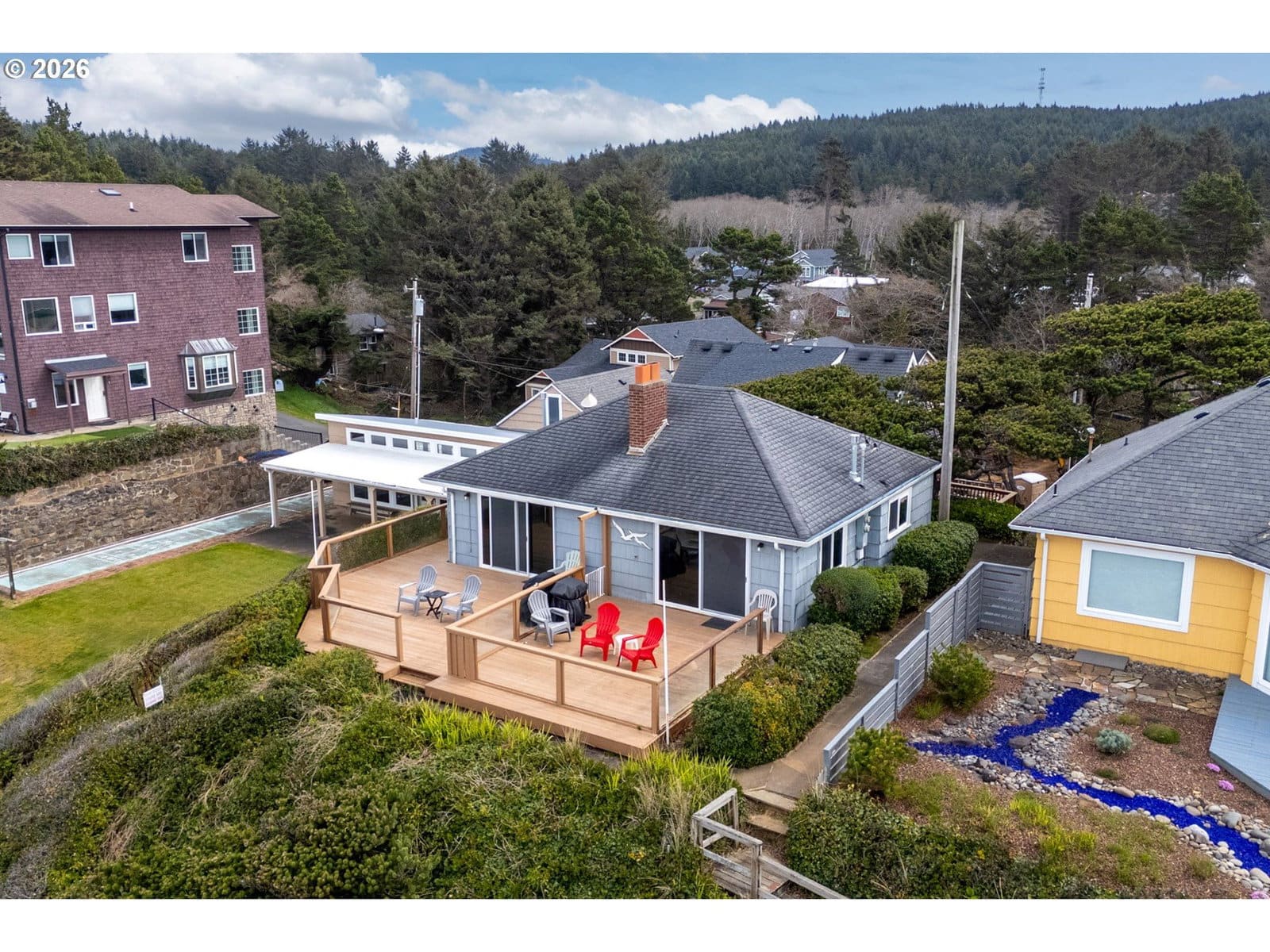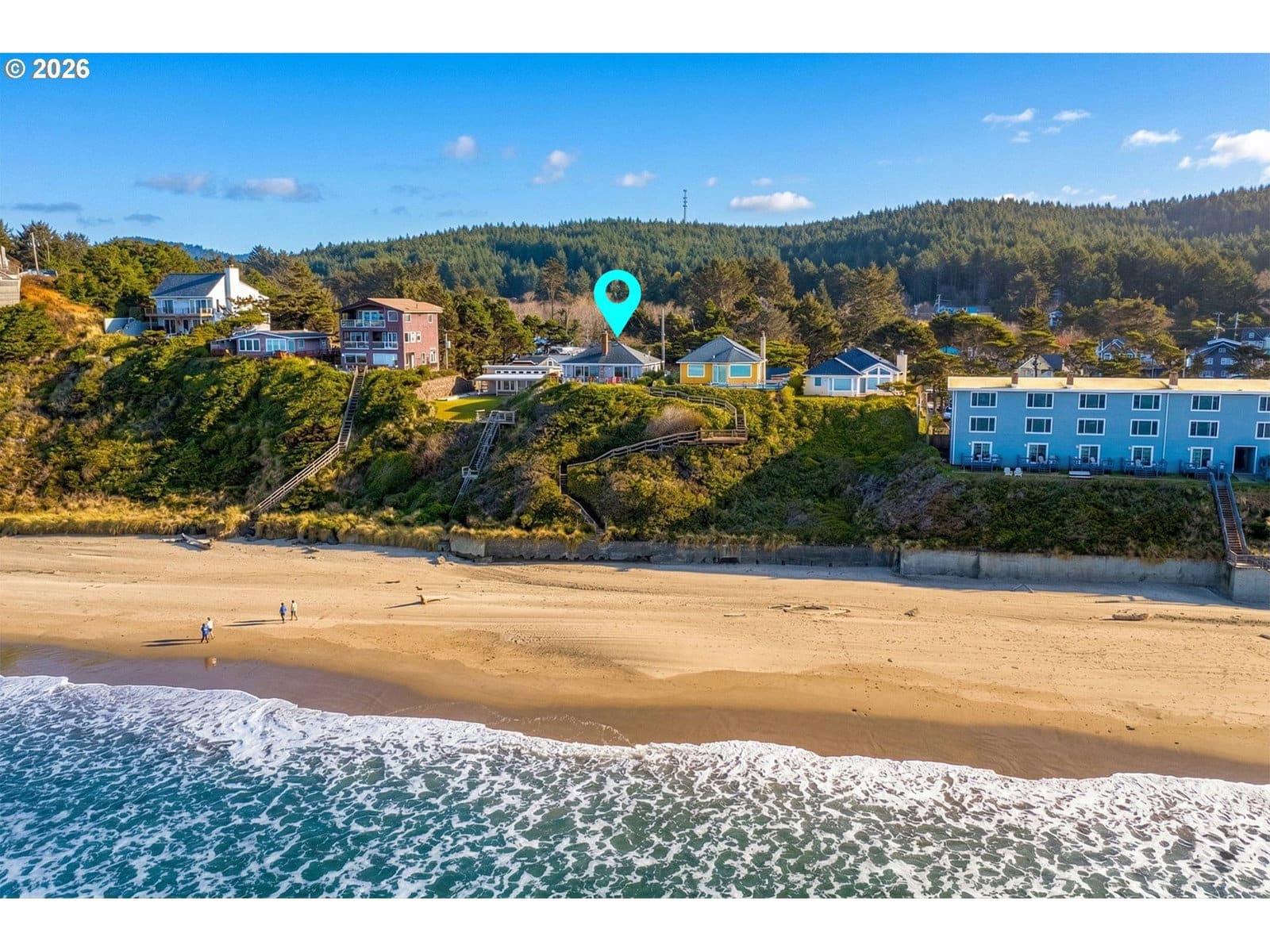 Rare oceanfront compound in sought-after Nelscott Beach, priced below market to reflect a parking conversion opportunity. The property includes a two-unit duplex — each with 1BR/1BA and a wood-burning fireplace and kitchenette — plus a 4BR/2.5BA main home, all with direct beach access via private stairs to miles of sand and surf. A large oceanfront deck, protective concrete seawall, and classic Oregon Coast details throughout — knotty pine, wainscoting, and wood-burning fireplaces. Mixed Use zoning allows vacation rentals. The lower level is well-suited for conversion to on-site parking, which would significantly enhance rental income potential and overall value. A compelling buy for the investor or buyer willing to do the work.