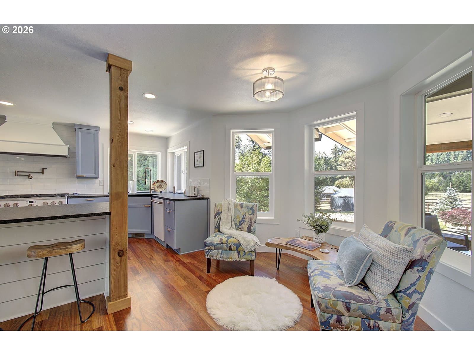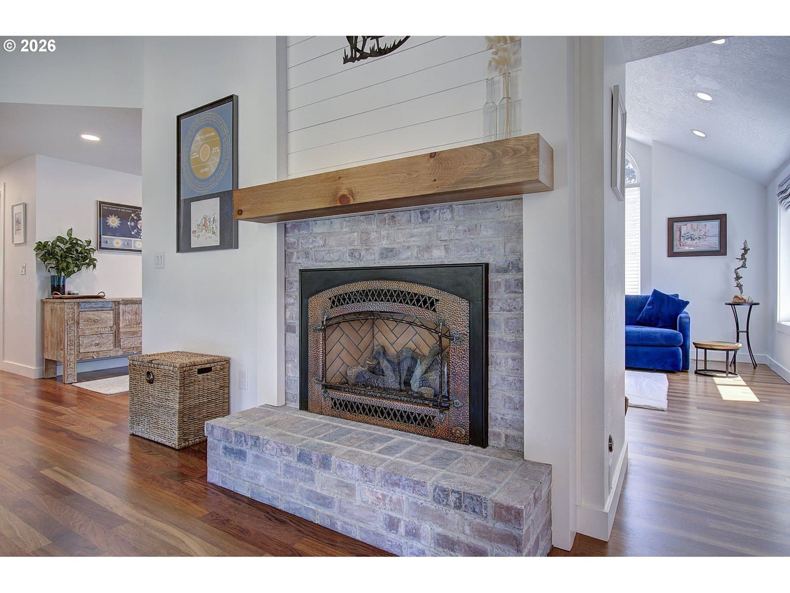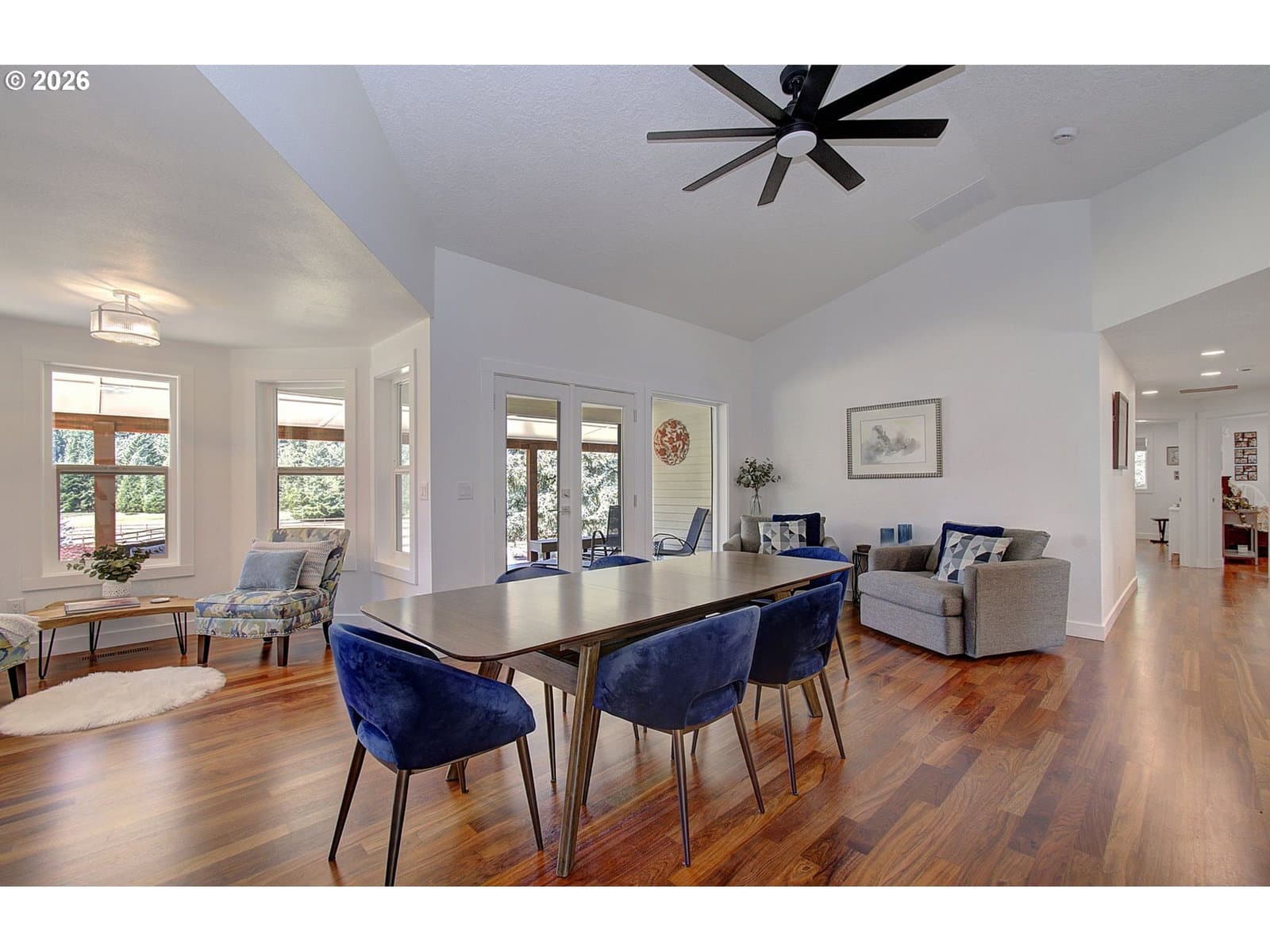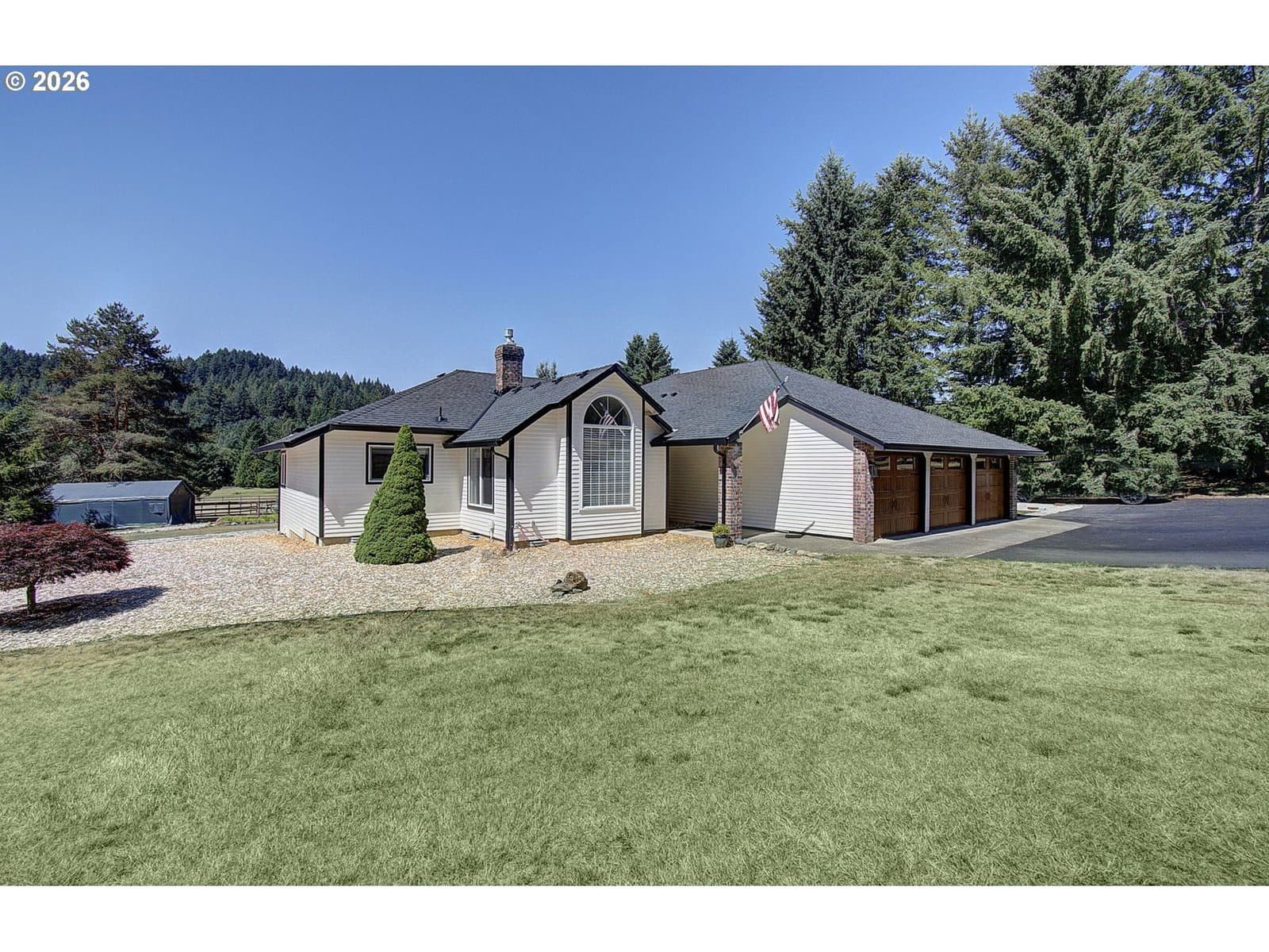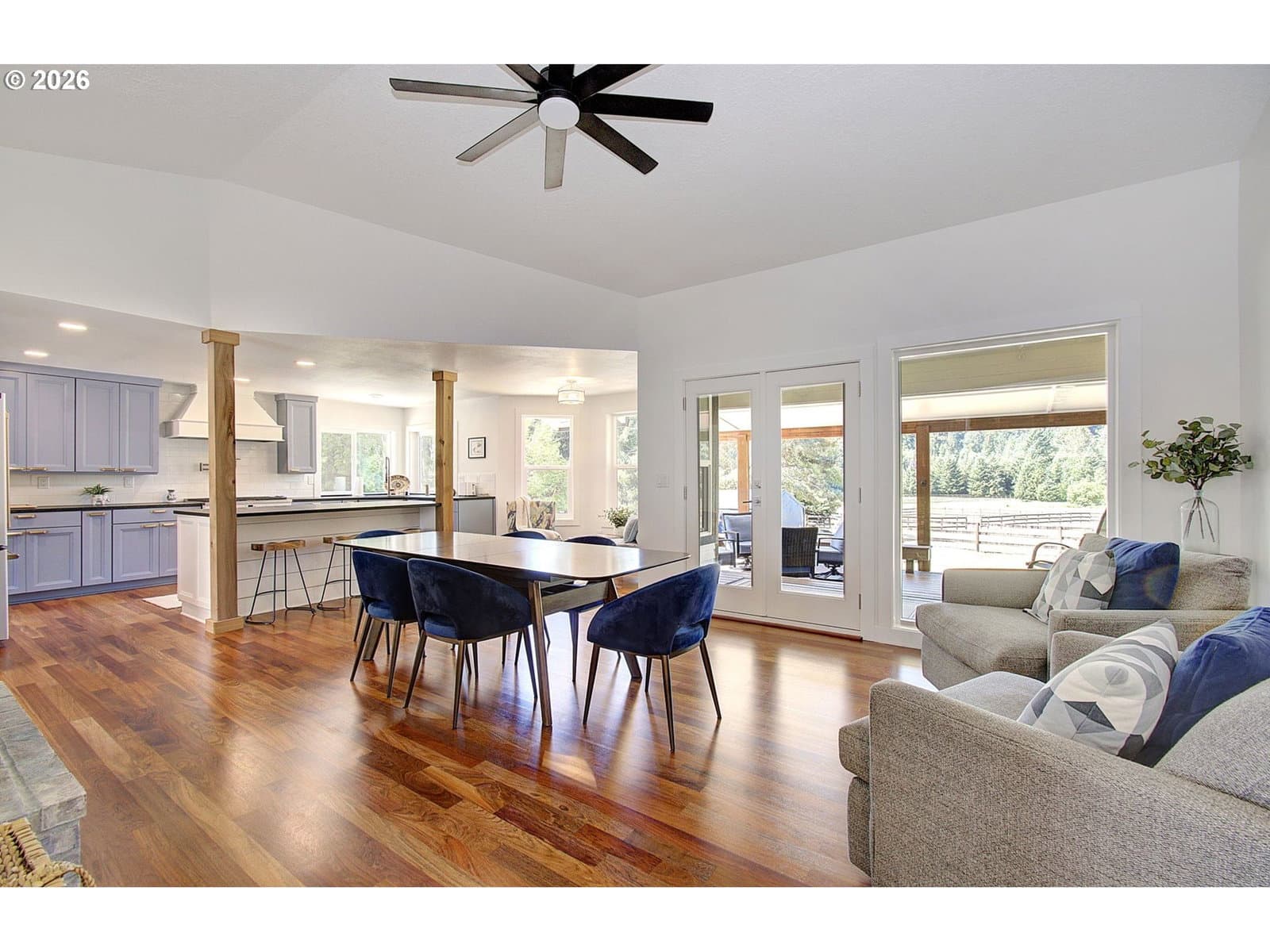This stunning residence has been completely remodeled. The living room boasts high ceilings and an abundance of natural light. The family room offers a cozy atmosphere with a propane fireplace, perfect for chilly evenings. You'll cherish the views from the family room and kitchen nook daily. The gorgeous, fully remodeled kitchen features: GE Cafe, Smart Appliances, and Kohler fixtures. An impressive 70 sq. ft. walk-in pantry. Throughout the home, Brazilian Teak hardwood floors add a warm touch. The primary bedroom is spacious, with a bay window that presents a delightful view to wake up to. The master bathroom will surely be a favorite, featuring a luxurious double-sized, double-head walk-in shower. Set on three usable acres. The property includes a fenced back pasture for animals. Beyond the property line, enjoy access to a common area featuring a covered bridge, horse trails, and two fishing ponds. Relax on the back patio and soak it all in.