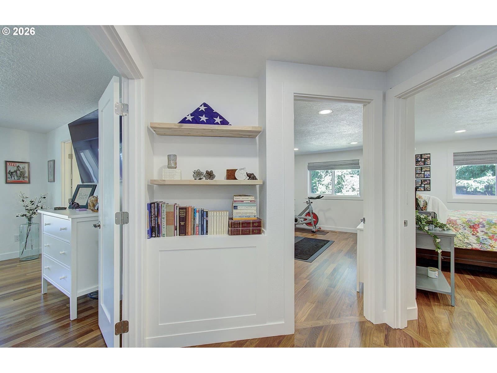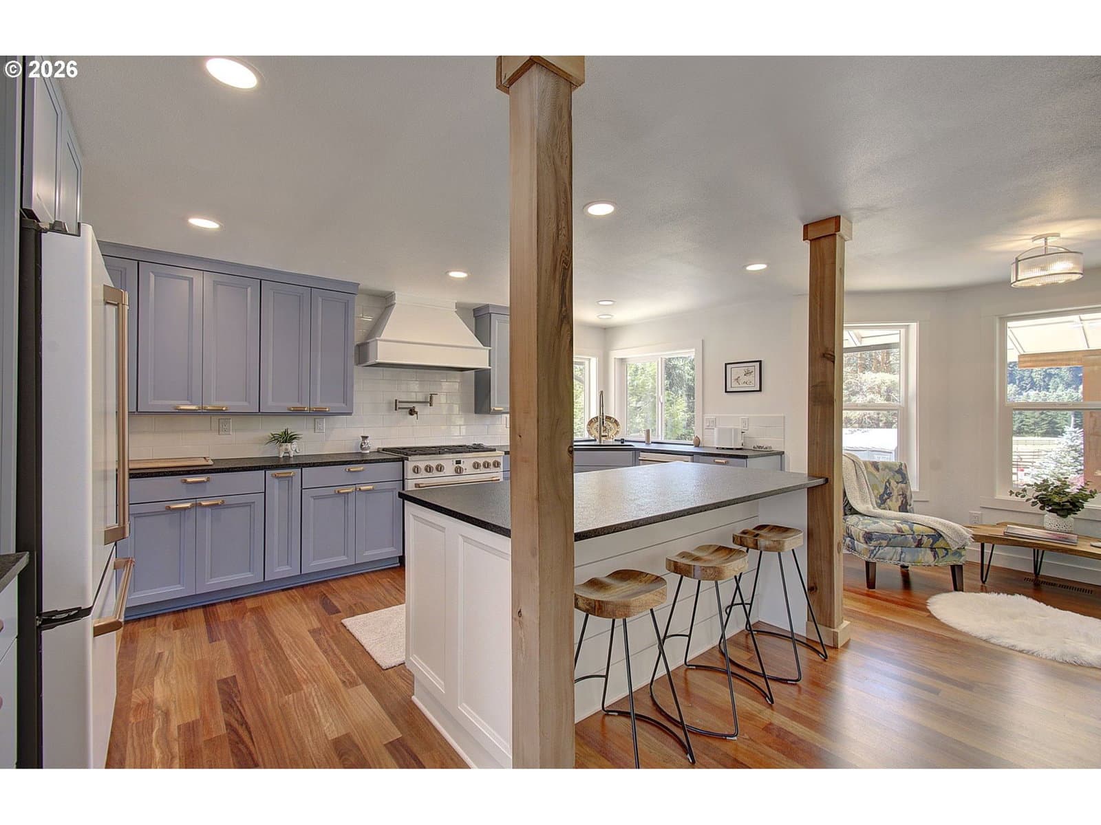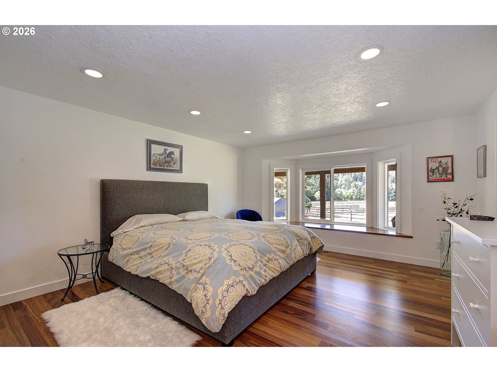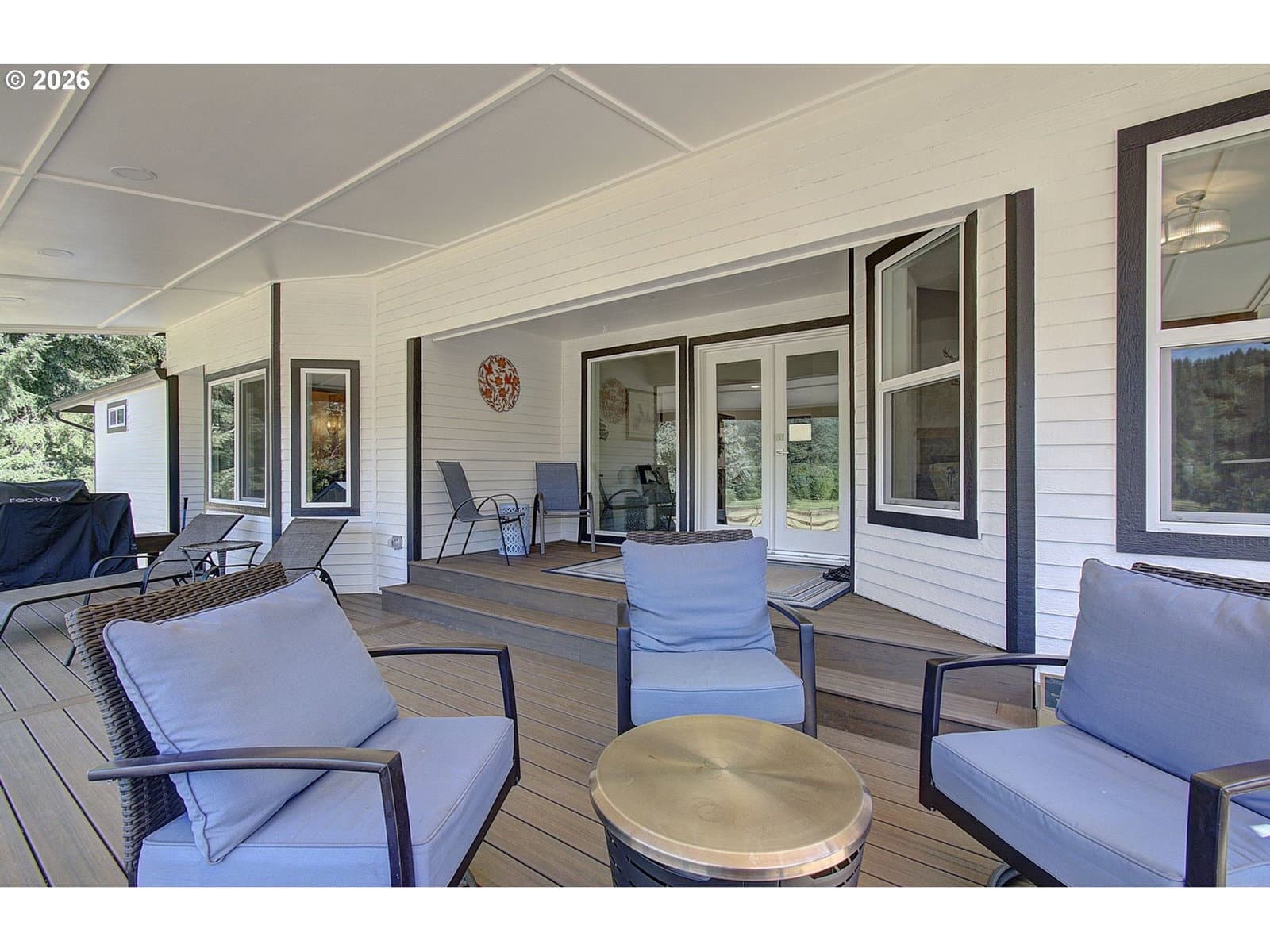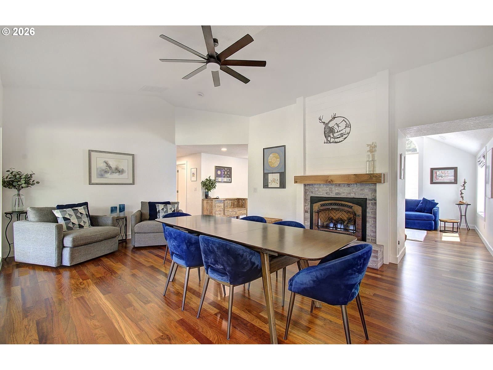 This stunning residence has been completely remodeled. The living room boasts high ceilings and an abundance of natural light. The family room offers a cozy atmosphere with a propane fireplace, perfect for chilly evenings. You'll cherish the views from the family room and kitchen nook daily. The gorgeous, fully remodeled kitchen features: GE Cafe, Smart Appliances, and Kohler fixtures. An impressive 70 sq. ft. walk-in pantry. Throughout the home, Brazilian Teak hardwood floors add a warm touch. The primary bedroom is spacious, with a bay window that presents a delightful view to wake up to. The master bathroom will surely be a favorite, featuring a luxurious double-sized, double-head walk-in shower. Set on three usable acres. The property includes a fenced back pasture for animals. Beyond the property line, enjoy access to a common area featuring a covered bridge, horse trails, and two fishing ponds. Relax on the back patio and soak it all in.