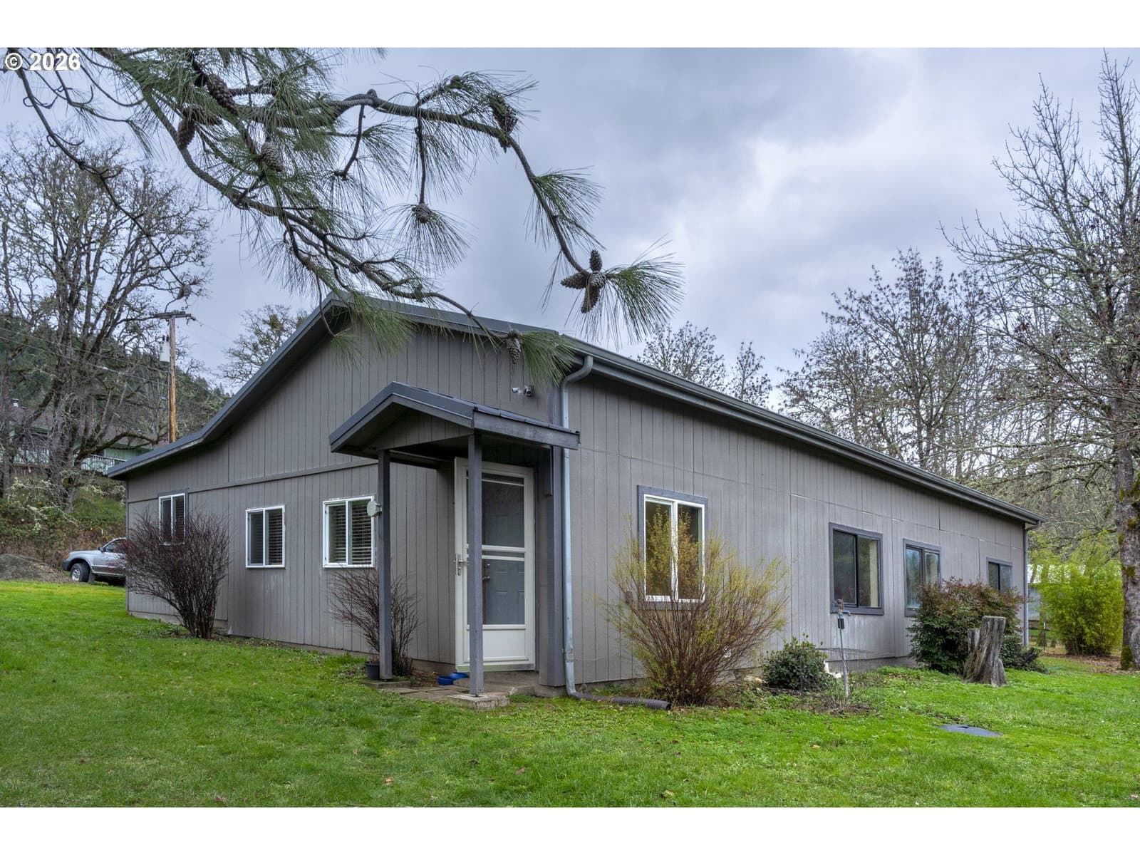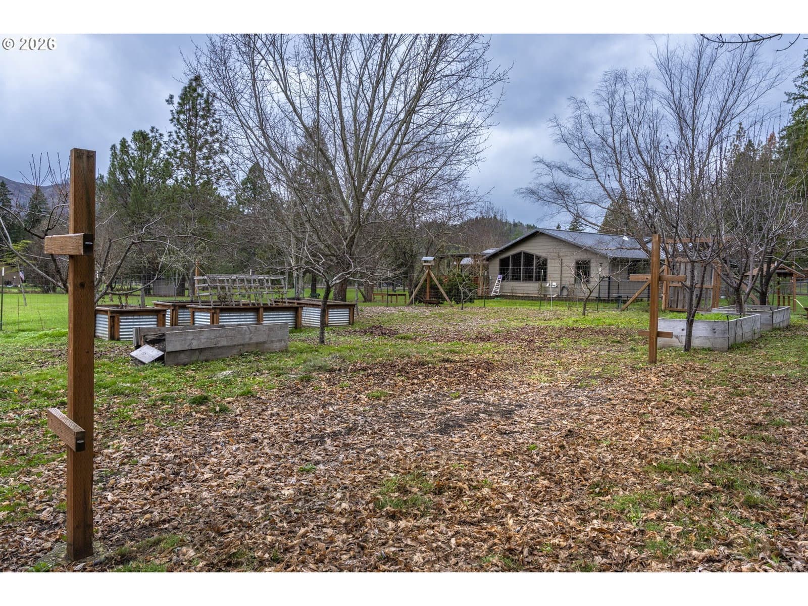 Located at the edge of the Umpqua National Forest this warm and welcoming, one level home, is ready to comfort you after a day of adventure. With over 2700 sqft this home offers a very flexible floor plan. At the heart of this home is the great room with a cozy wood stove, vaulted ceilings, dining area and kitchen with center island. At one end of the home is the primary suite with large walk-in closet and dressing room. At the other end is the guest wing with additional bedrooms, exterior access and even more storage. The living room takes full advantage of the beautiful setting with large windows and access to the covered deck. The property is level and fenced with a large detached garage that is 28x40 and an additional building that previous owners used as guest quarters that has multiple rooms, one bathroom and is currently used for storage and shop space. The property is fenced with a dedicated garden space, many fruit trees and chicken coop. Only a few minutes from Glide and less than a half mile to access to the North Umpqua River.