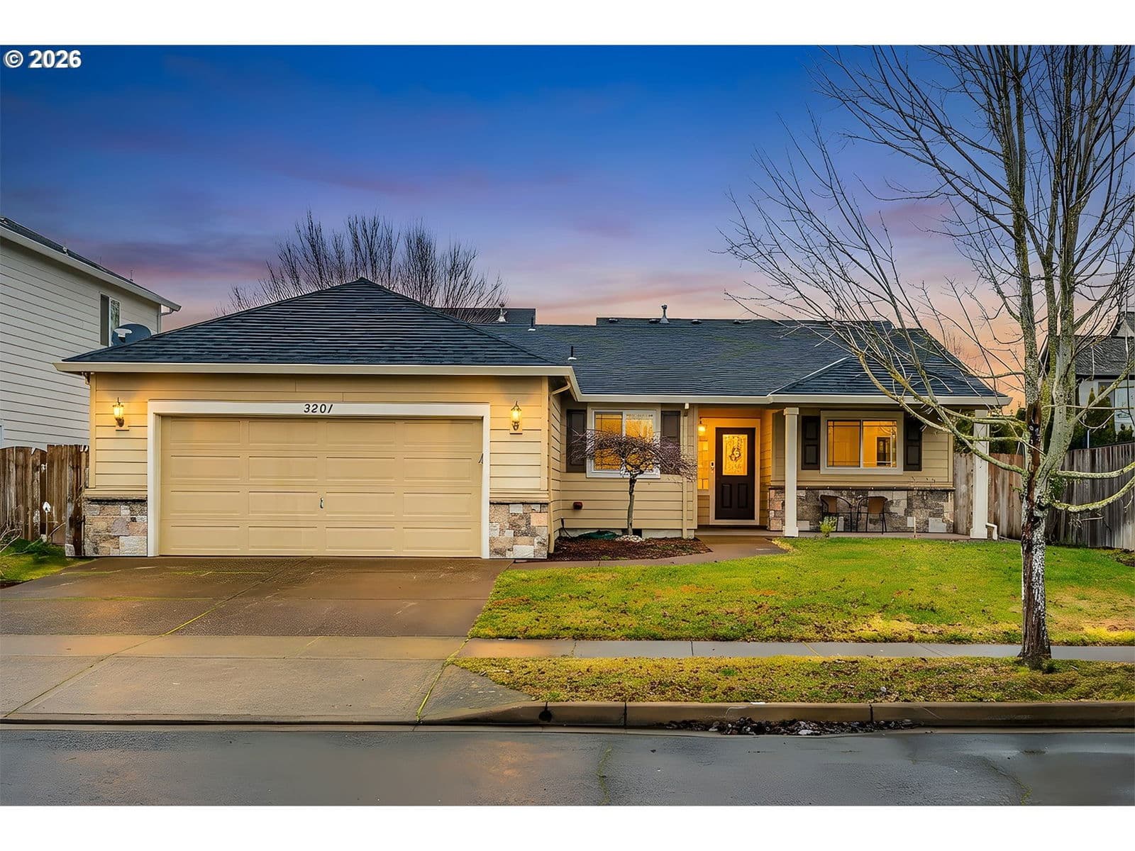 Welcome to this charming single-level home nestled in the heart of Yamhill, where small-town warmth meets the beauty of Oregon wine country. Full of character and thoughtful design, this home offers a bright, inviting layout with hardwood floors flowing through the living and dining areas, creating a warm and timeless feel.The spacious living room is a true centerpiece, featuring soaring vaulted ceilings, abundant natural light, and a cozy fireplace that makes the space feel both open and comfortable. The dining area is perfectly positioned with sliding doors that lead to the backyard, creating an effortless indoor-outdoor connection—ideal for entertaining or enjoying quiet evenings at home.The primary suite continues the airy feel with its own vaulted ceilings and ceiling fan, along with a private ensuite bathroom complete with double sinks and a walk-in shower.Step outside to a generously sized, fully fenced yard shaded by mature, beautiful trees—offering privacy, space to play or garden, and a peaceful setting to unwind. A covered patio extends your living space outdoors, making it easy to enjoy the outdoors year-round.Located in a quiet, welcoming community known for its rolling farmland and proximity to renowned vineyards, this home offers the perfect balance of tranquility and convenience—all just a short drive to the charm of downtown Yamhill and surrounding wine country destinations.A rare opportunity to own a home that blends comfort, character, and the relaxed lifestyle of Oregon’s countryside.