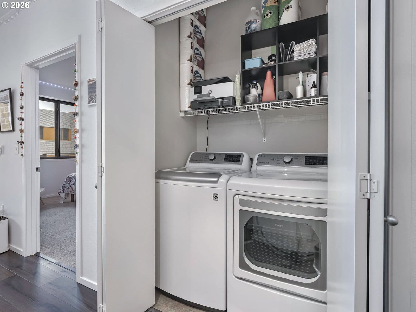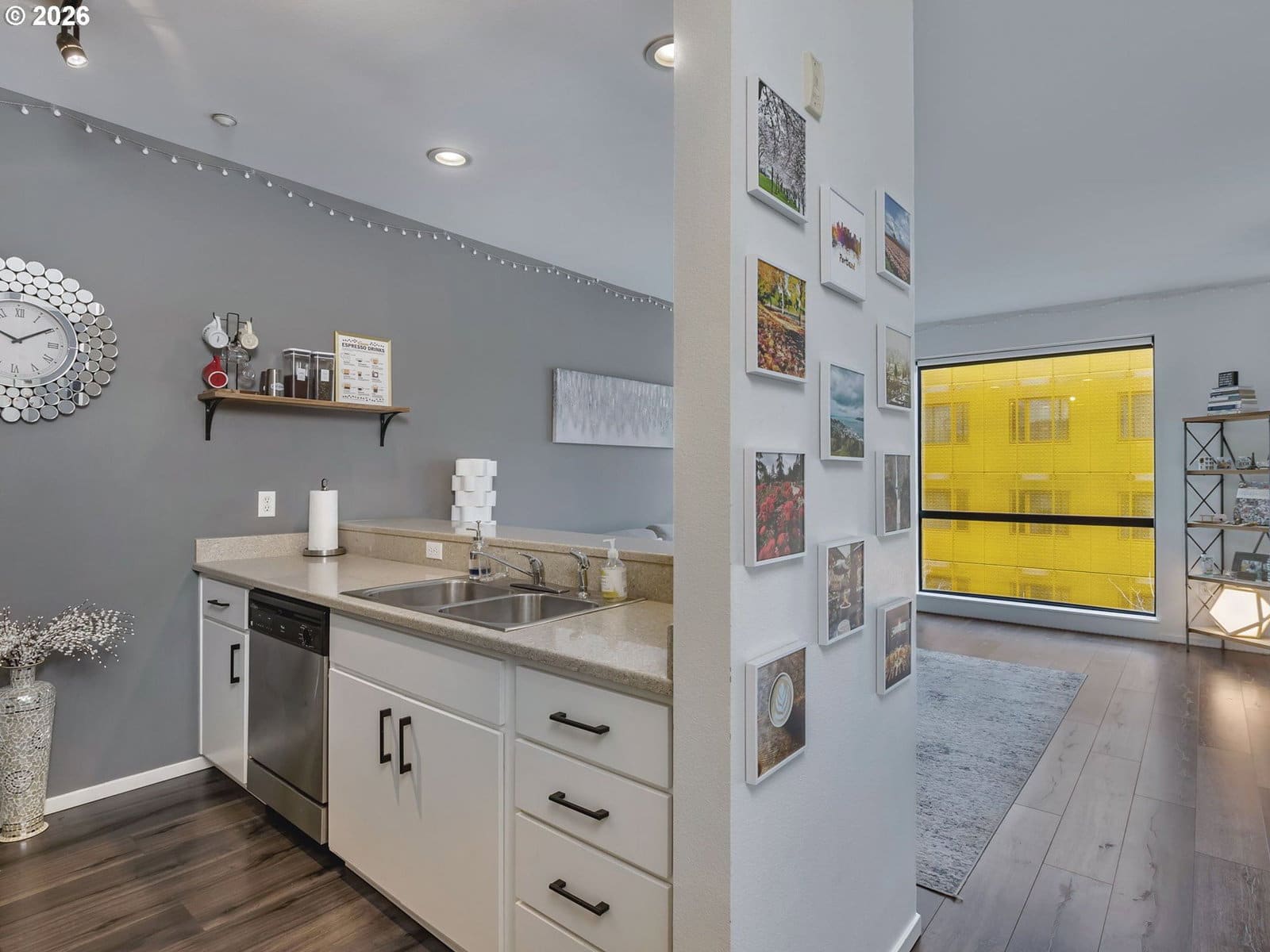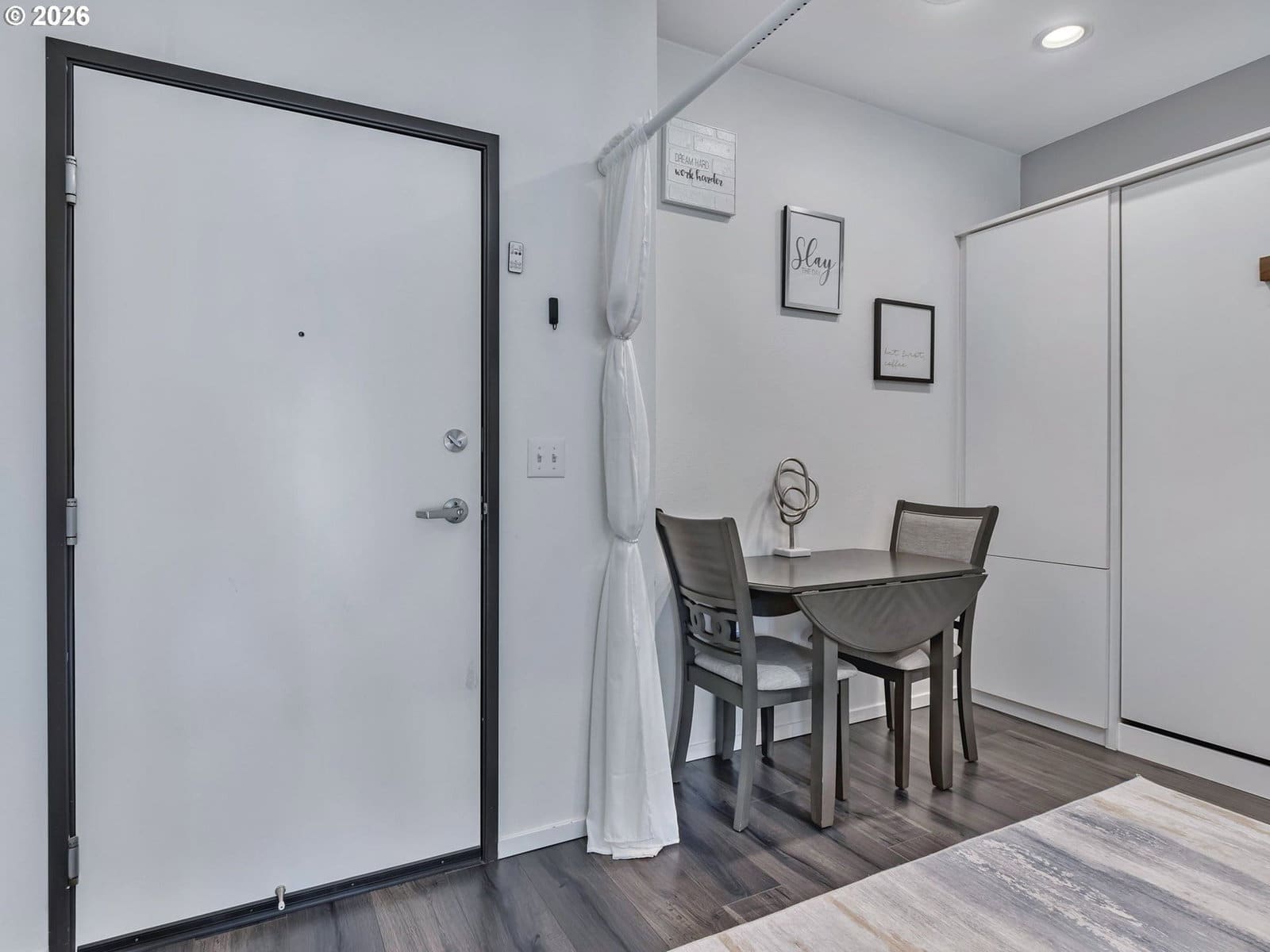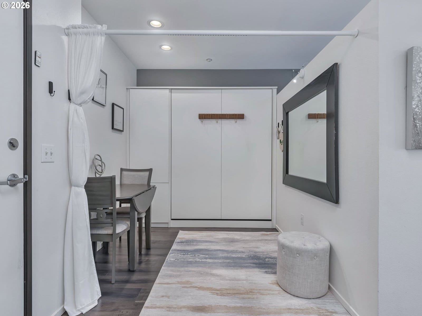 Introducing Unit 518 at the sought-after Lexis Condominiums — a thoughtfully designed one-bedroom + den residence that lives larger than its 757 square feet and offers flexibility today’s urban buyers crave.Unlike the typical one-bedroom layout, this home features a true, enclosed bedroom plus a versatile den complete with a built-in Murphy bed — creating an effortless guest space, second sleeping area, or elevated work-from-home solution without sacrificing everyday living space. Whether you need a private office, media room, or occasional second bedroom, this floor plan adapts beautifully to your lifestyle.Natural light pours through expansive east facing windows, highlighting the open-concept living area an airy, modern feel. The kitchen flows seamlessly into the living and dining spaces, making it ideal for entertaining or simply enjoying a quiet evening in. Step outside to your private balcony for fresh air and a peaceful perch above the vibrant Pearl District energy.Practical luxuries include in-unit laundry, generous storage, deeded parking in the secure garage, and a separate storage unit — a rare and valuable combination for city living.Located just moments from Tanner Springs Park, neighborhood cafés, award-winning dining, boutiques, and the Portland Streetcar, Unit 518 offers walkable convenience with a refined residential feel. Residents of Lexis also enjoy access to a fitness center, meeting room, bike storage, and a beautifully maintained courtyard.If you’ve been waiting for a Pearl District condo that offers flexibility, functionality, and location in one smart package — this is the one to see. Schedule your private tour and experience how effortlessly Unit 518 fits your lifestyle.